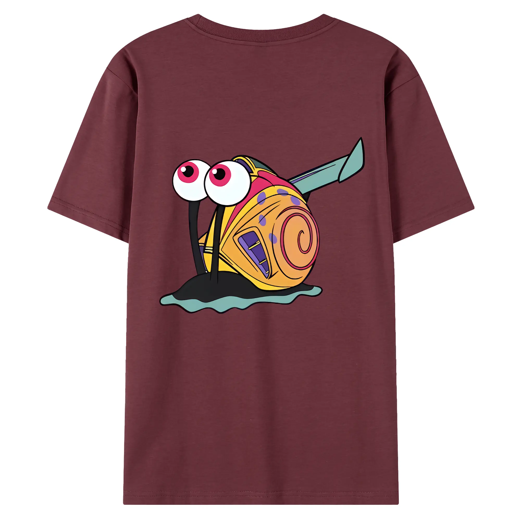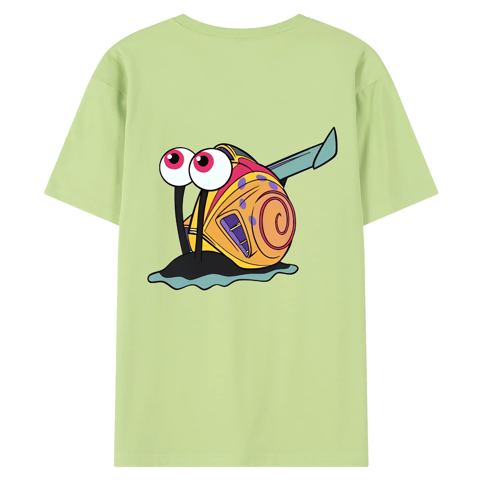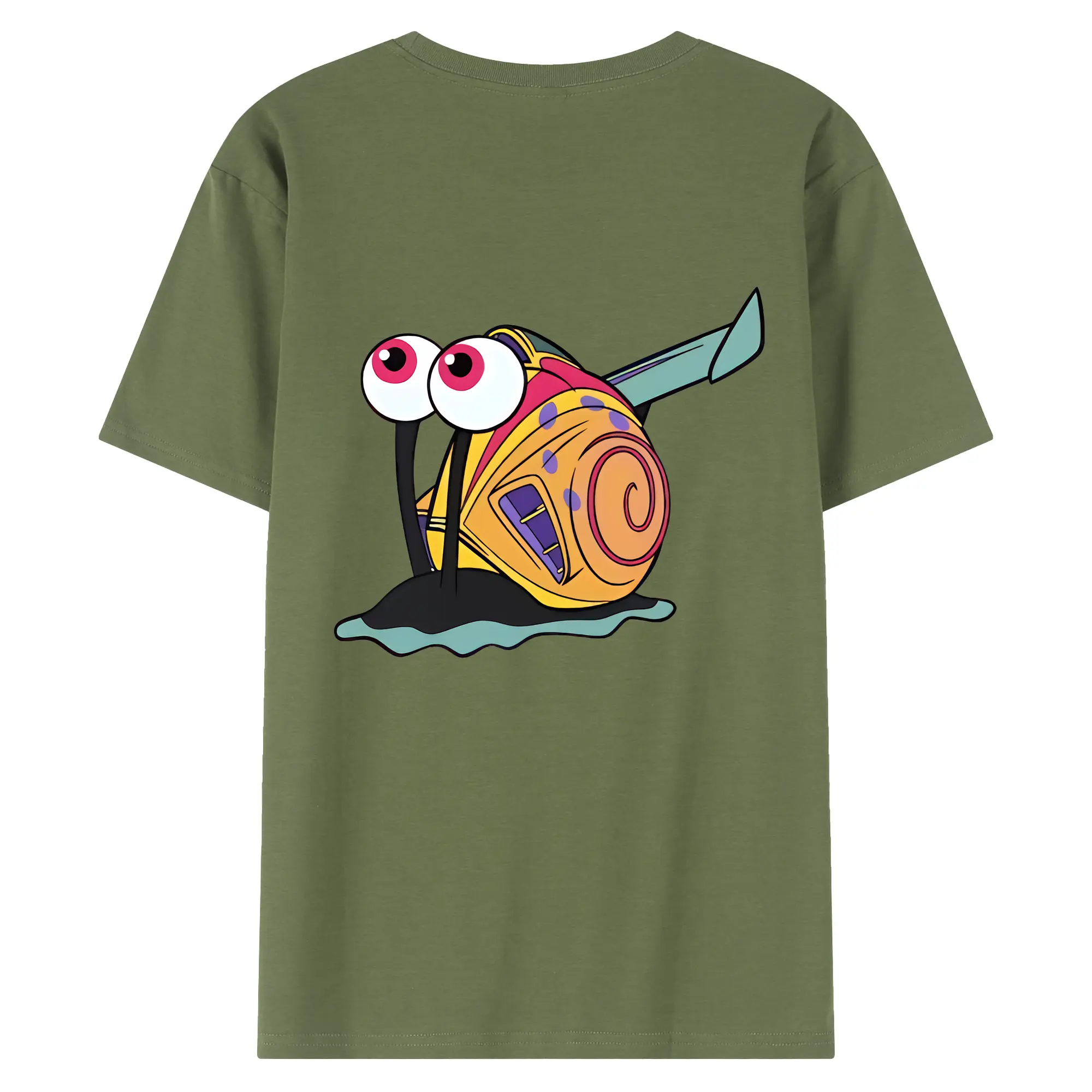 スポンジボブ グッズ カタツムリさん - 綿100% 半袖Tシャツ ・ フロントプリント ・ 快適 通気性 ・ 日常使い 散歩 スポーツ用