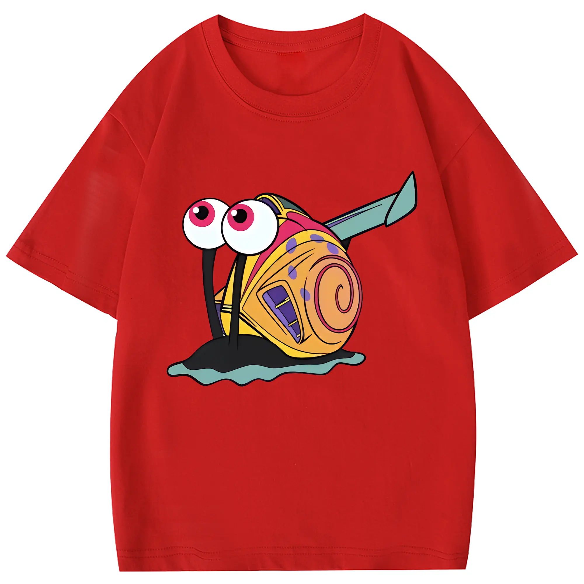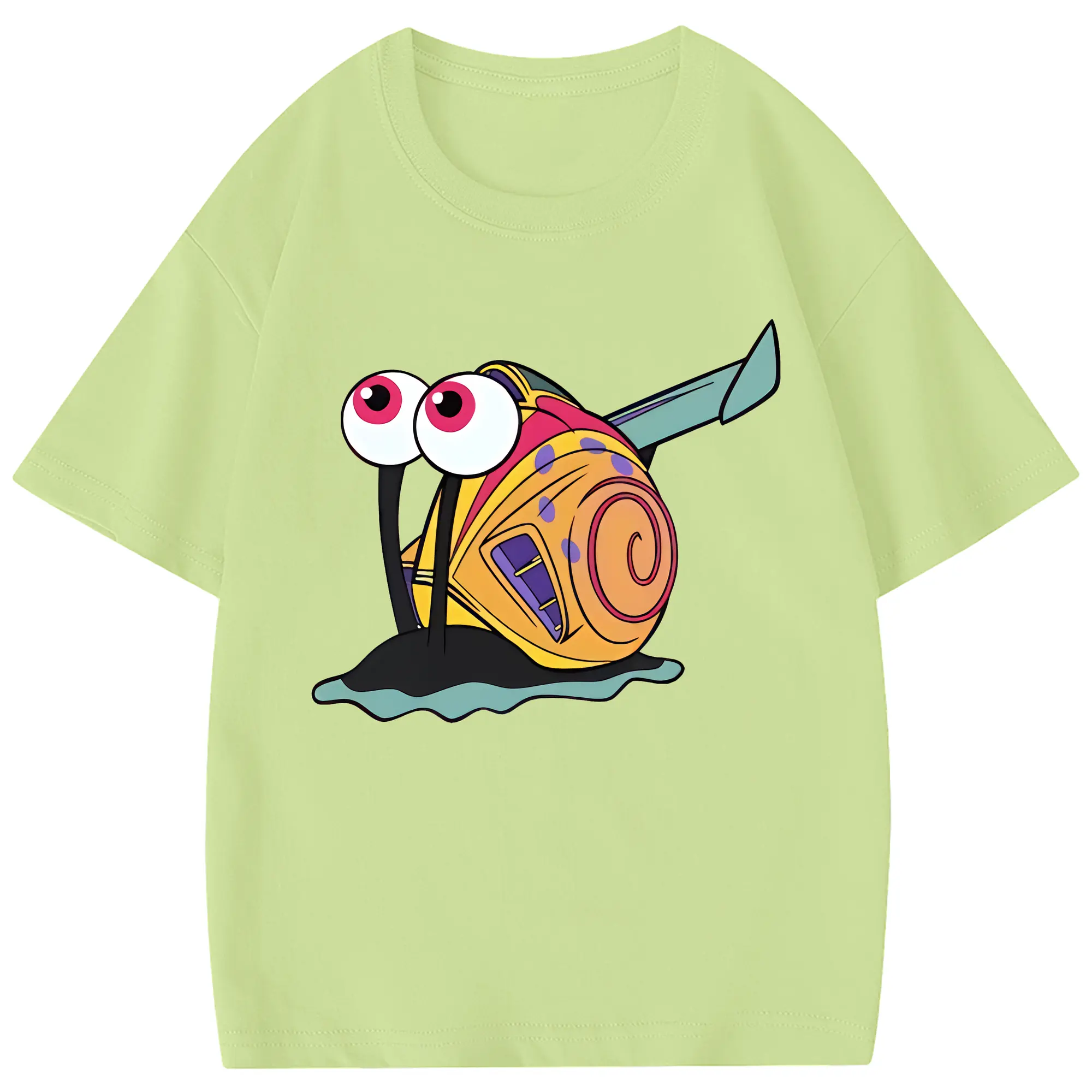 スポンジボブ グッズ カタツムリさん - 綿100% 半袖Tシャツ ・ フロントプリント ・ 快適 通気性 ・ 日常使い 散歩 スポーツ用