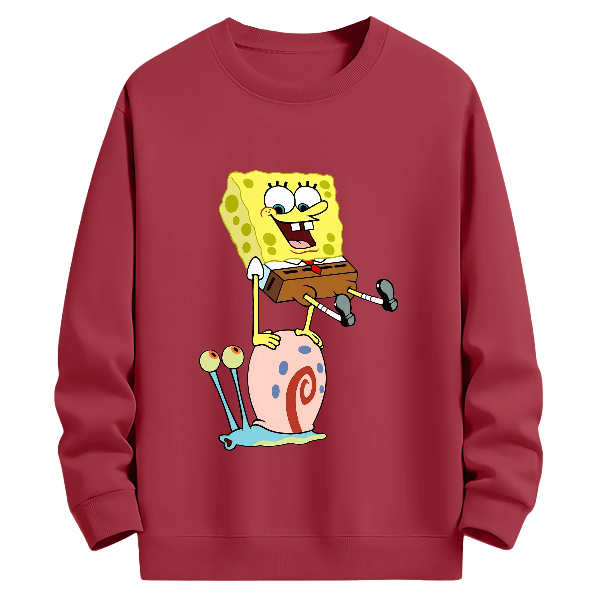 スポンジボブ グッズ カタツムリさん - 薄手 クルーネック スウェット 裏毛260g · ポリエステル 春秋向け カジュアル 男女兼用 · トレーナー デイリー スポーツ 散歩に最適