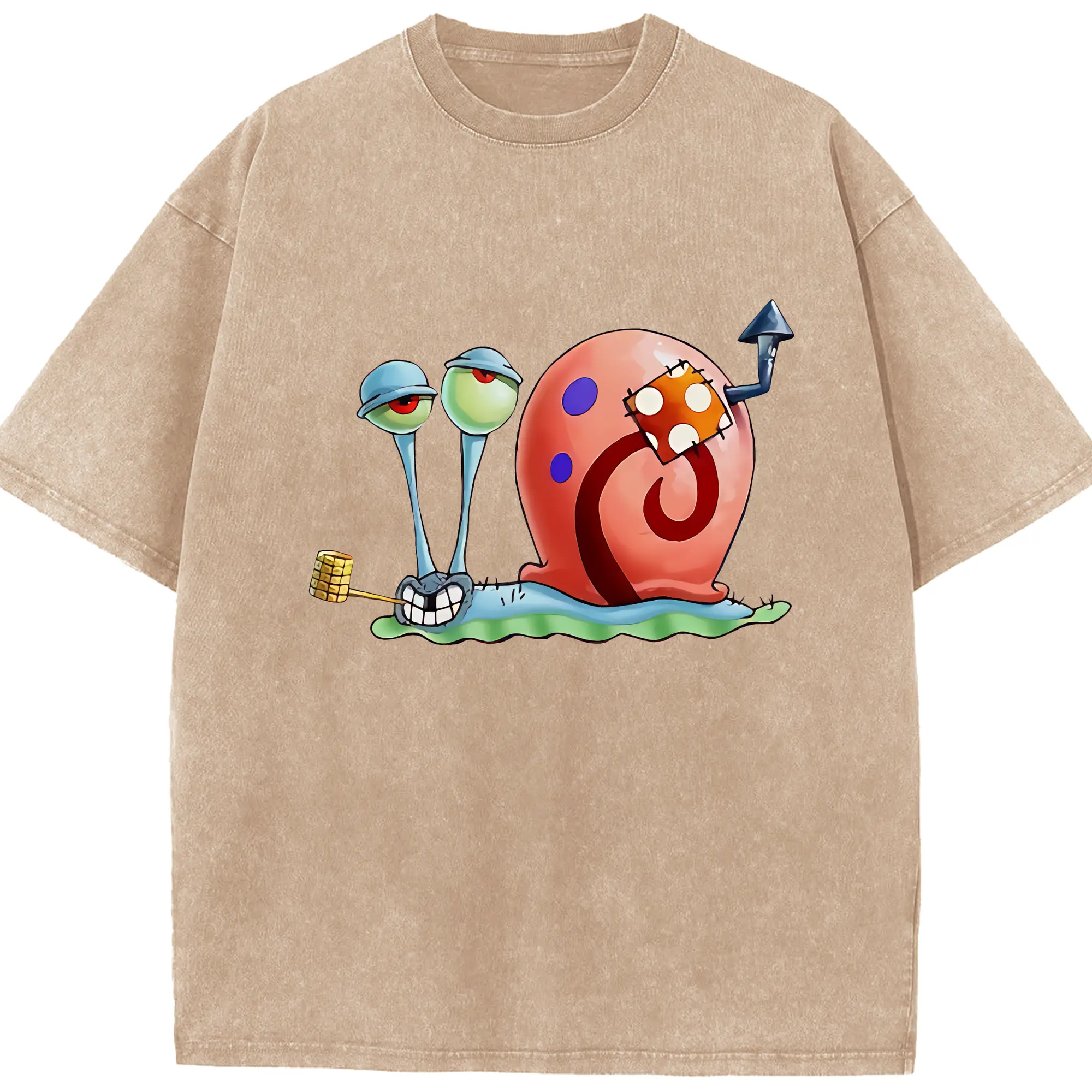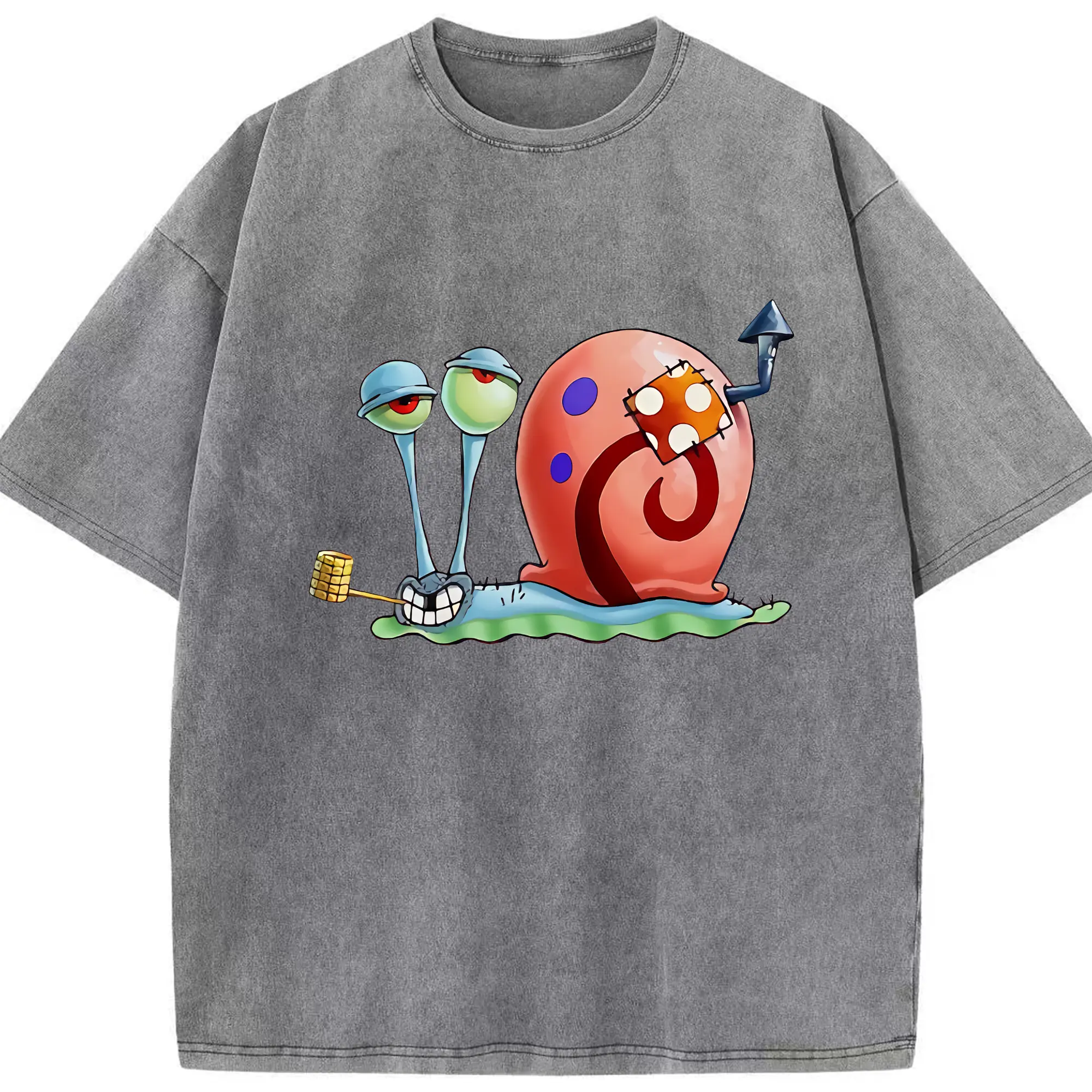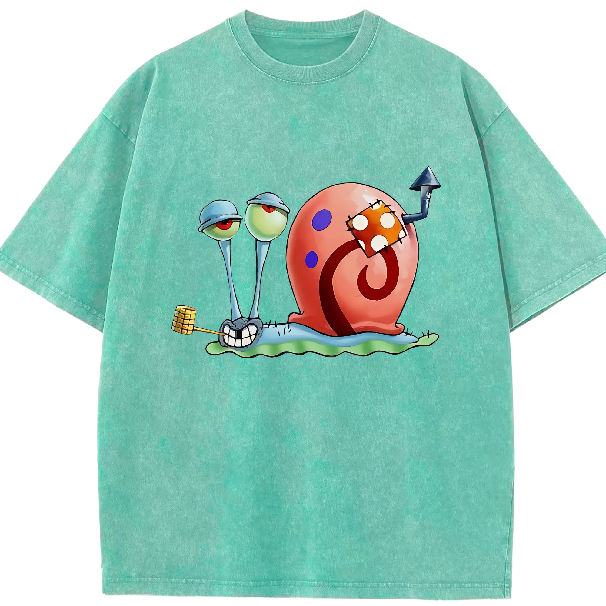 スポンジボブ グッズ カタツムリさん - 綿100% ヴィンテージ風 半袖Tシャツ ・ 背面プリント ・ 柔らか肌触り ・ 通気性 快適 ・ スポーツ カジュアル 外出用