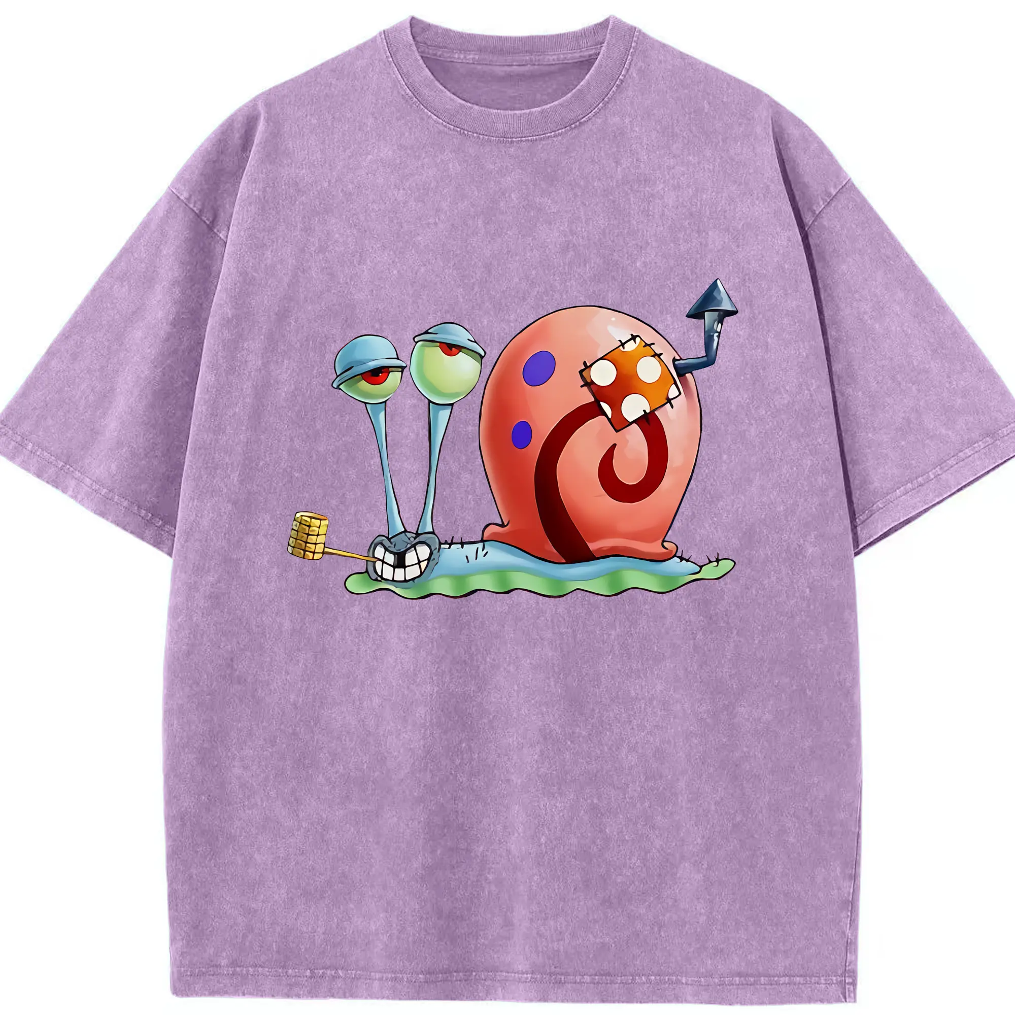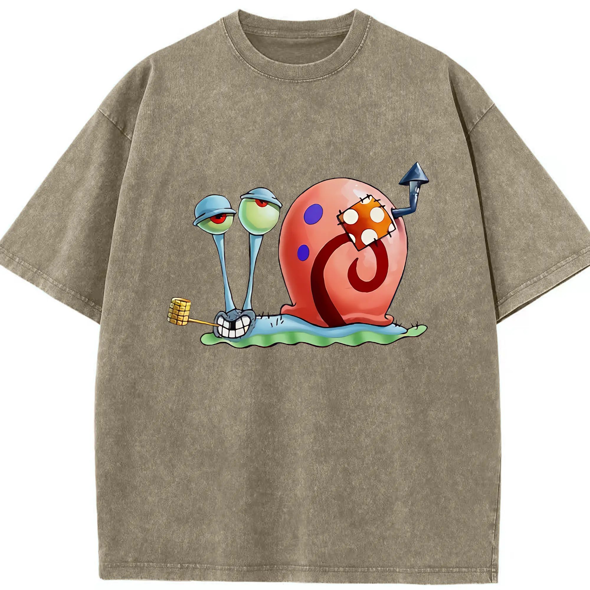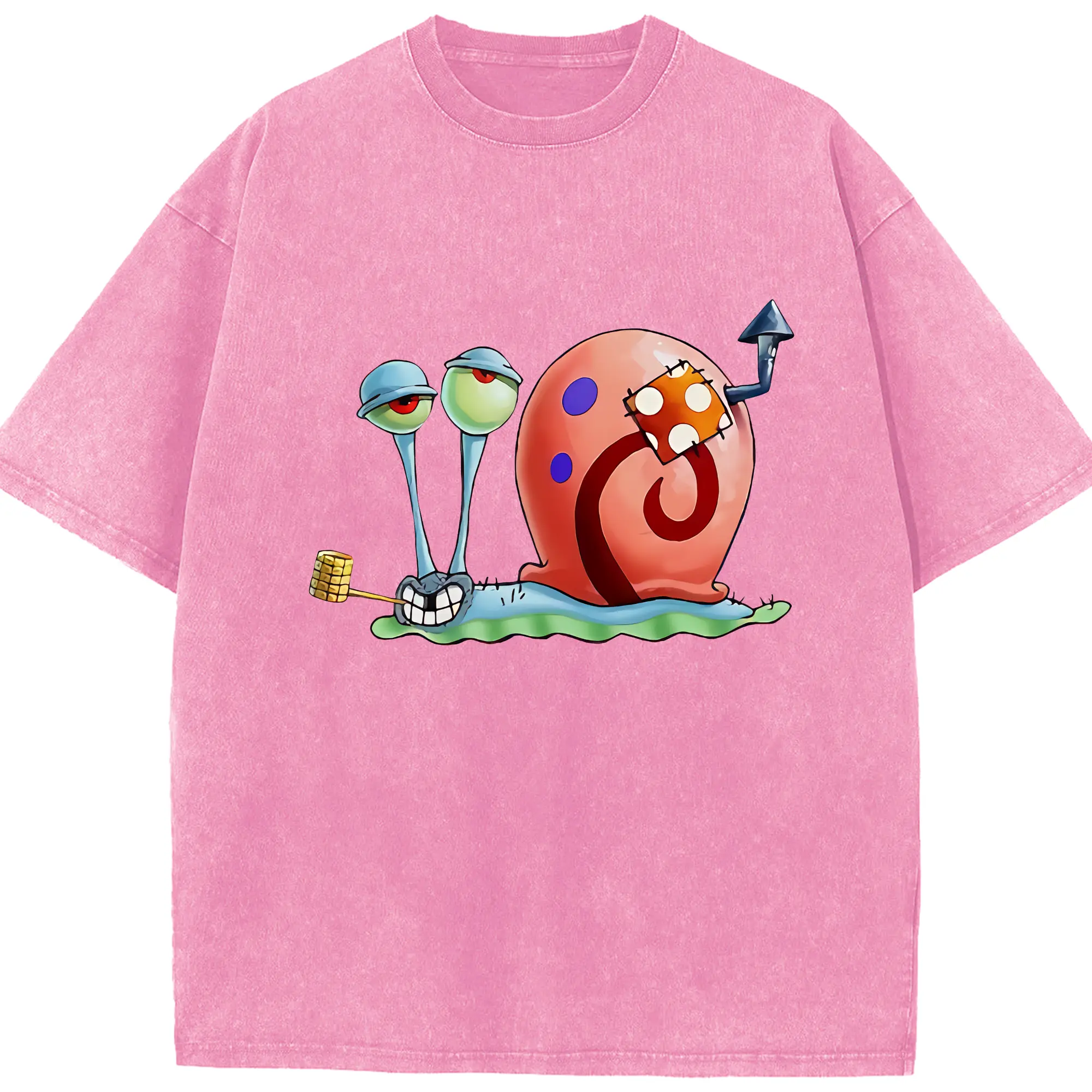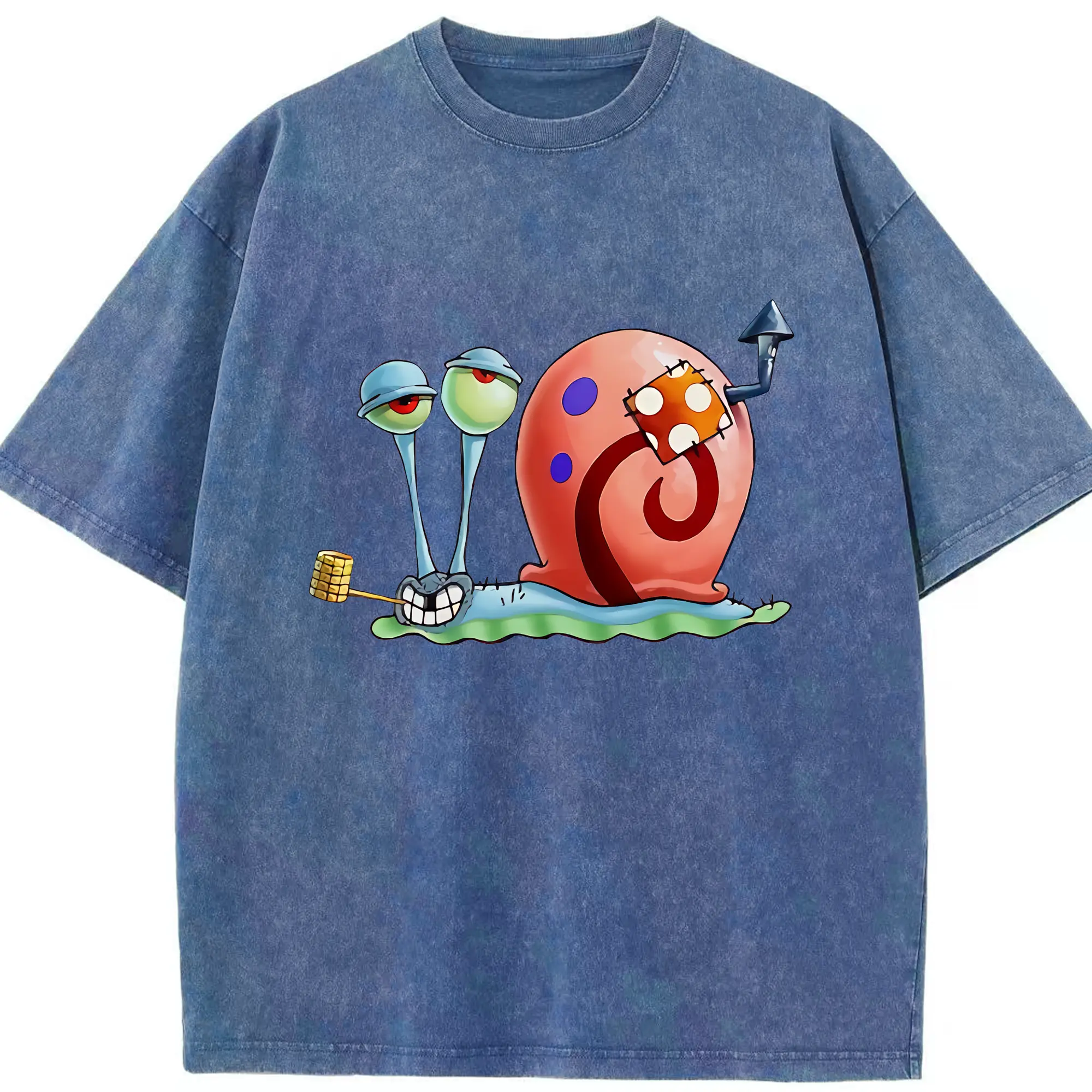 スポンジボブ グッズ カタツムリさん - 綿100% ヴィンテージ風 半袖Tシャツ ・ 背面プリント ・ 柔らか肌触り ・ 通気性 快適 ・ スポーツ カジュアル 外出用