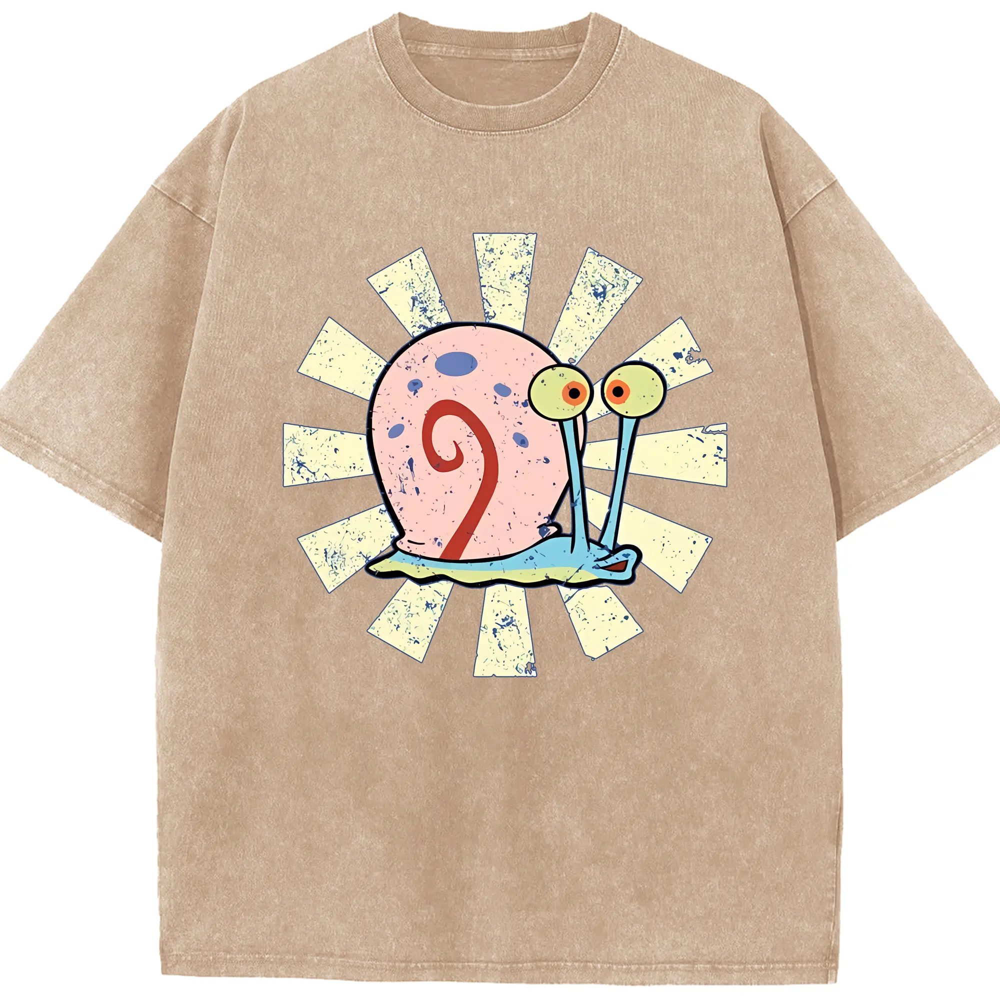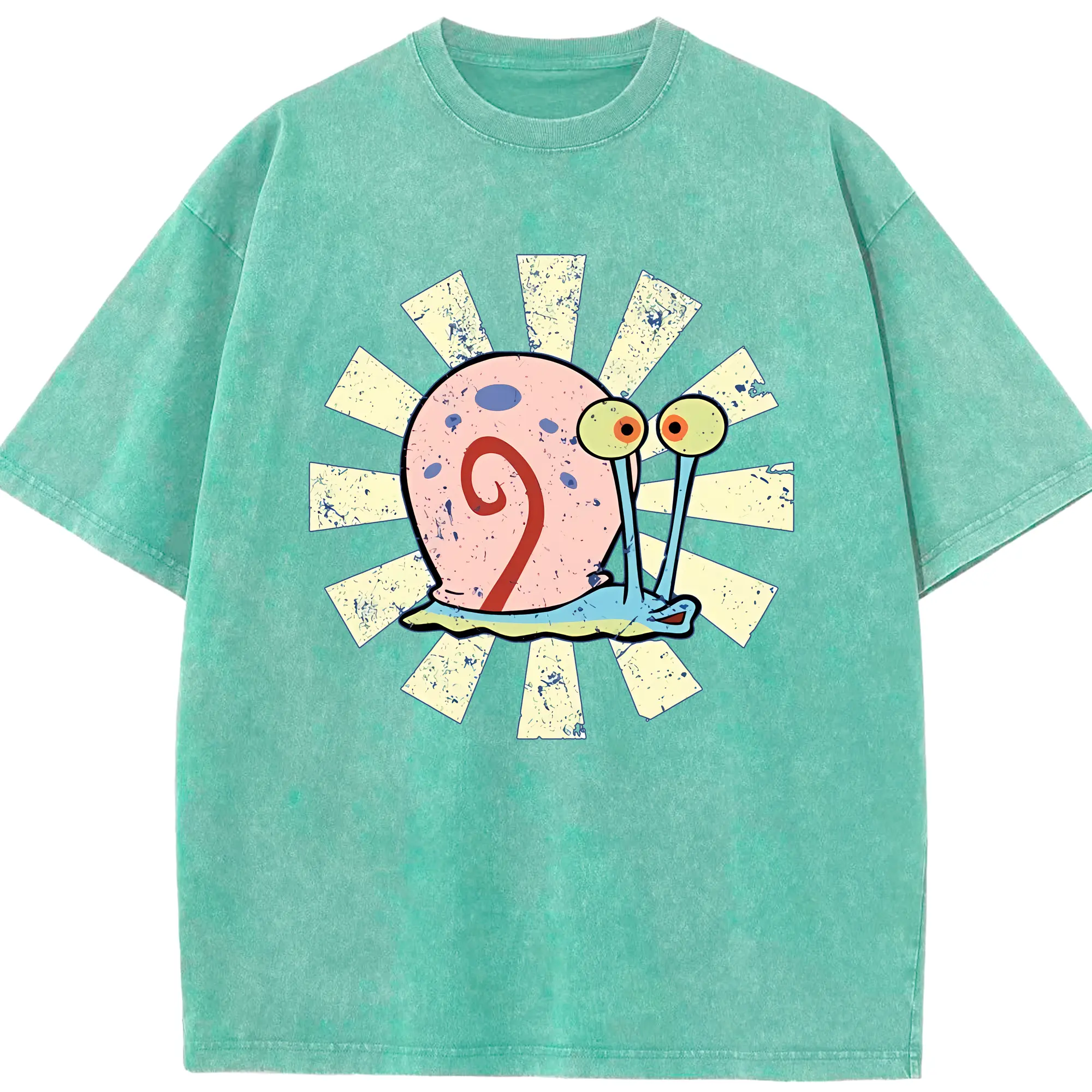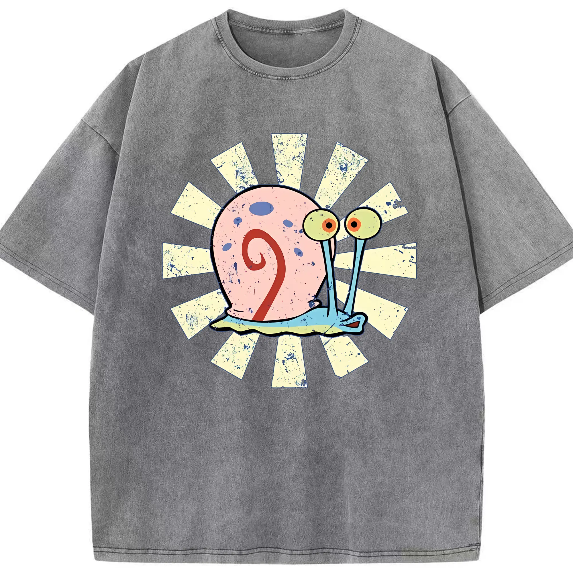 スポンジボブ グッズ カタツムリさん - 綿100% ヴィンテージ風 半袖Tシャツ ・ 背面プリント ・ 柔らか肌触り ・ 通気性 快適 ・ スポーツ カジュアル 外出用