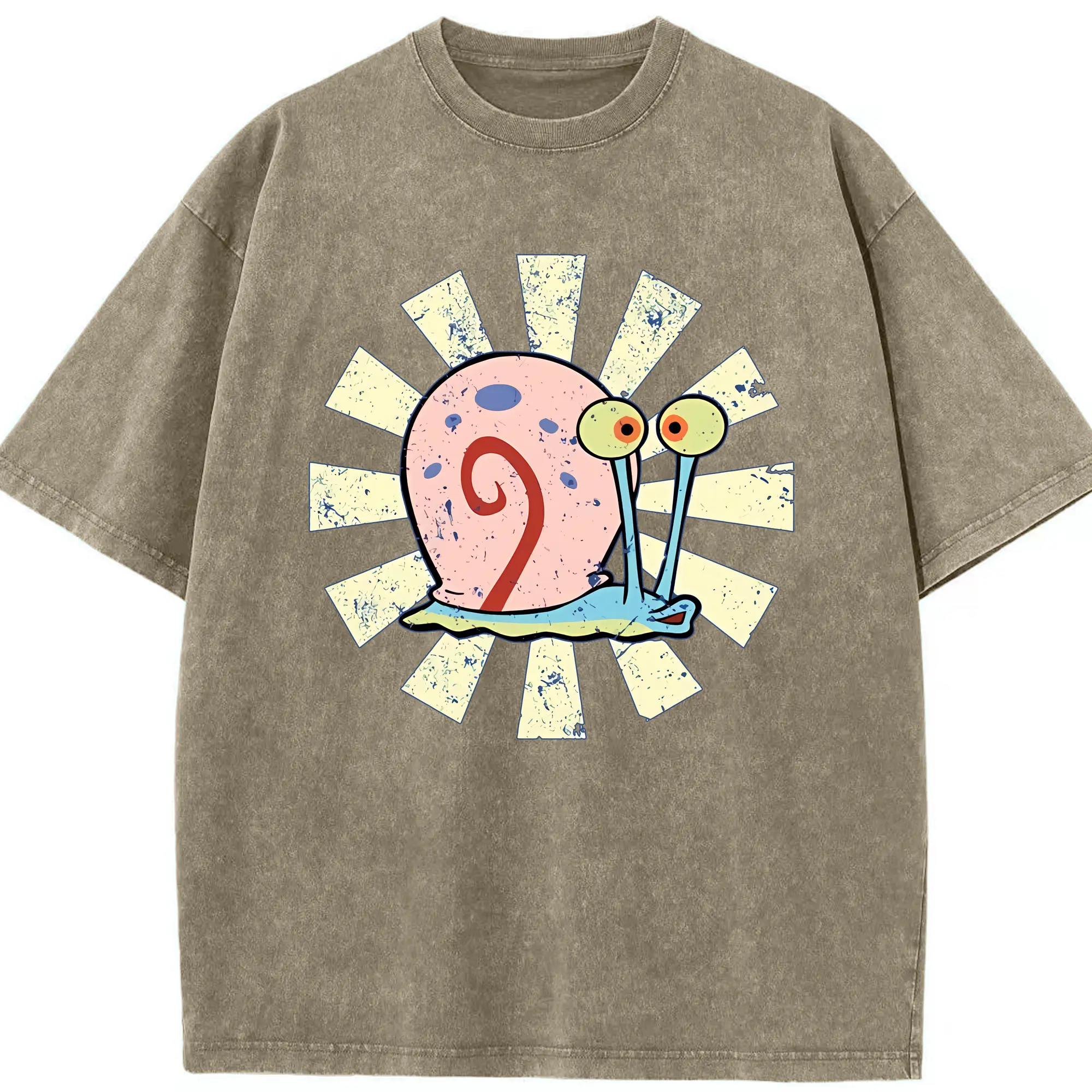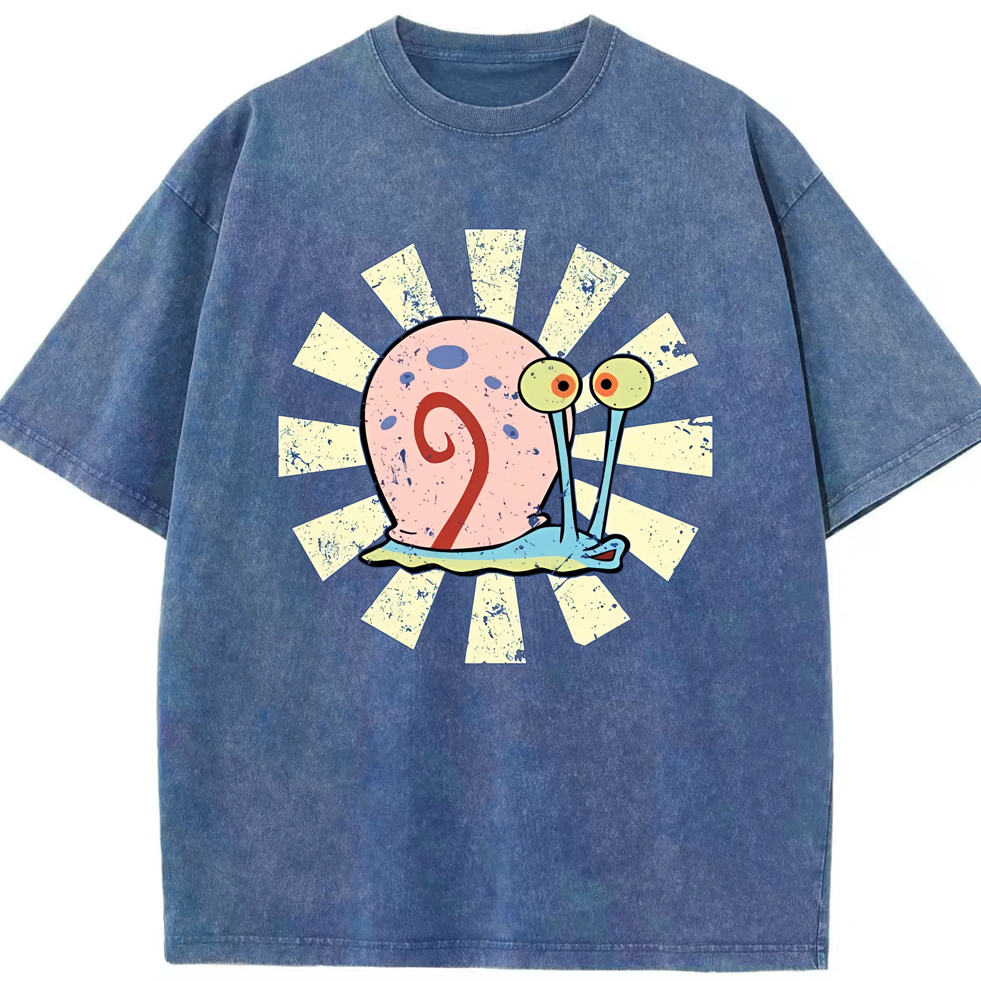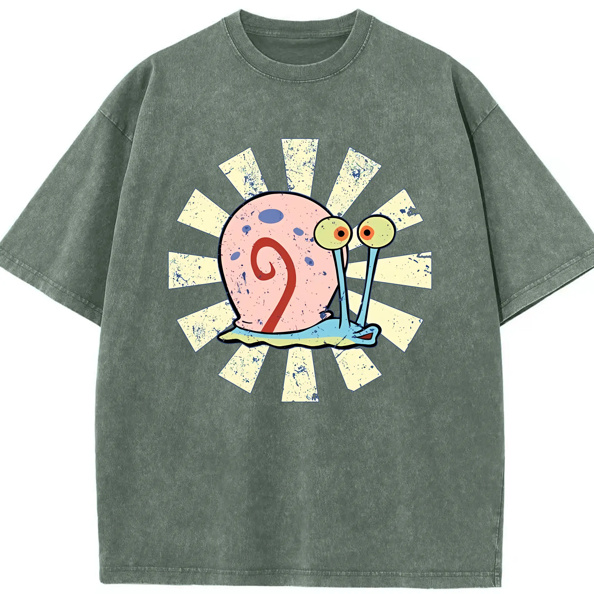 スポンジボブ グッズ カタツムリさん - 綿100% ヴィンテージ風 半袖Tシャツ ・ 背面プリント ・ 柔らか肌触り ・ 通気性 快適 ・ スポーツ カジュアル 外出用