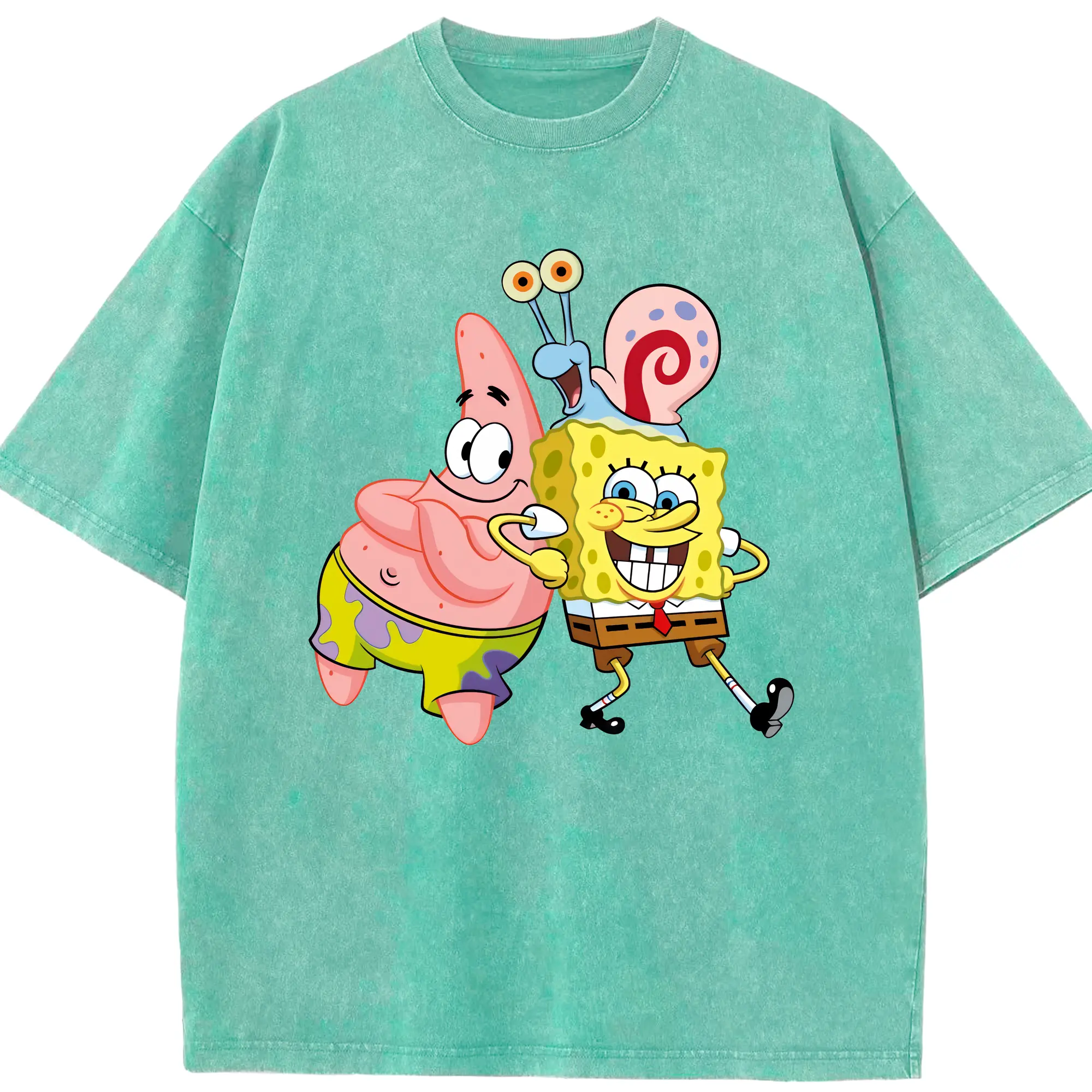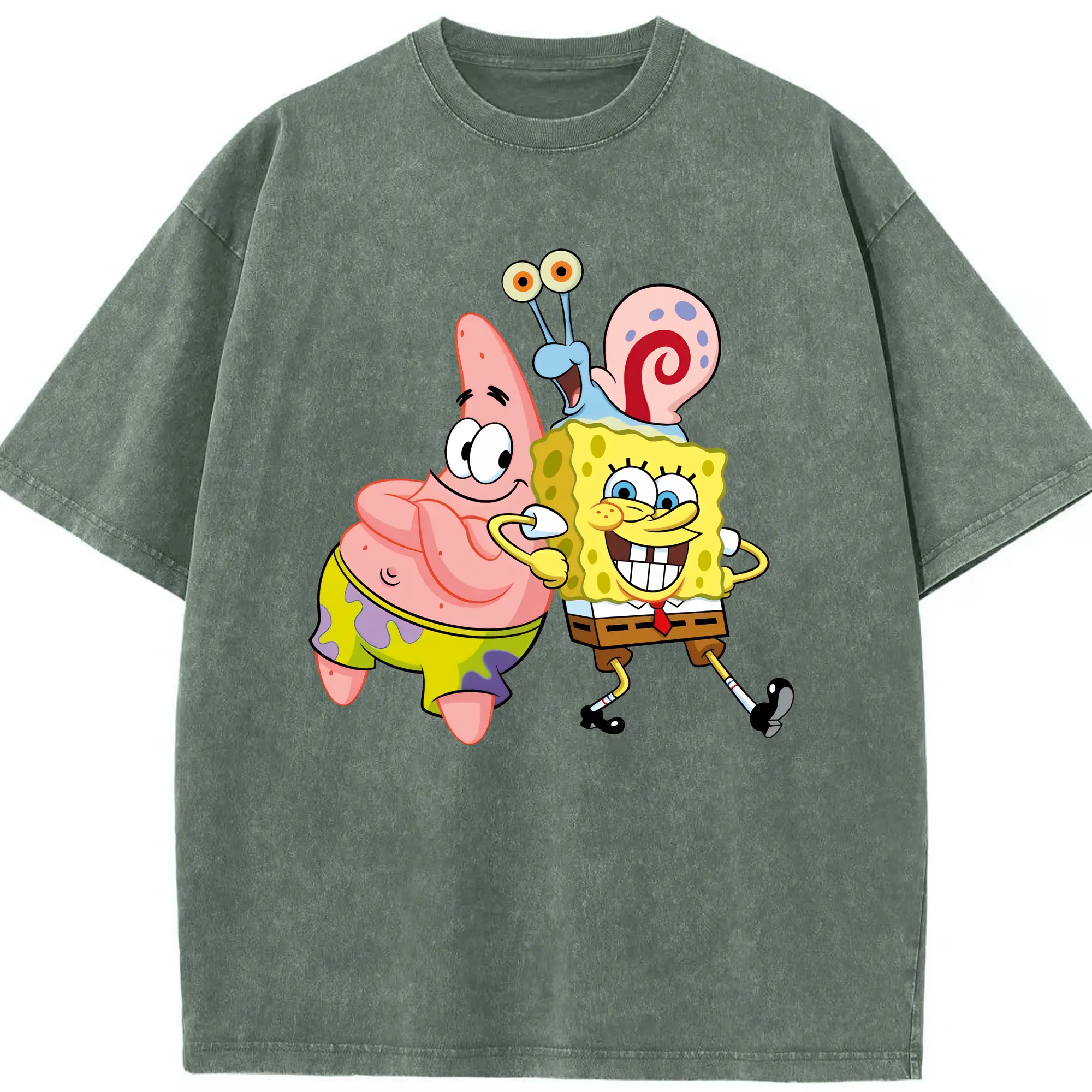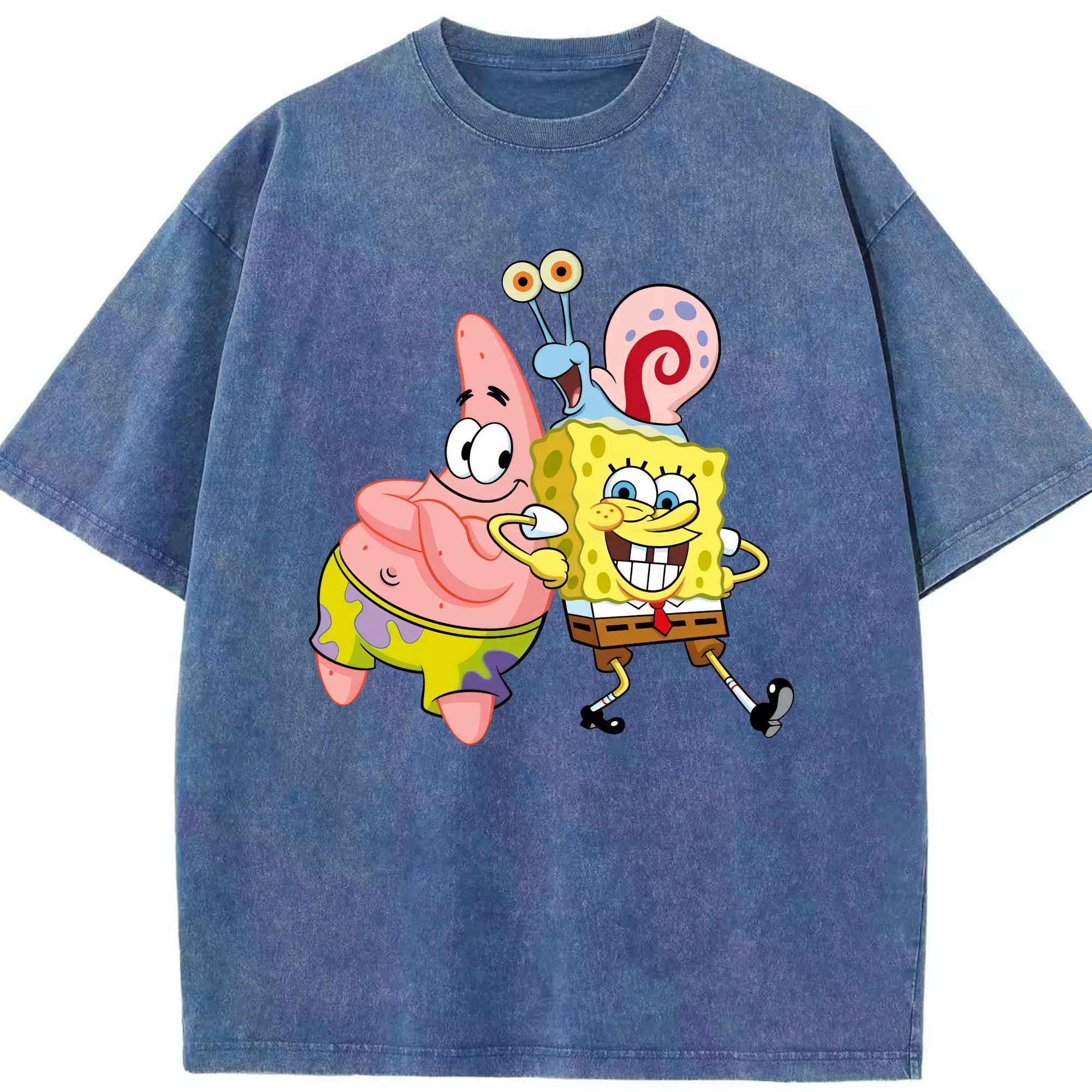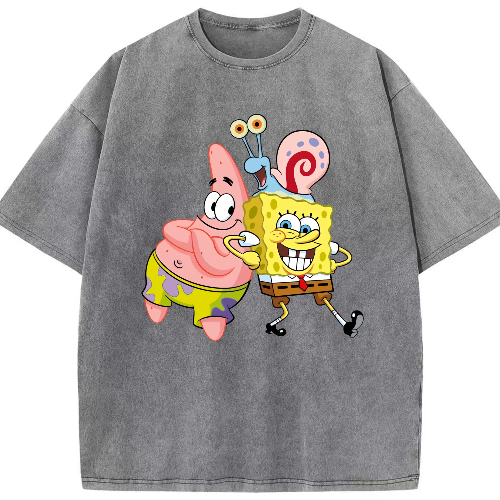 スポンジボブ グッズ カタツムリさん - 綿100% ヴィンテージ風 半袖Tシャツ ・ 背面プリント ・ 柔らか肌触り ・ 通気性 快適 ・ スポーツ カジュアル 外出用