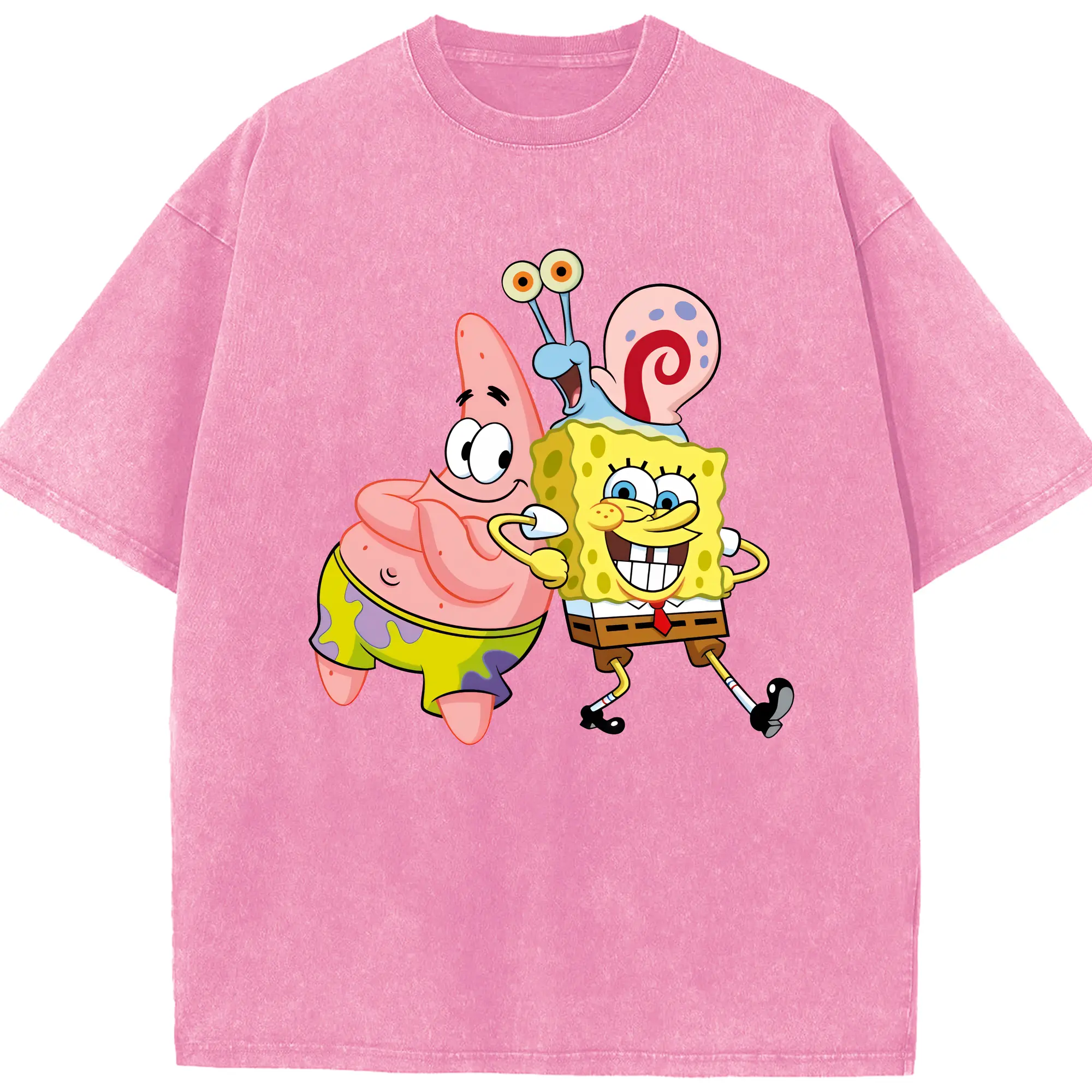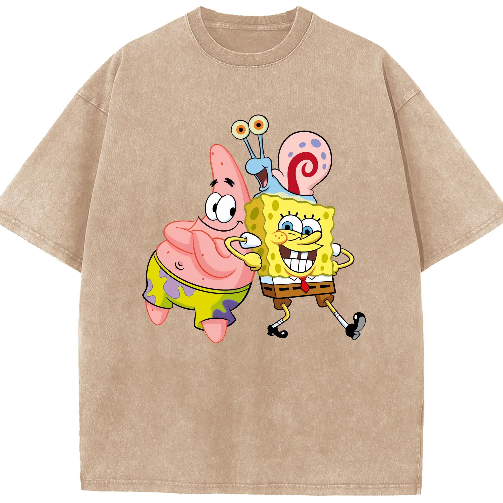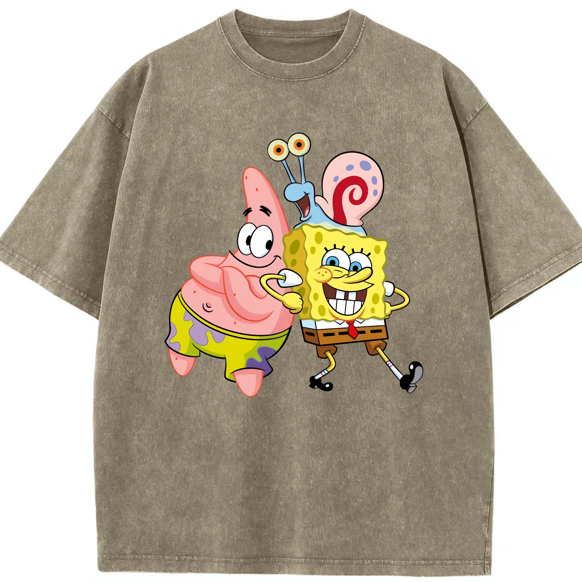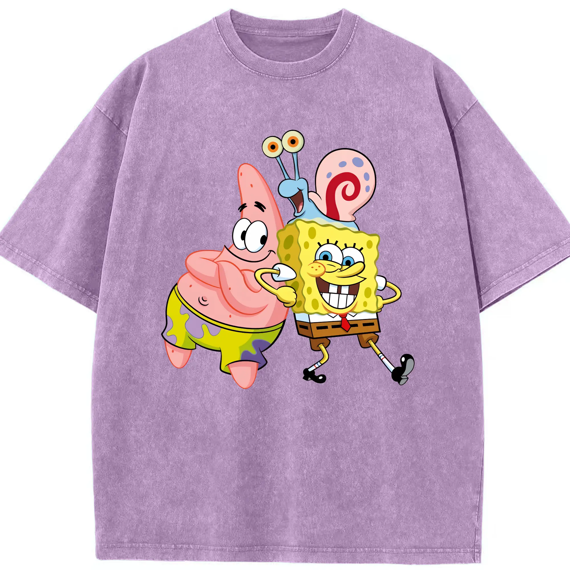 スポンジボブ グッズ カタツムリさん - 綿100% ヴィンテージ風 半袖Tシャツ ・ 背面プリント ・ 柔らか肌触り ・ 通気性 快適 ・ スポーツ カジュアル 外出用