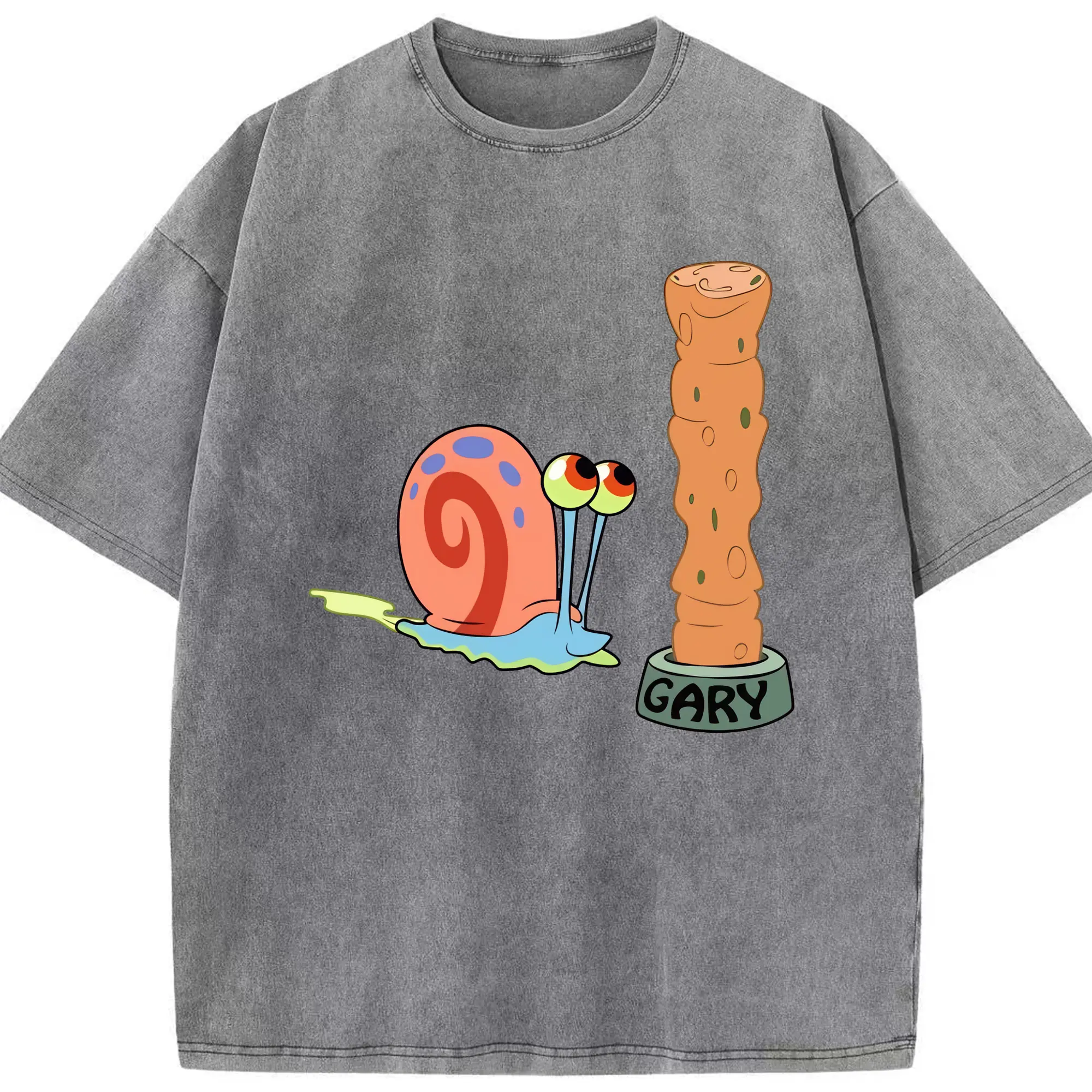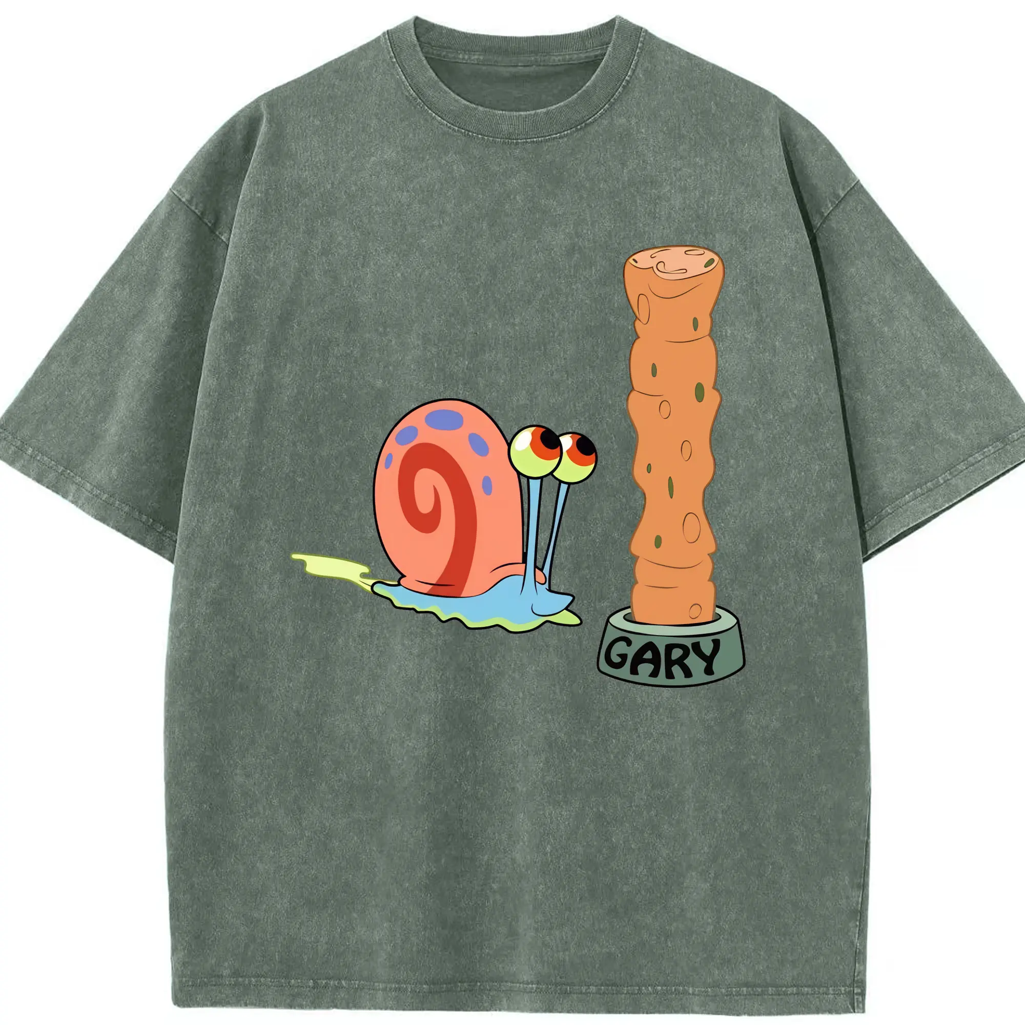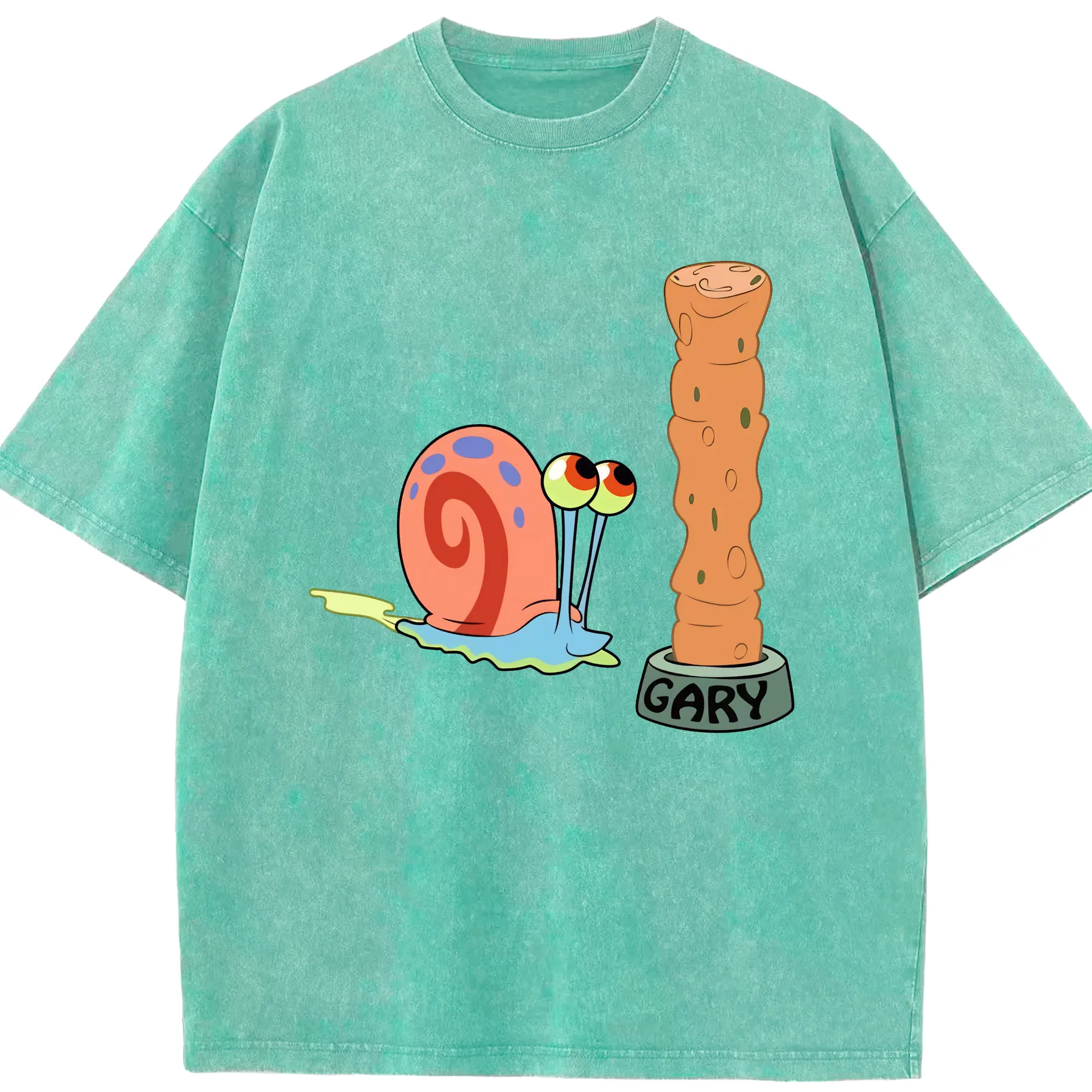 スポンジボブ グッズ カタツムリさん - 綿100% ヴィンテージ風 半袖Tシャツ ・ 背面プリント ・ 柔らか肌触り ・ 通気性 快適 ・ スポーツ カジュアル 外出用
