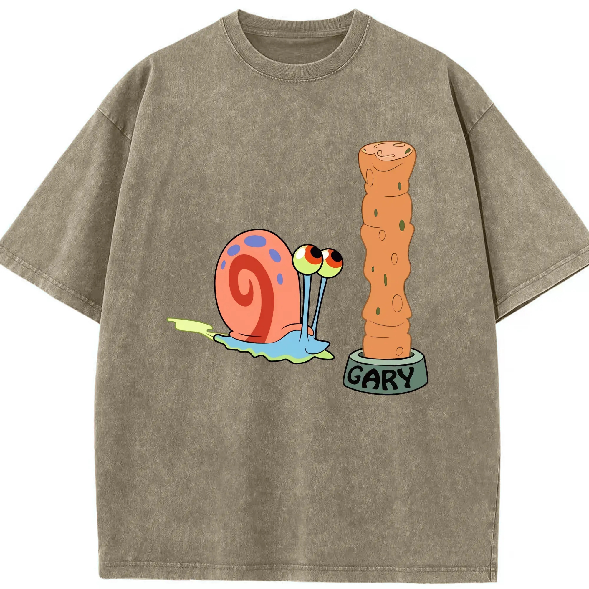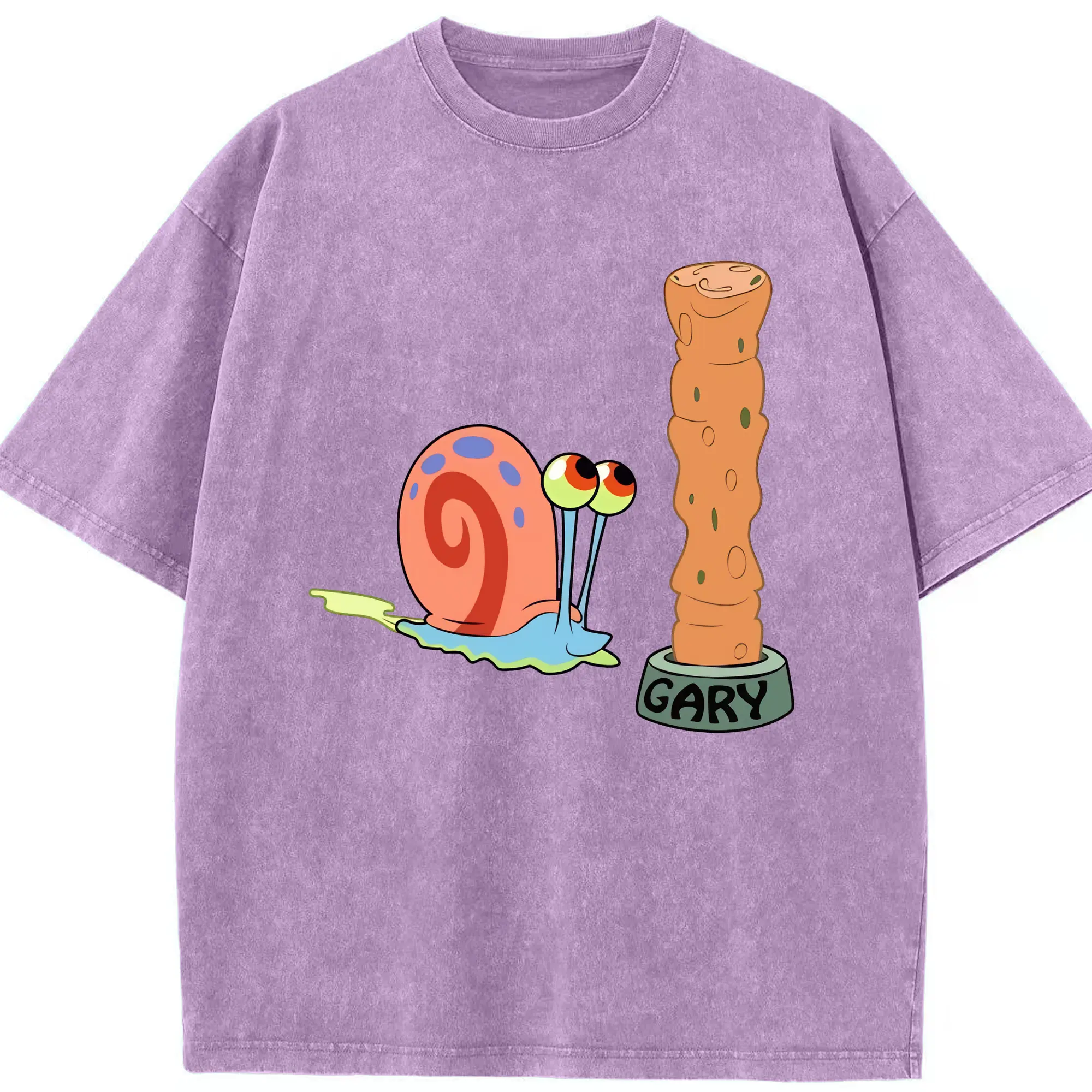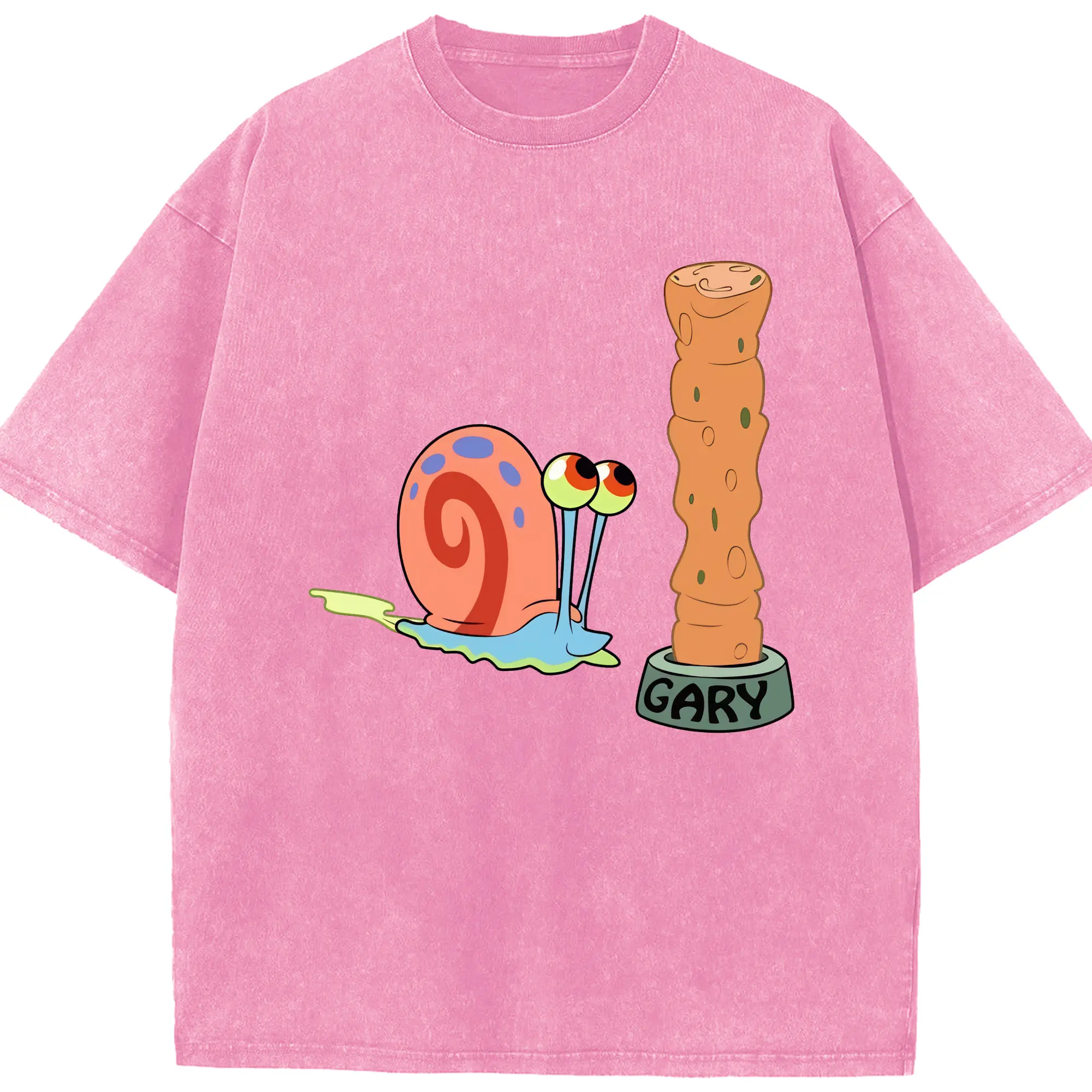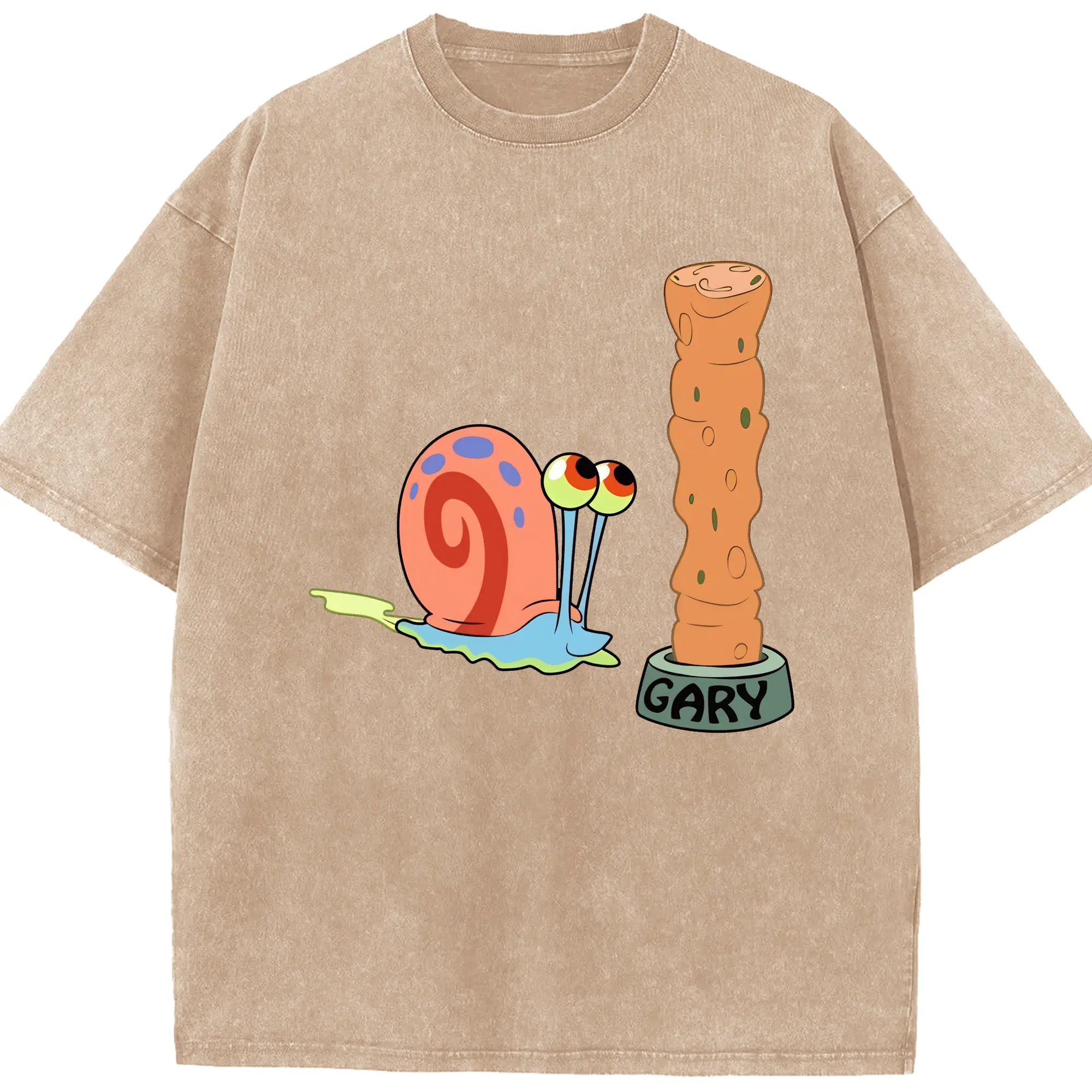 スポンジボブ グッズ カタツムリさん - 綿100% ヴィンテージ風 半袖Tシャツ ・ 背面プリント ・ 柔らか肌触り ・ 通気性 快適 ・ スポーツ カジュアル 外出用