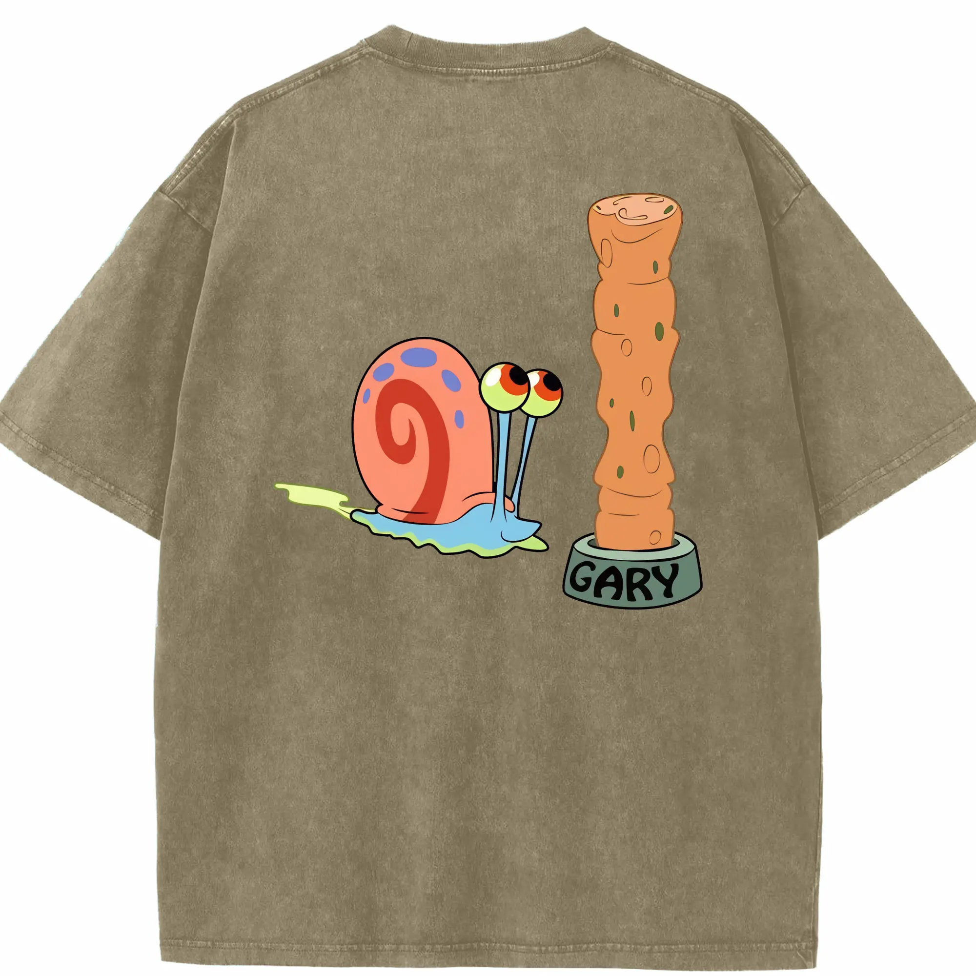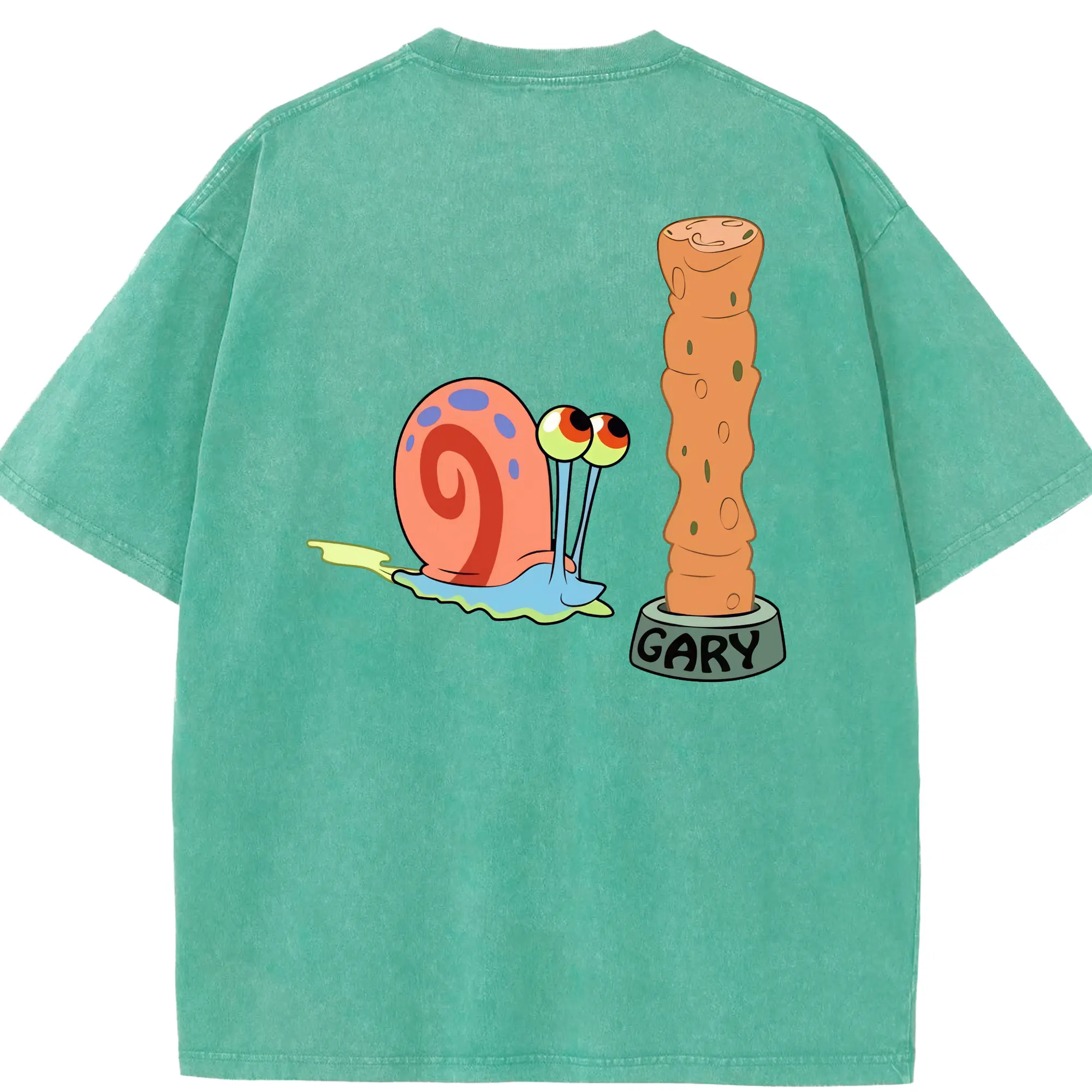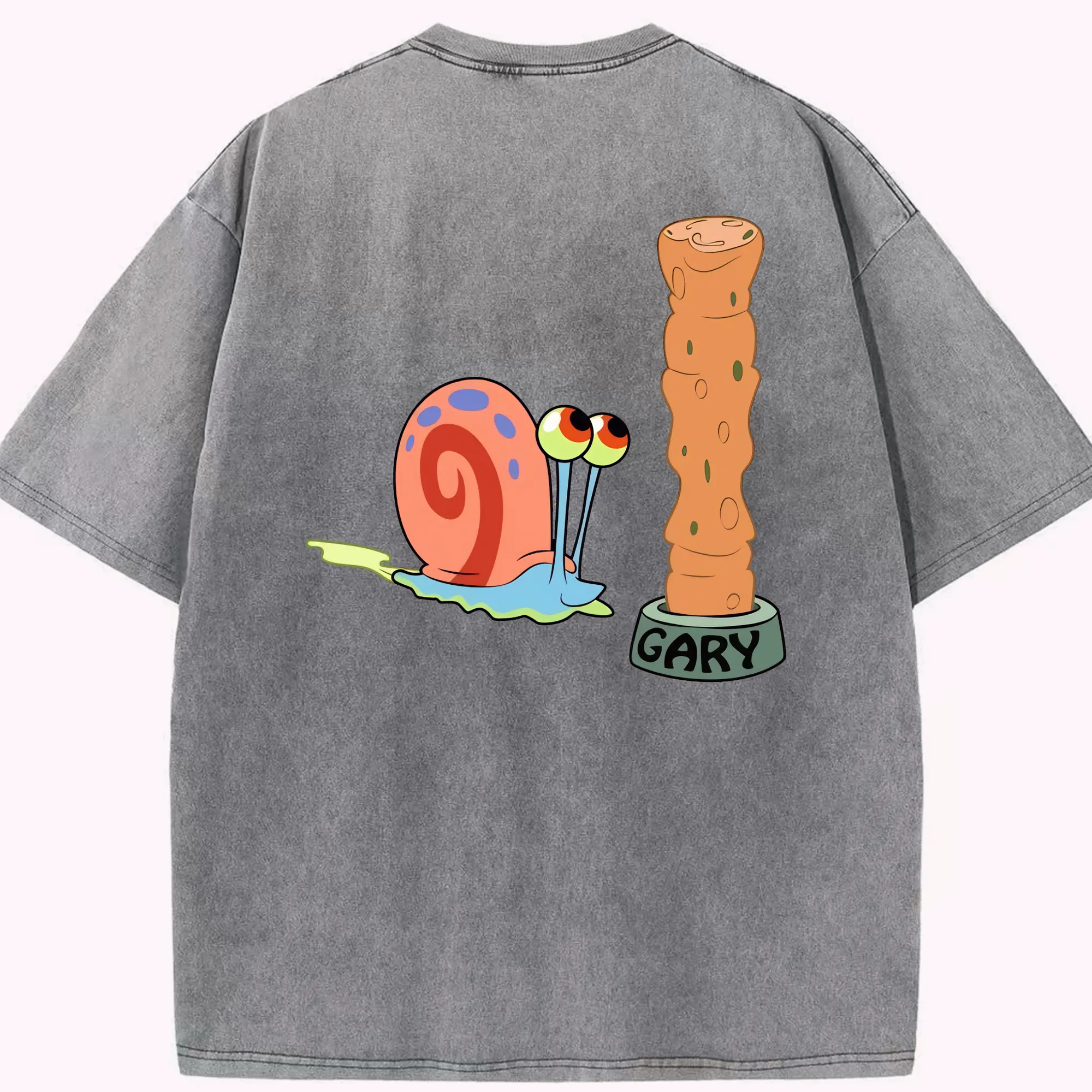 スポンジボブ グッズ カタツムリさん - 綿100% ヴィンテージ風 半袖Tシャツ ・ フロントプリント ・ 柔らか肌触り ・ 通気性 快適 ・ スポーツ カジュアル 外出用