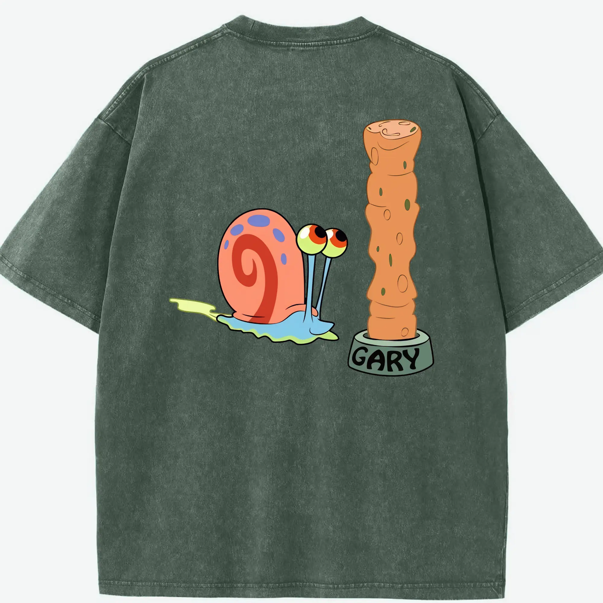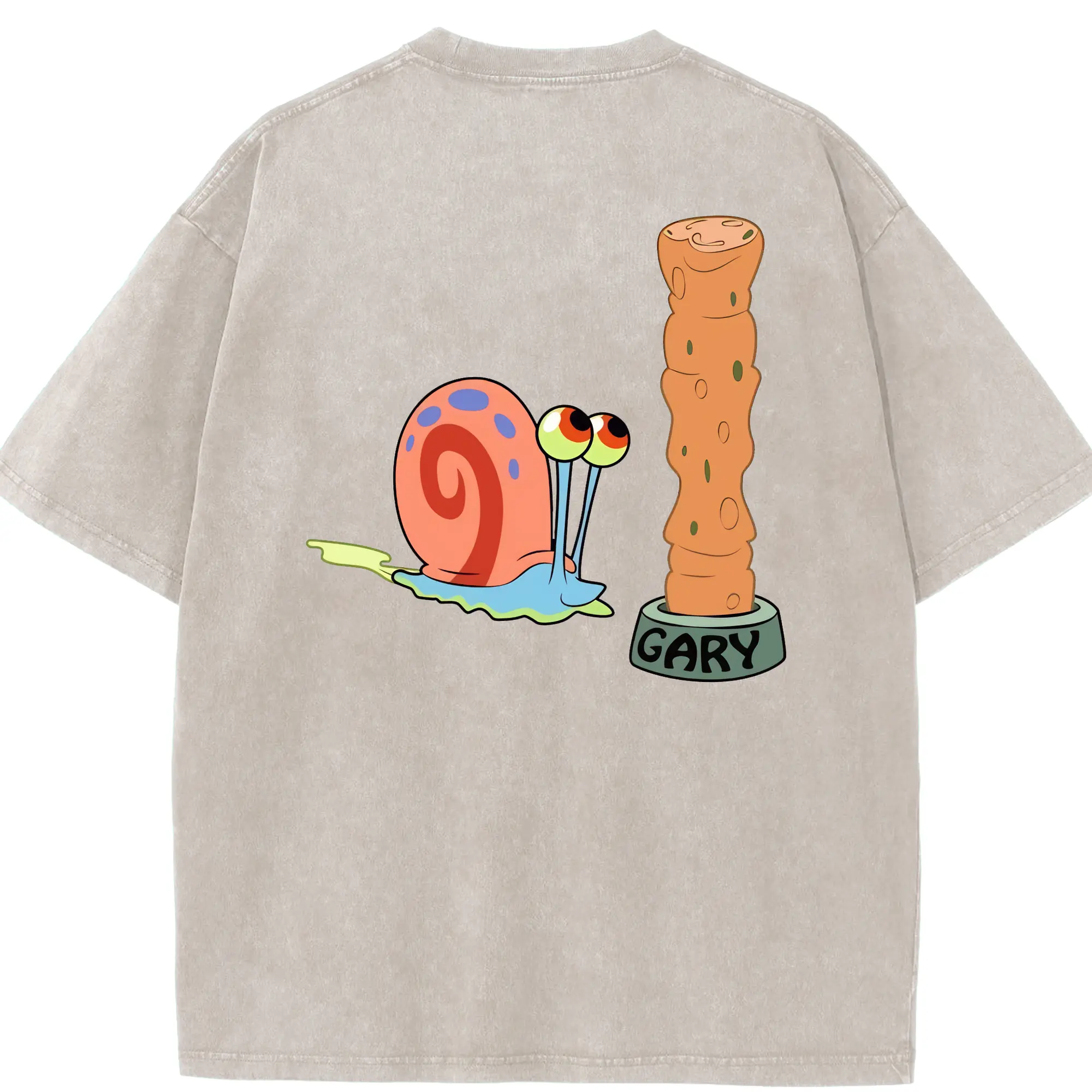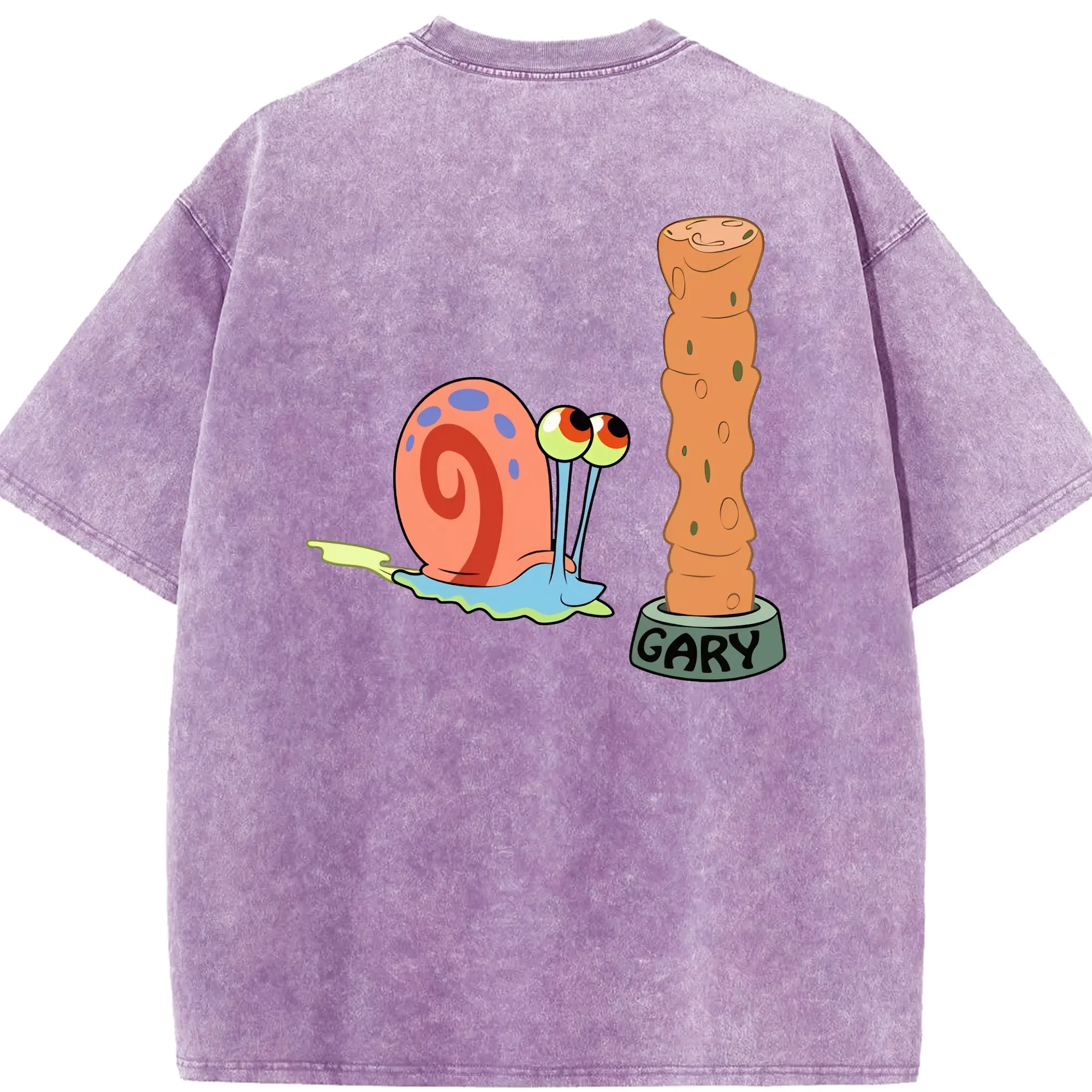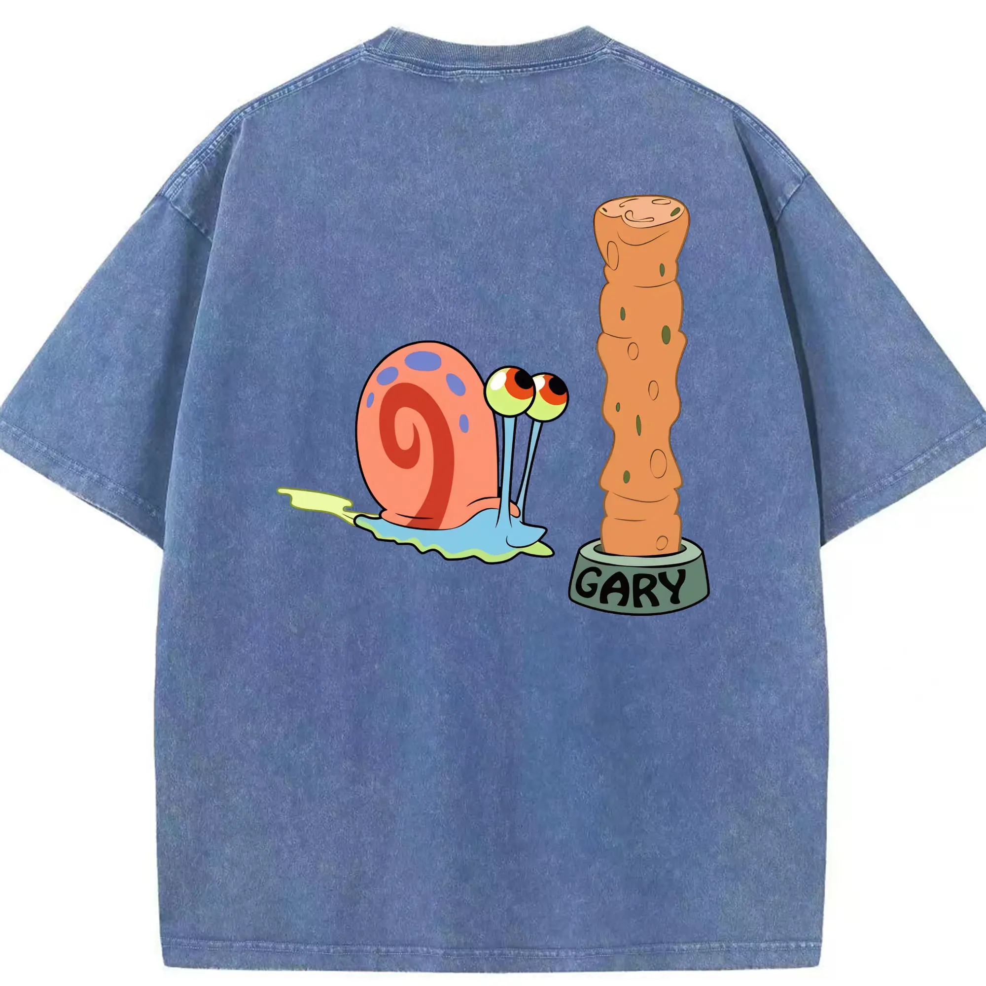 スポンジボブ グッズ カタツムリさん - 綿100% ヴィンテージ風 半袖Tシャツ ・ フロントプリント ・ 柔らか肌触り ・ 通気性 快適 ・ スポーツ カジュアル 外出用