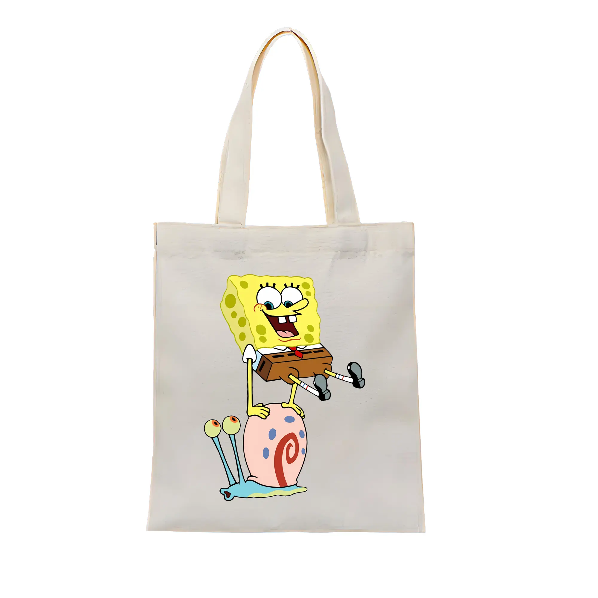 スポンジボブ グッズ カタツムリさん - 縦型キャンバス手提げバッグ(トートバッグ) ・ キャンバス素材 ・ ショッピング用 ・ 軽量 丈夫 お手入れ簡単