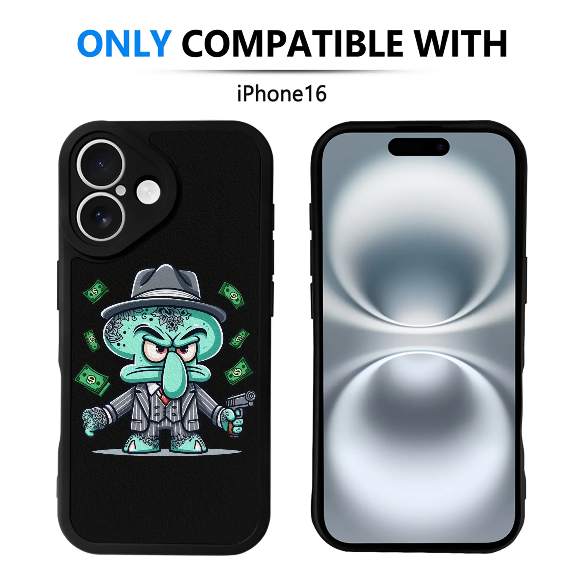 スポンジボブ グッズ イカルド - IPhone 16シリーズ対応 ・ シリコンスマホケース ・ レザー調 ・ 高精度フィット ・ 耐衝撃 ・ ワイヤレス充電対応 ・ 精密カット