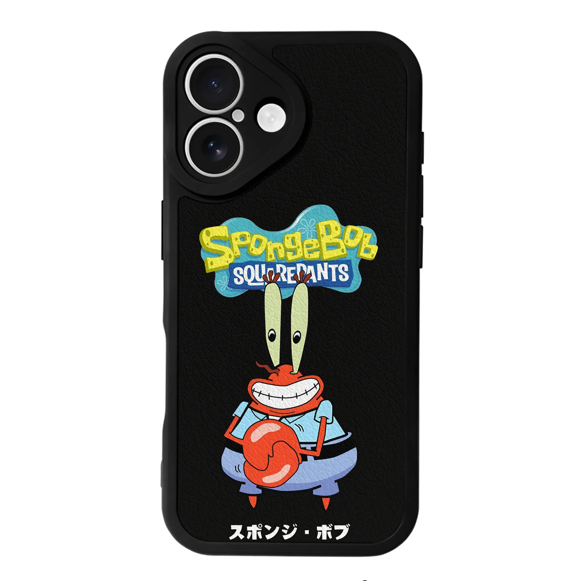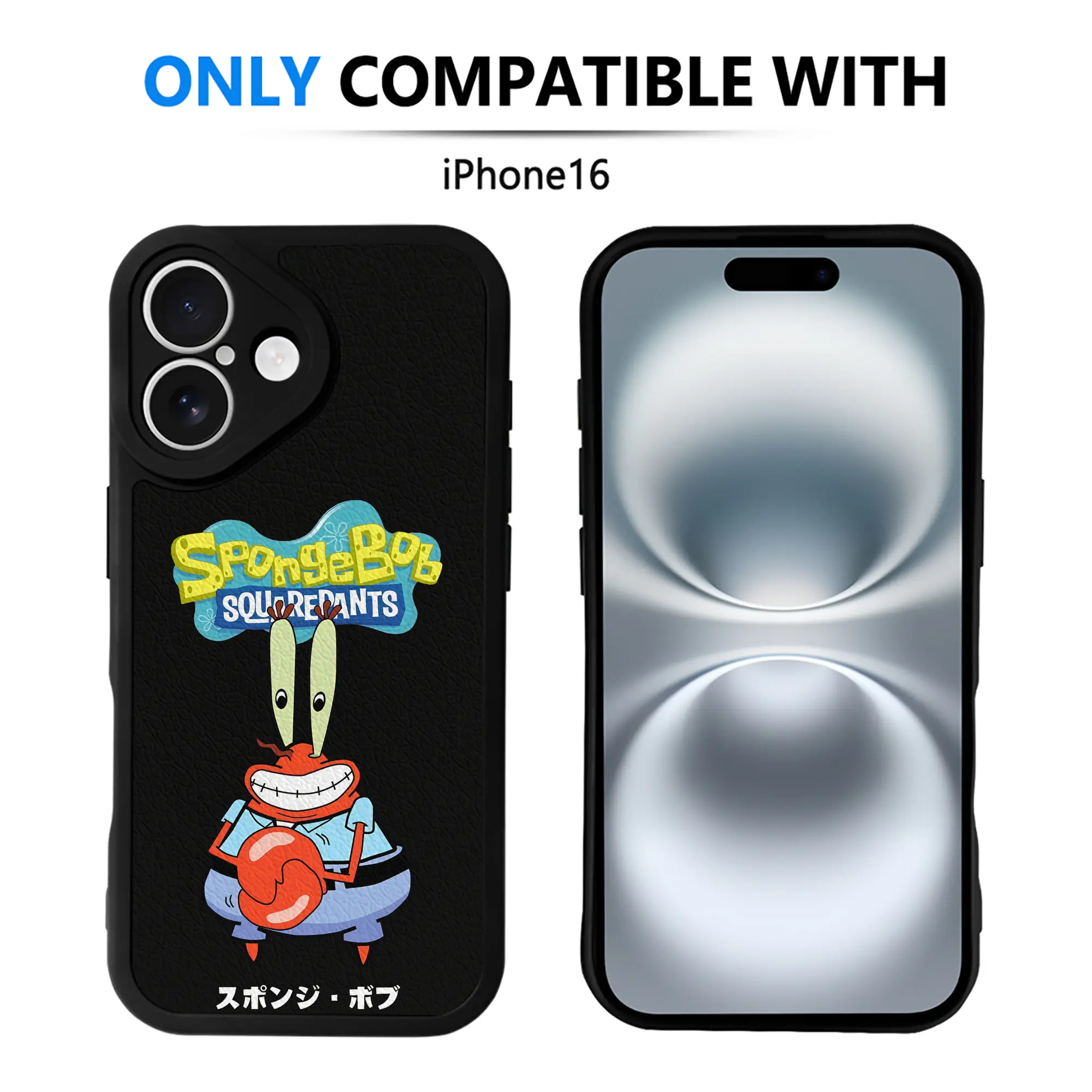 スポンジボブ グッズ ミスター・クラブ - IPhone 16シリーズ対応 ・ シリコンスマホケース ・ レザー調 ・ 高精度フィット ・ 耐衝撃 ・ ワイヤレス充電対応 ・ 精密カット