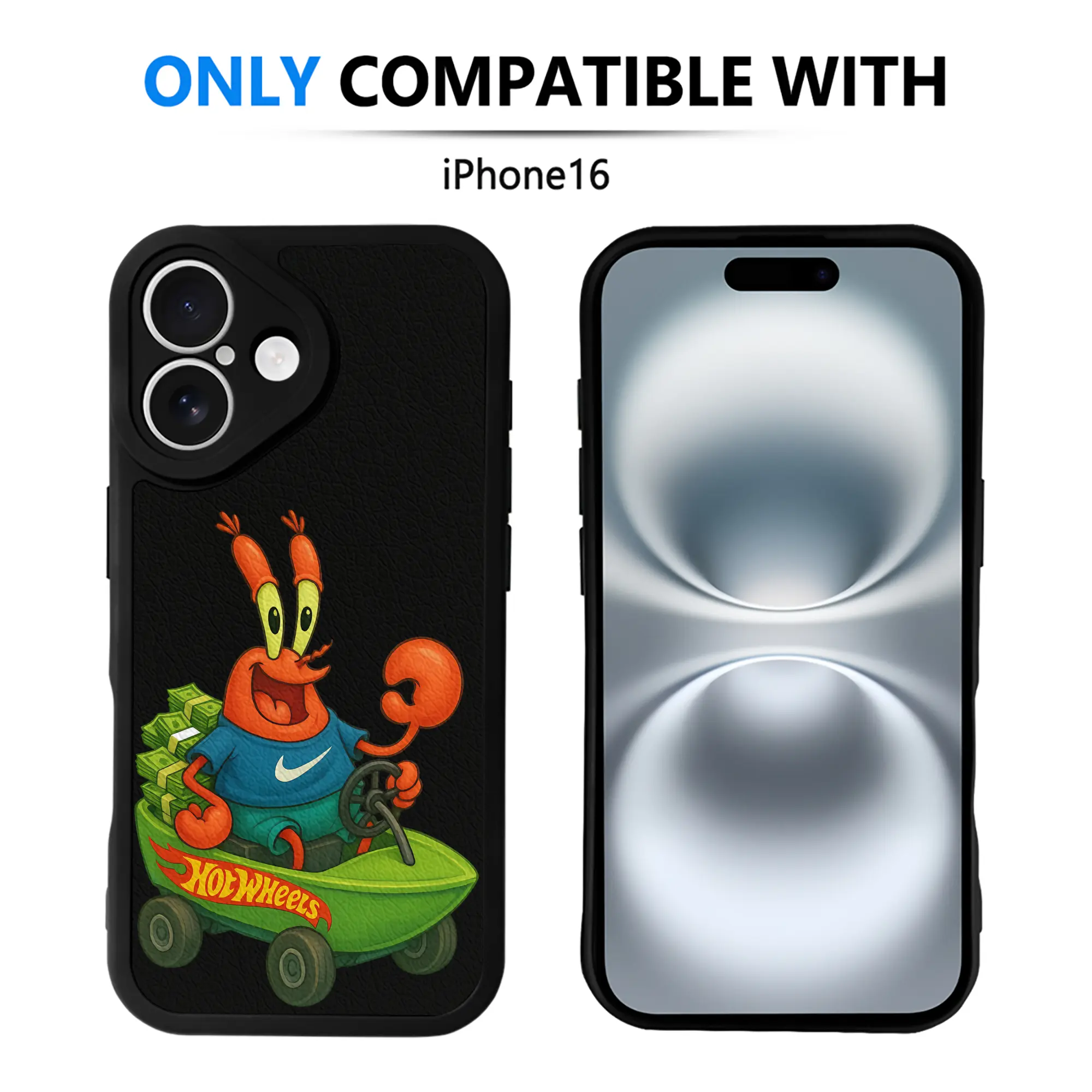 スポンジボブ グッズ ミスター・クラブ - IPhone 16シリーズ対応 ・ シリコンスマホケース ・ レザー調 ・ 高精度フィット ・ 耐衝撃 ・ ワイヤレス充電対応 ・ 精密カット