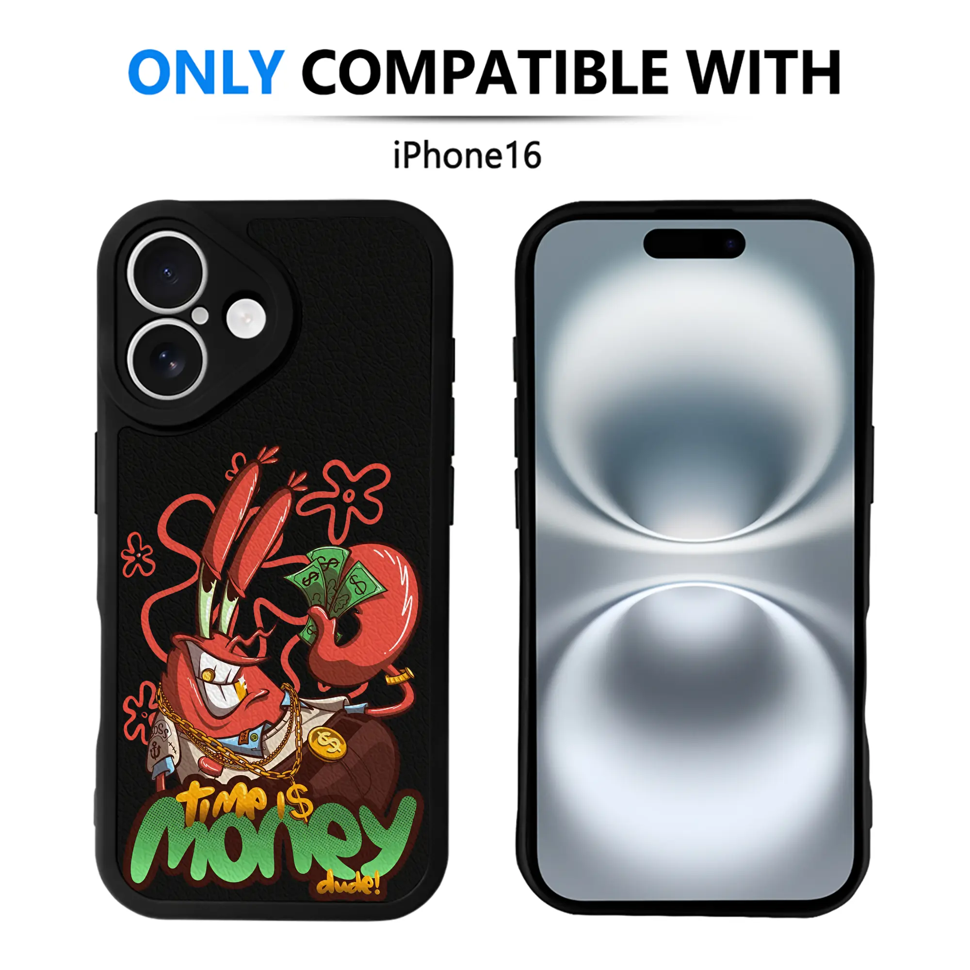 スポンジボブ グッズ ミスター・クラブ - IPhone 16シリーズ対応 ・ シリコンスマホケース ・ レザー調 ・ 高精度フィット ・ 耐衝撃 ・ ワイヤレス充電対応 ・ 精密カット