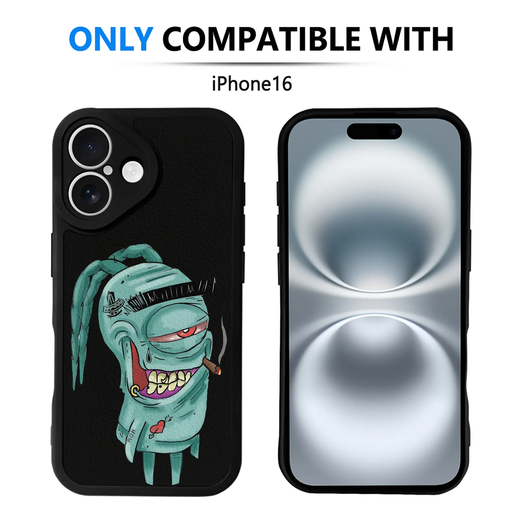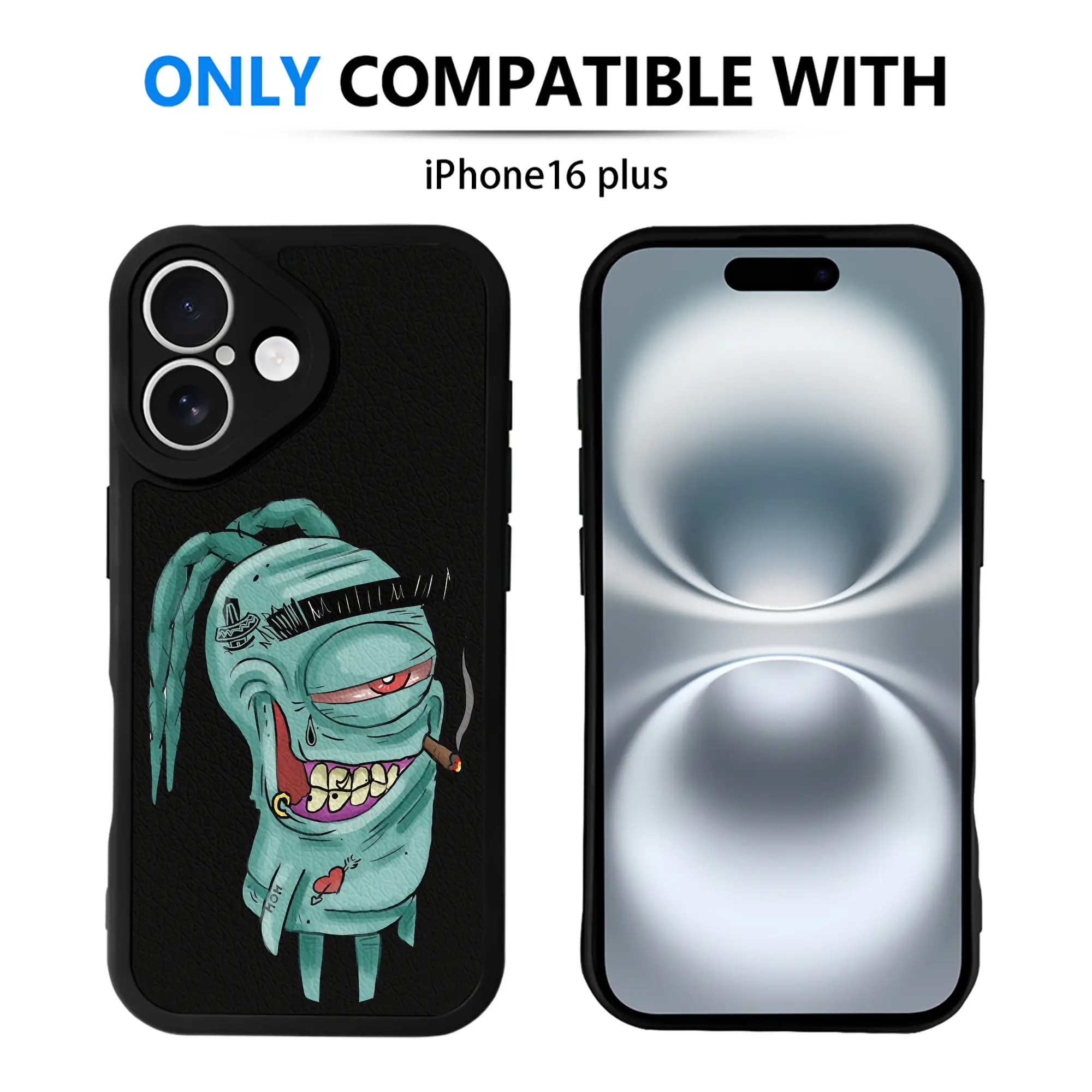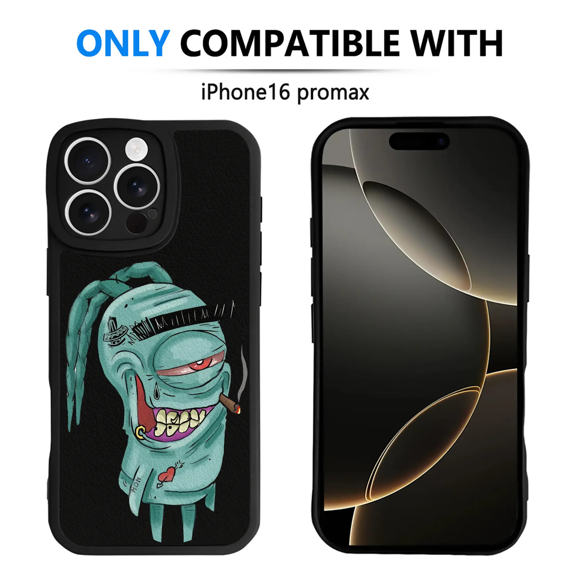 スポンジボブ グッズ プランクトン - IPhone 16シリーズ対応 ・ シリコンスマホケース ・ レザー調 ・ 高精度フィット ・ 耐衝撃 ・ ワイヤレス充電対応 ・ 精密カット