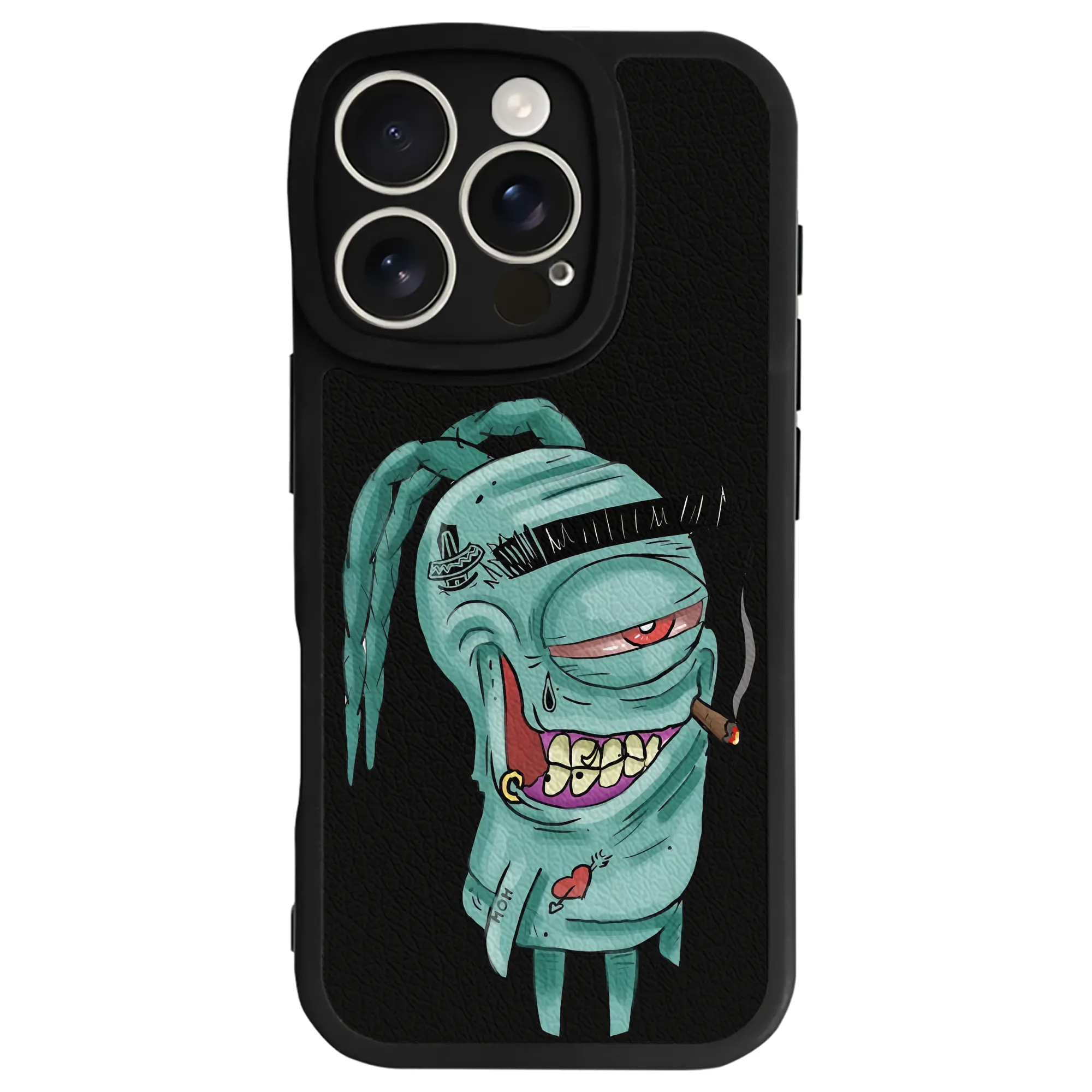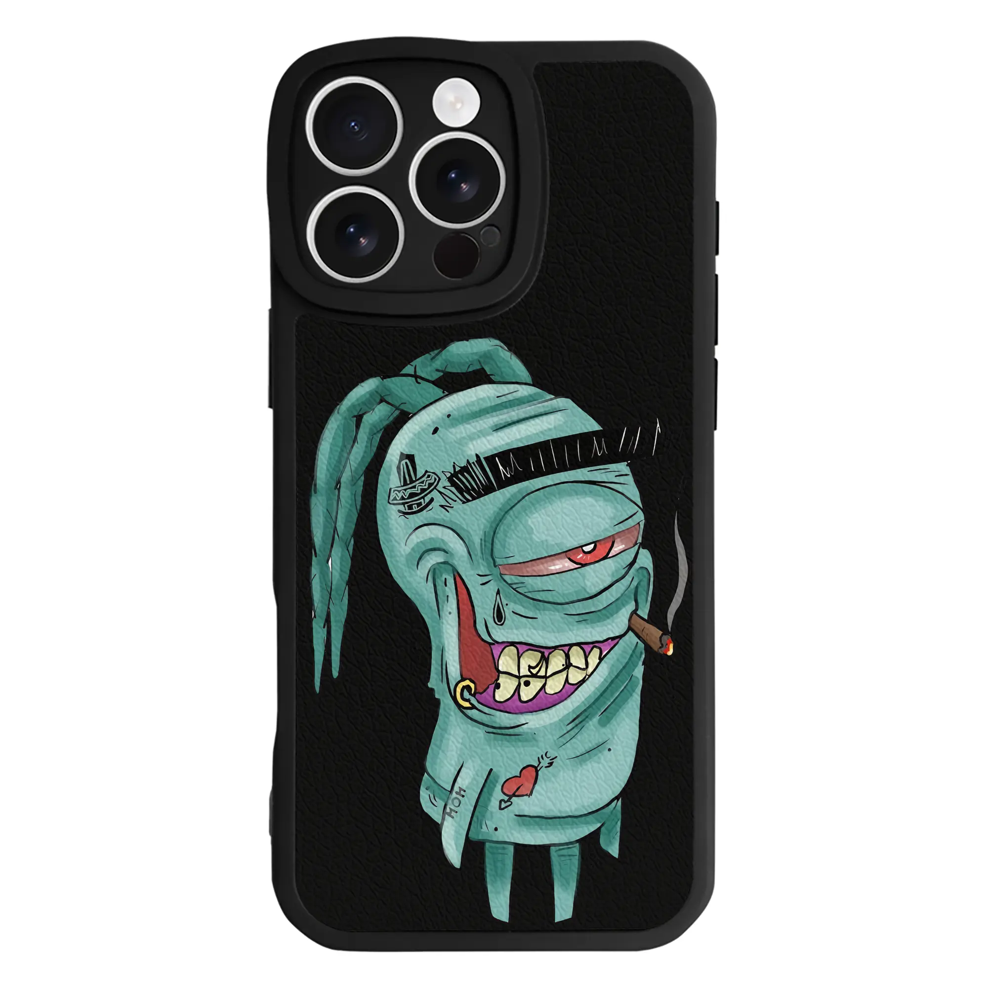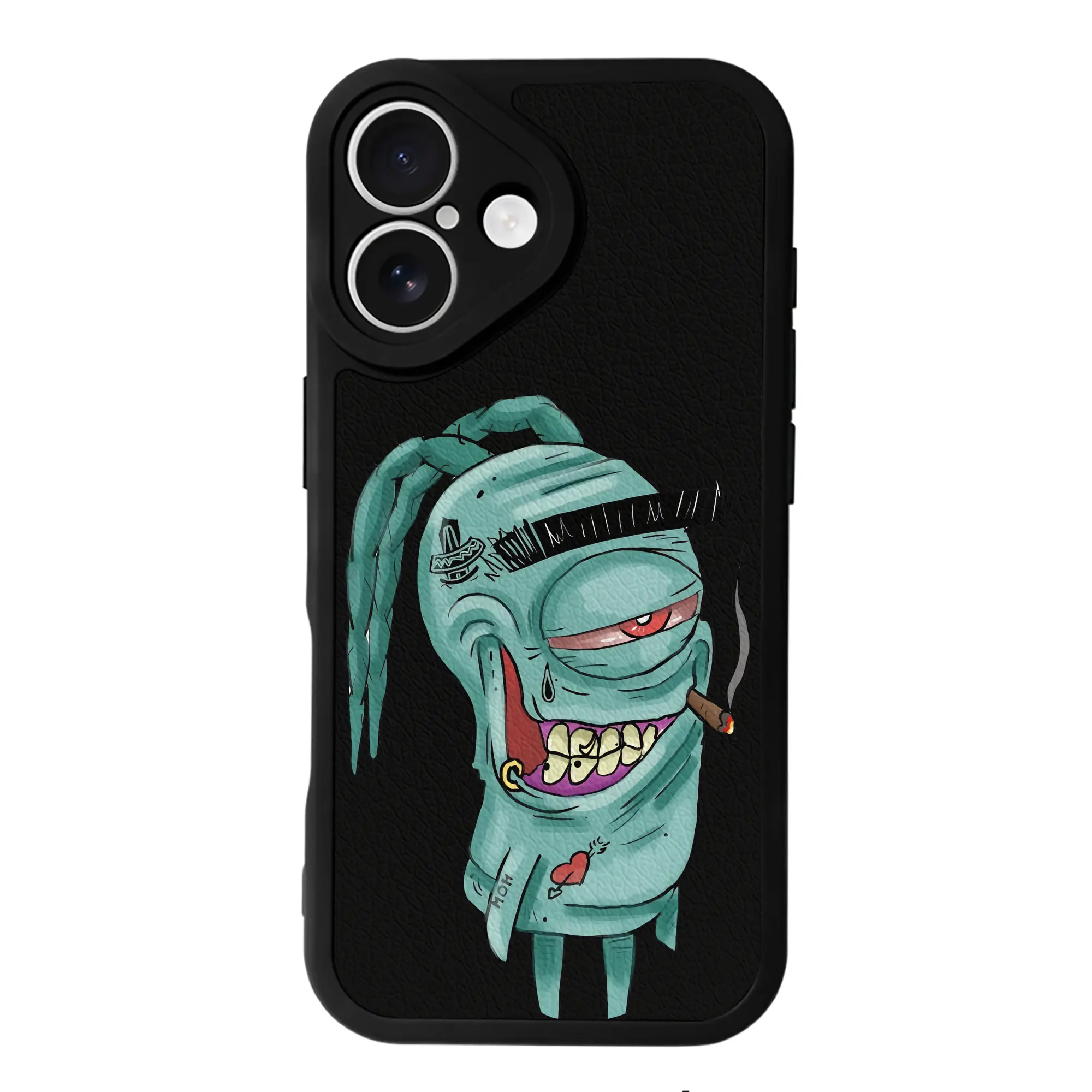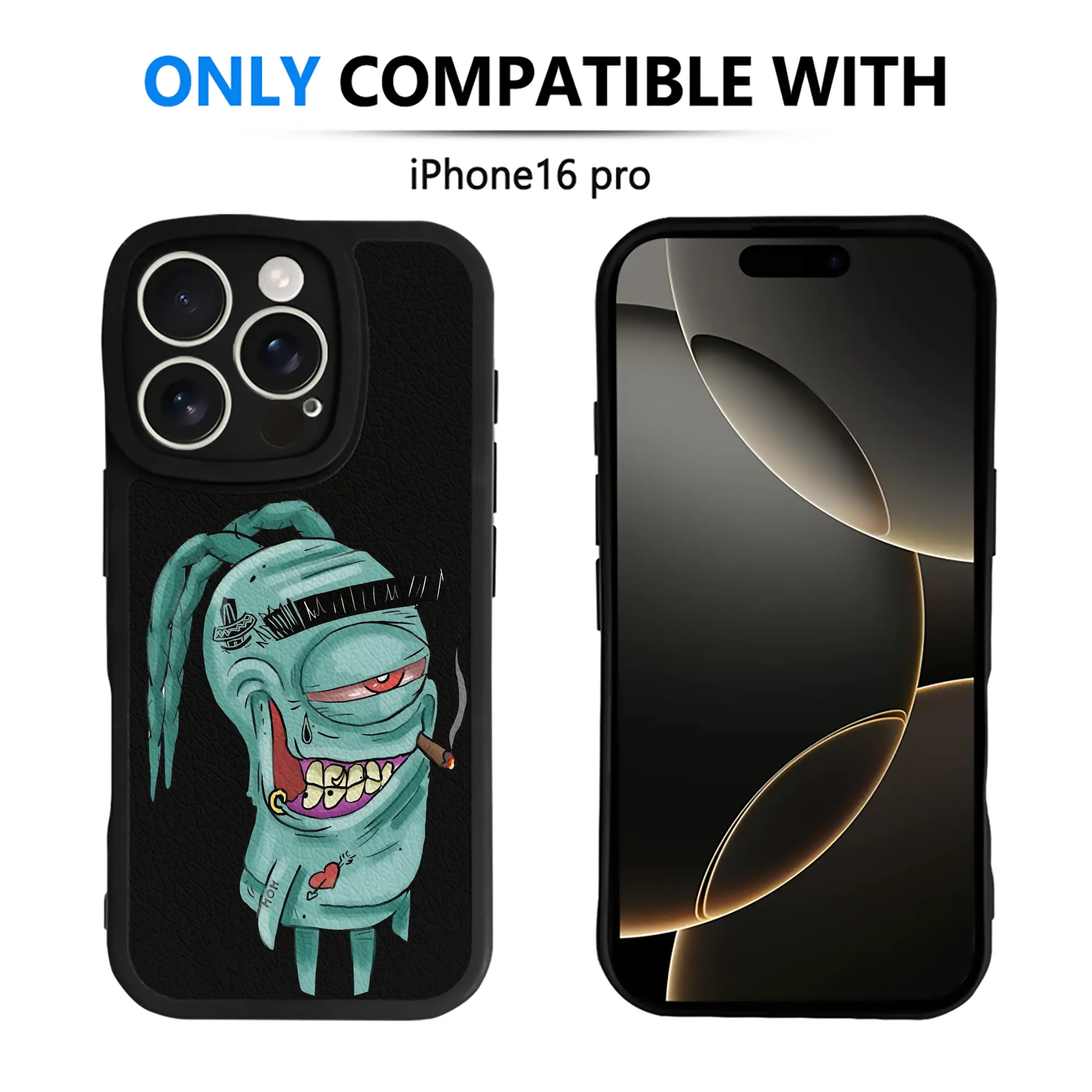 スポンジボブ グッズ プランクトン - IPhone 16シリーズ対応 ・ シリコンスマホケース ・ レザー調 ・ 高精度フィット ・ 耐衝撃 ・ ワイヤレス充電対応 ・ 精密カット