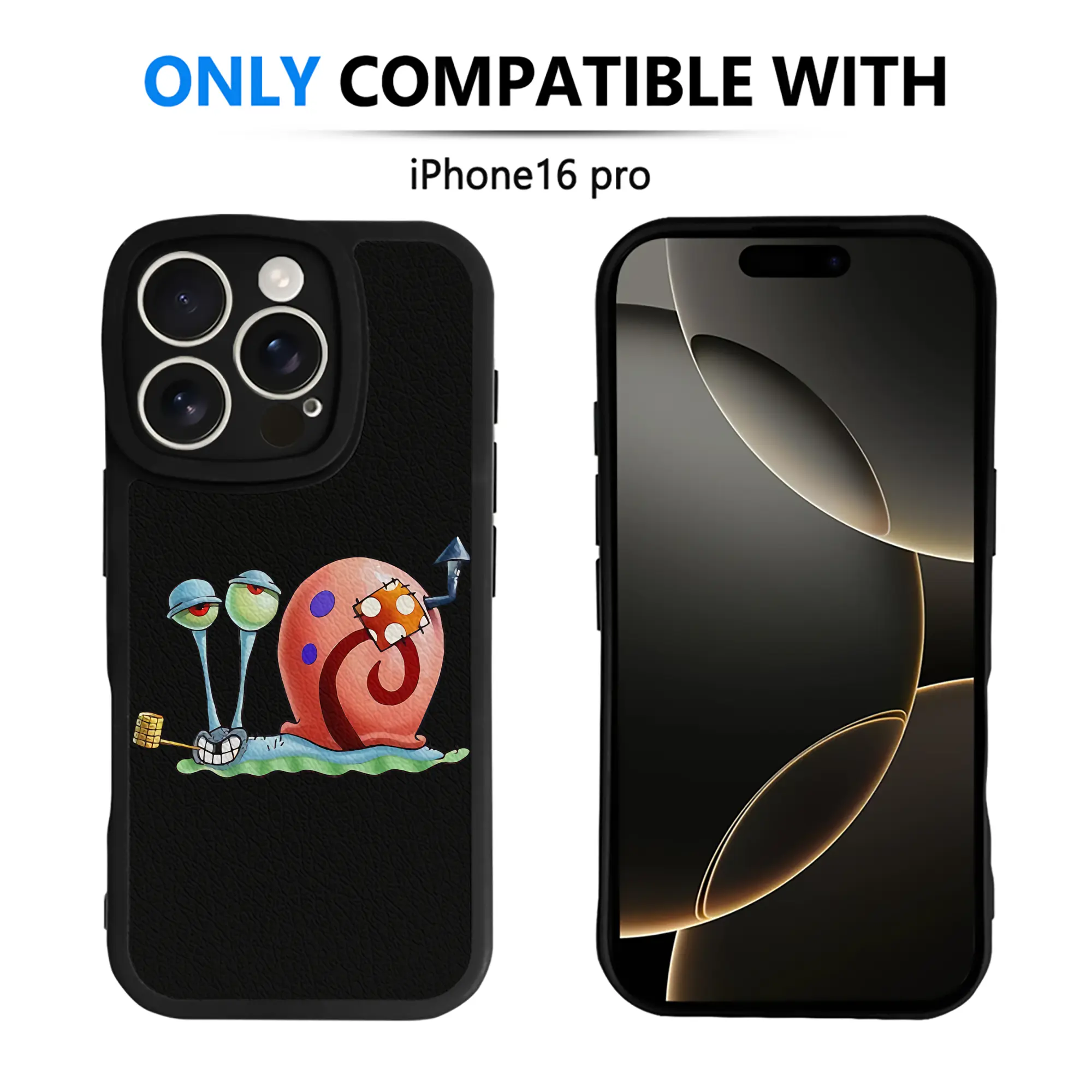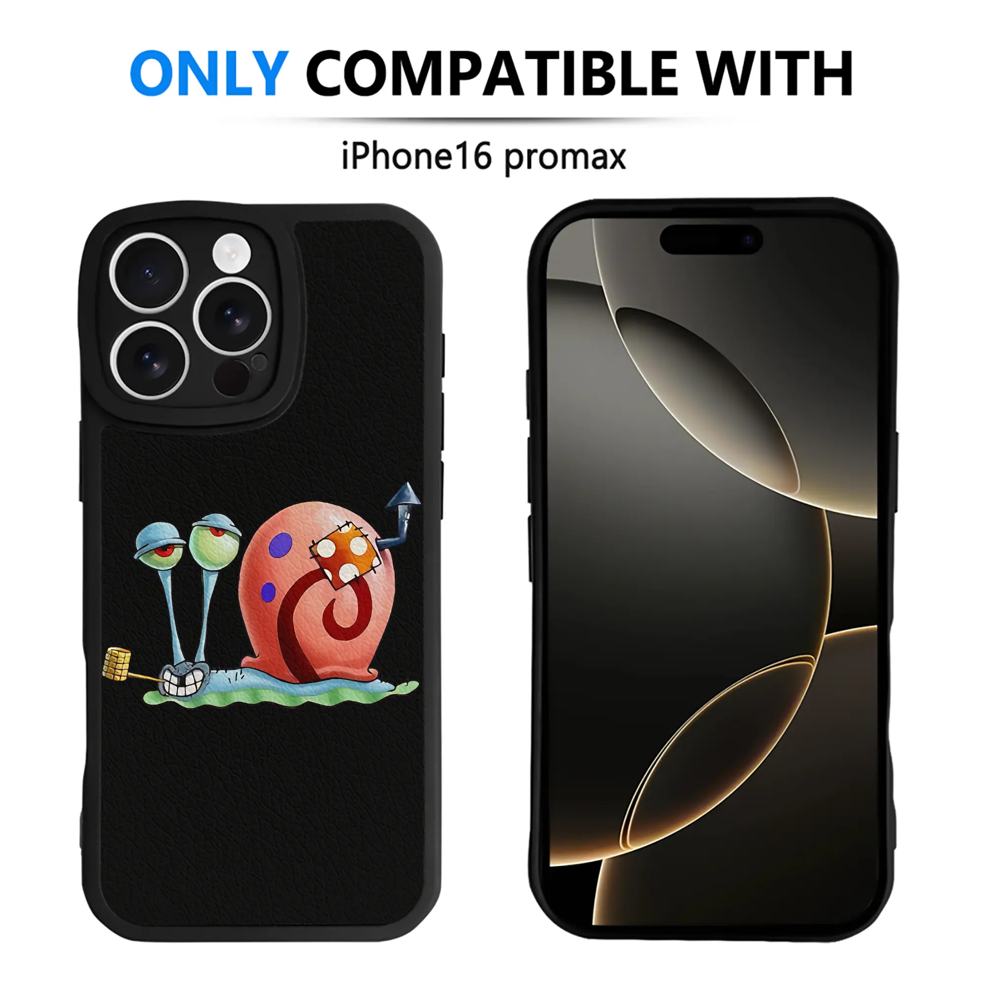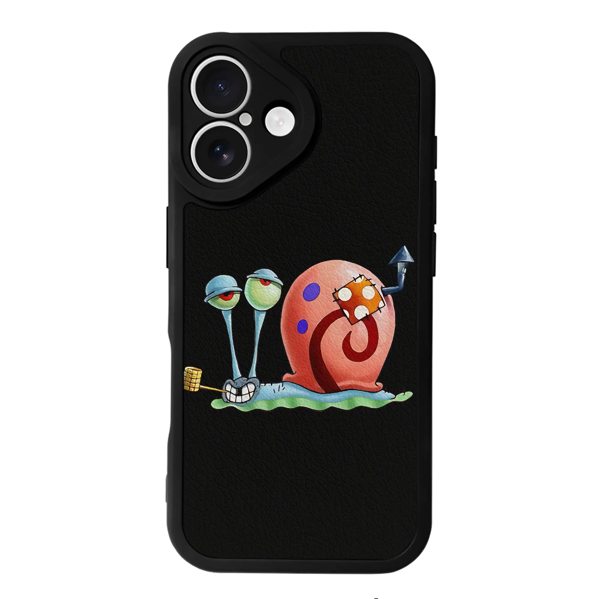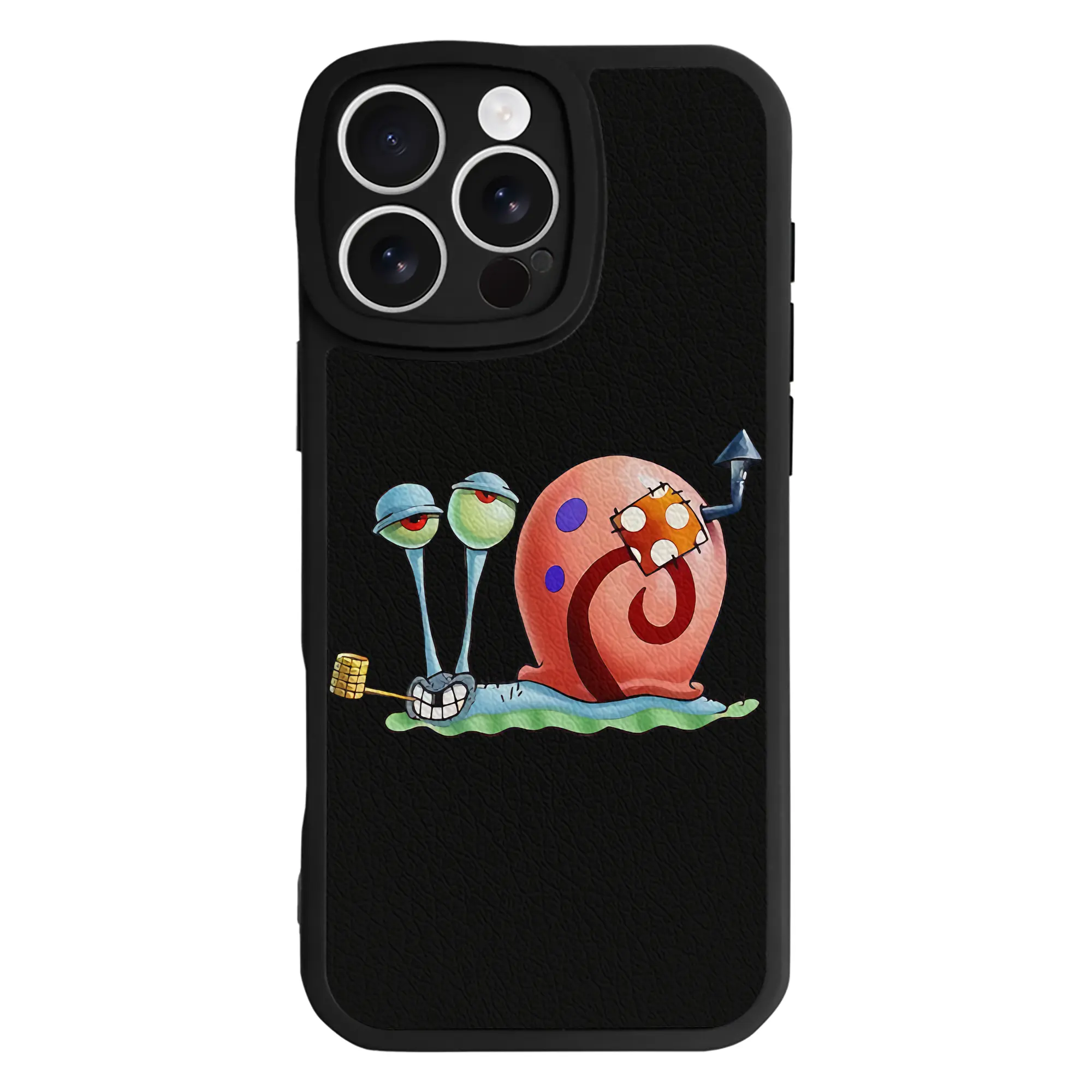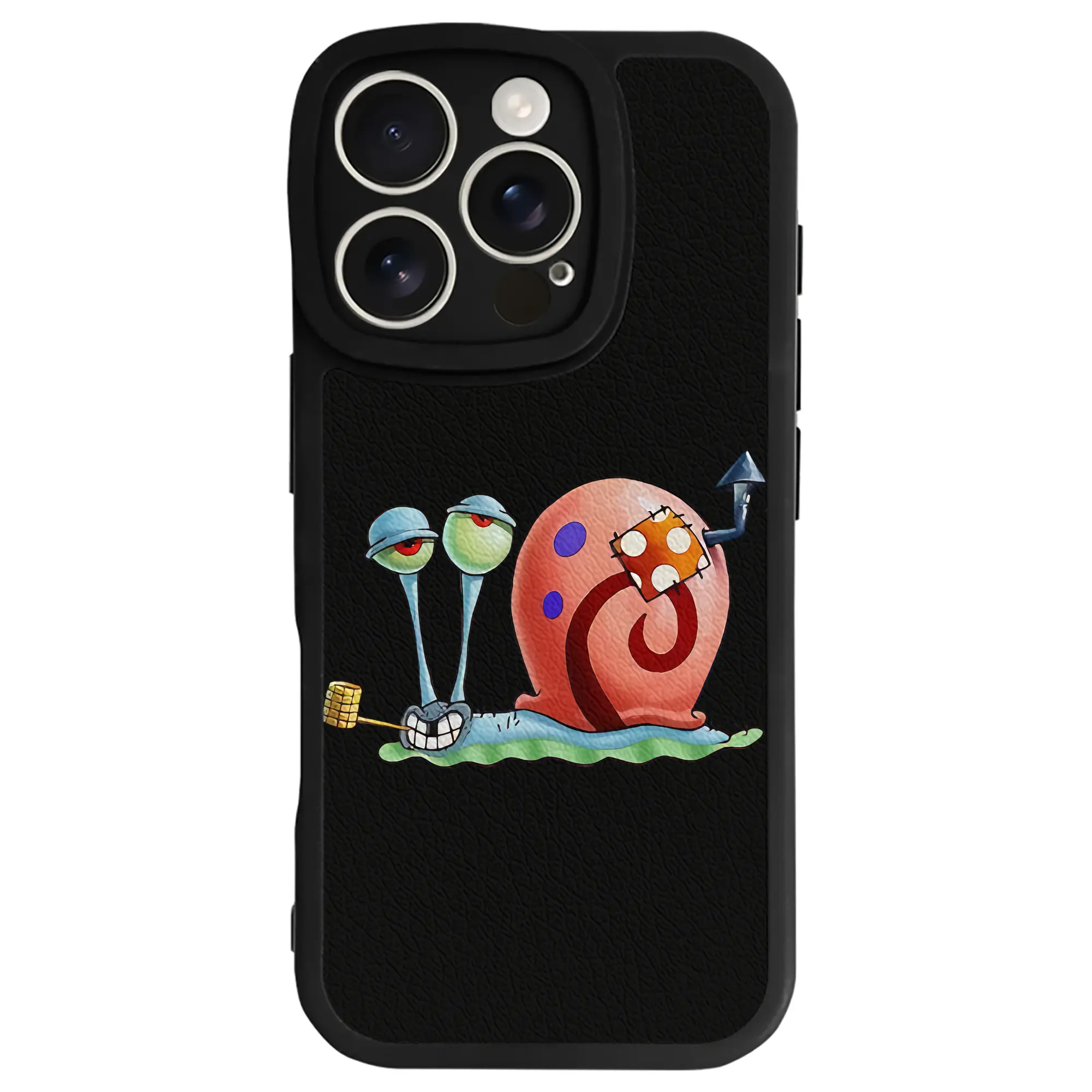 スポンジボブ グッズ カタツムリさん - IPhone 16シリーズ対応 ・ シリコンスマホケース ・ レザー調 ・ 高精度フィット ・ 耐衝撃 ・ ワイヤレス充電対応 ・ 精密カット