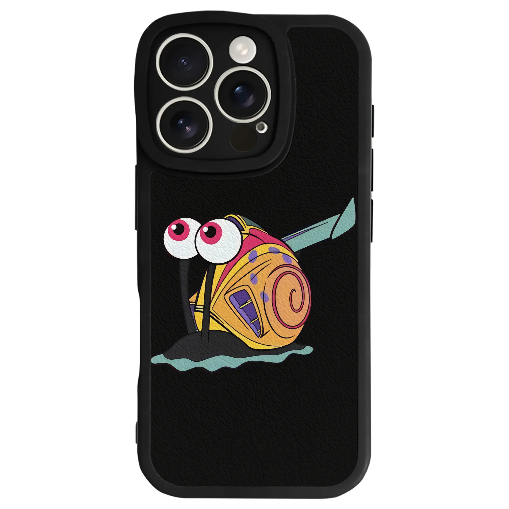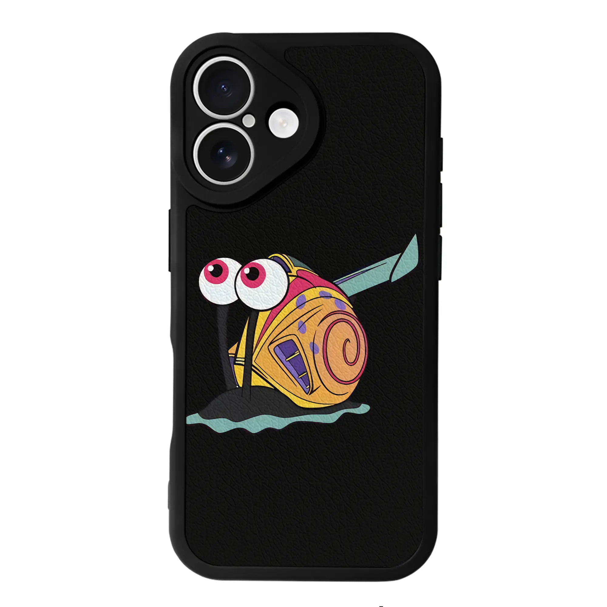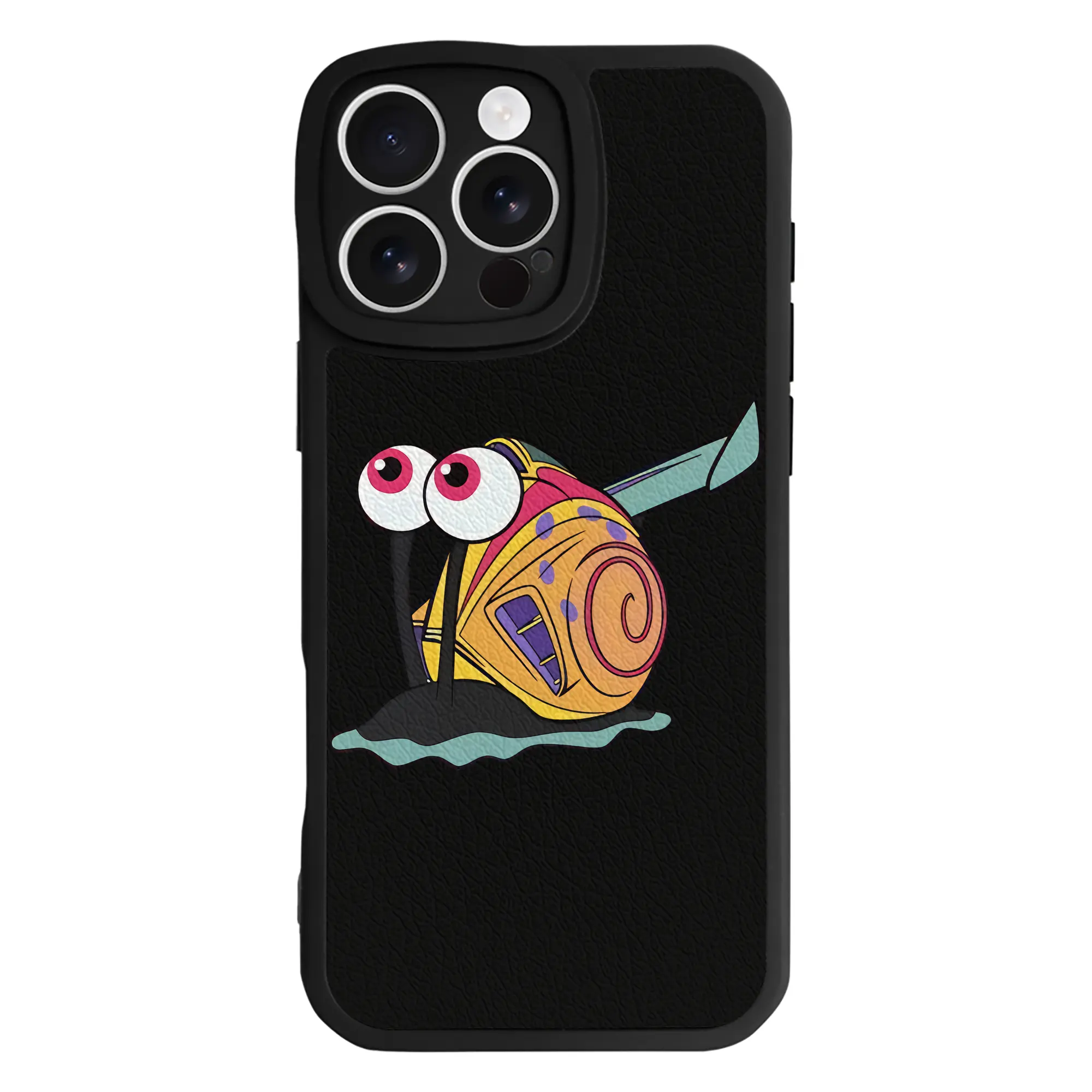 スポンジボブ グッズ カタツムリさん - IPhone 16シリーズ対応 ・ シリコンスマホケース ・ レザー調 ・ 高精度フィット ・ 耐衝撃 ・ ワイヤレス充電対応 ・ 精密カット
