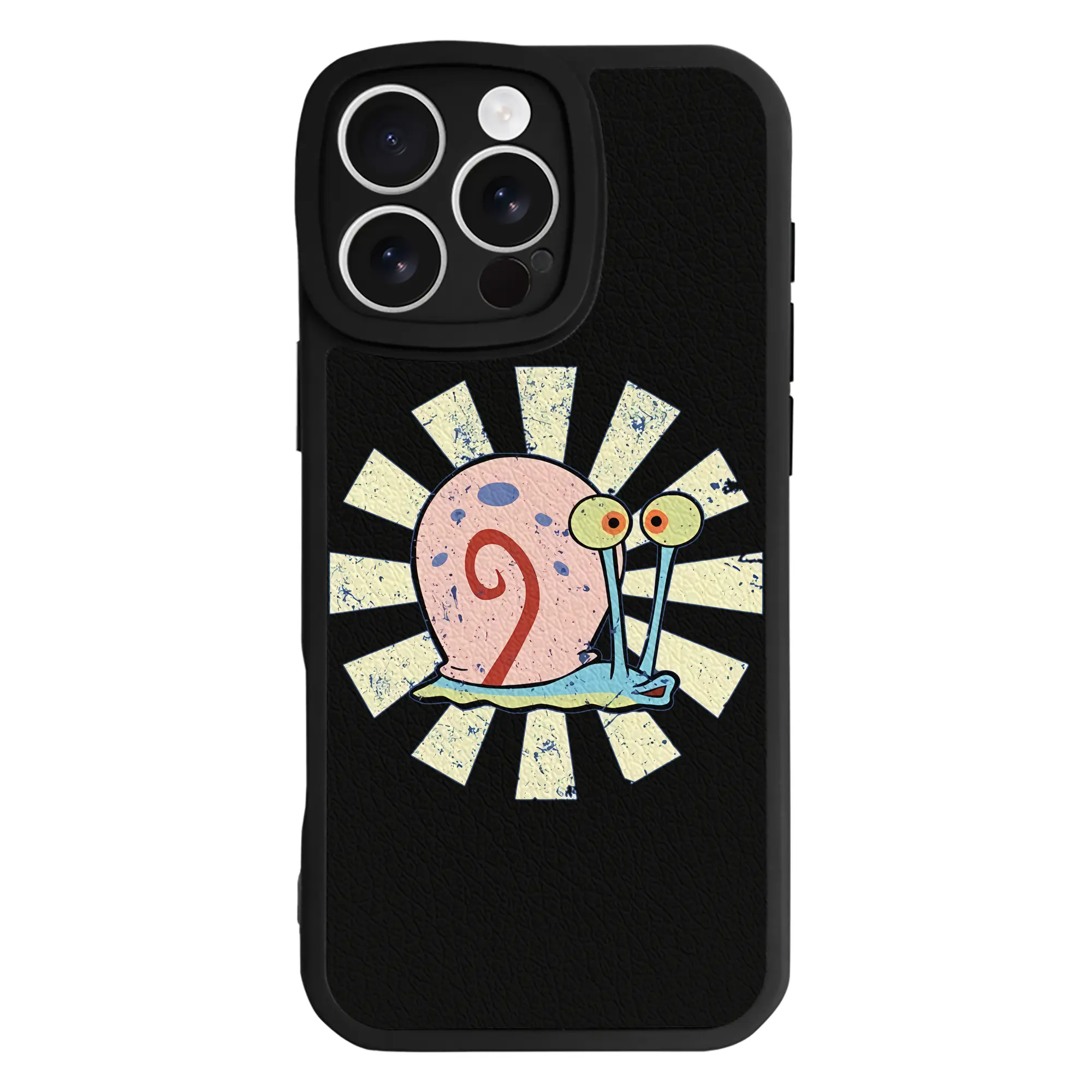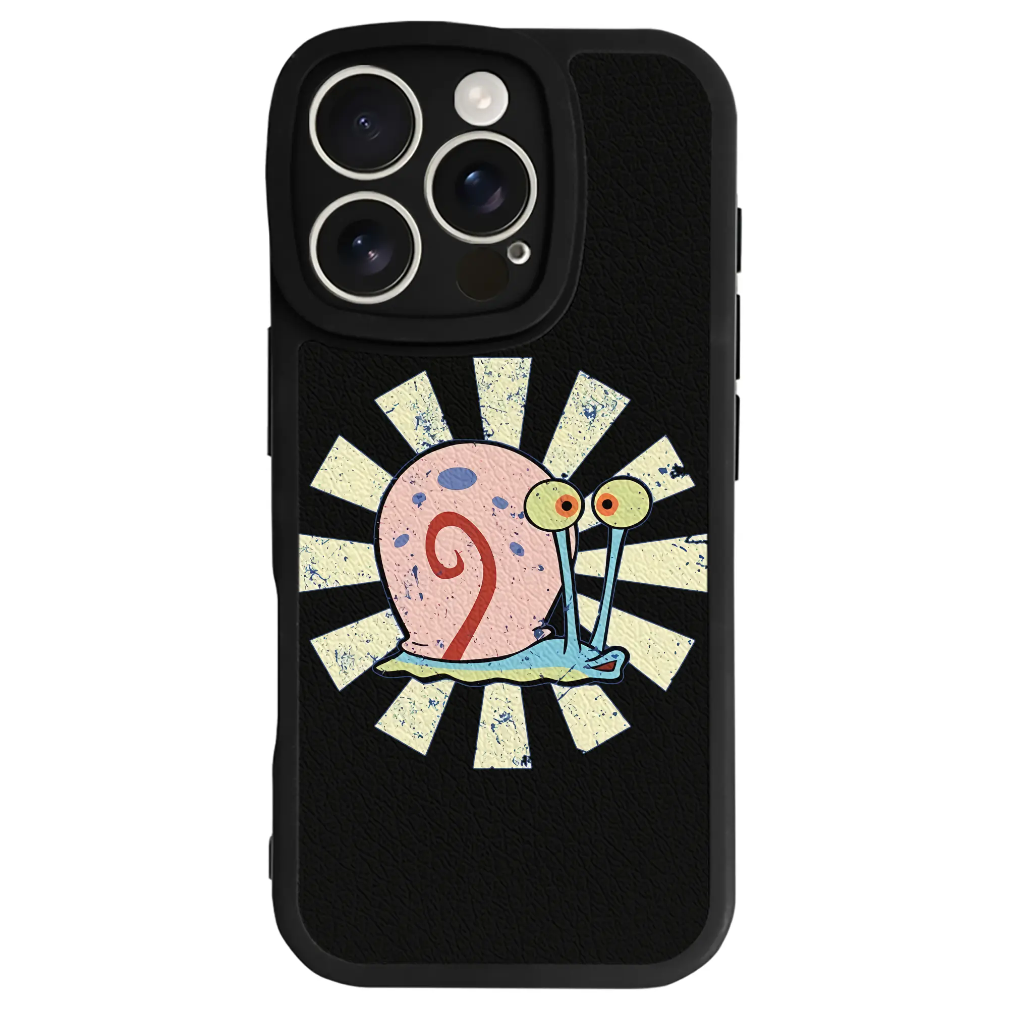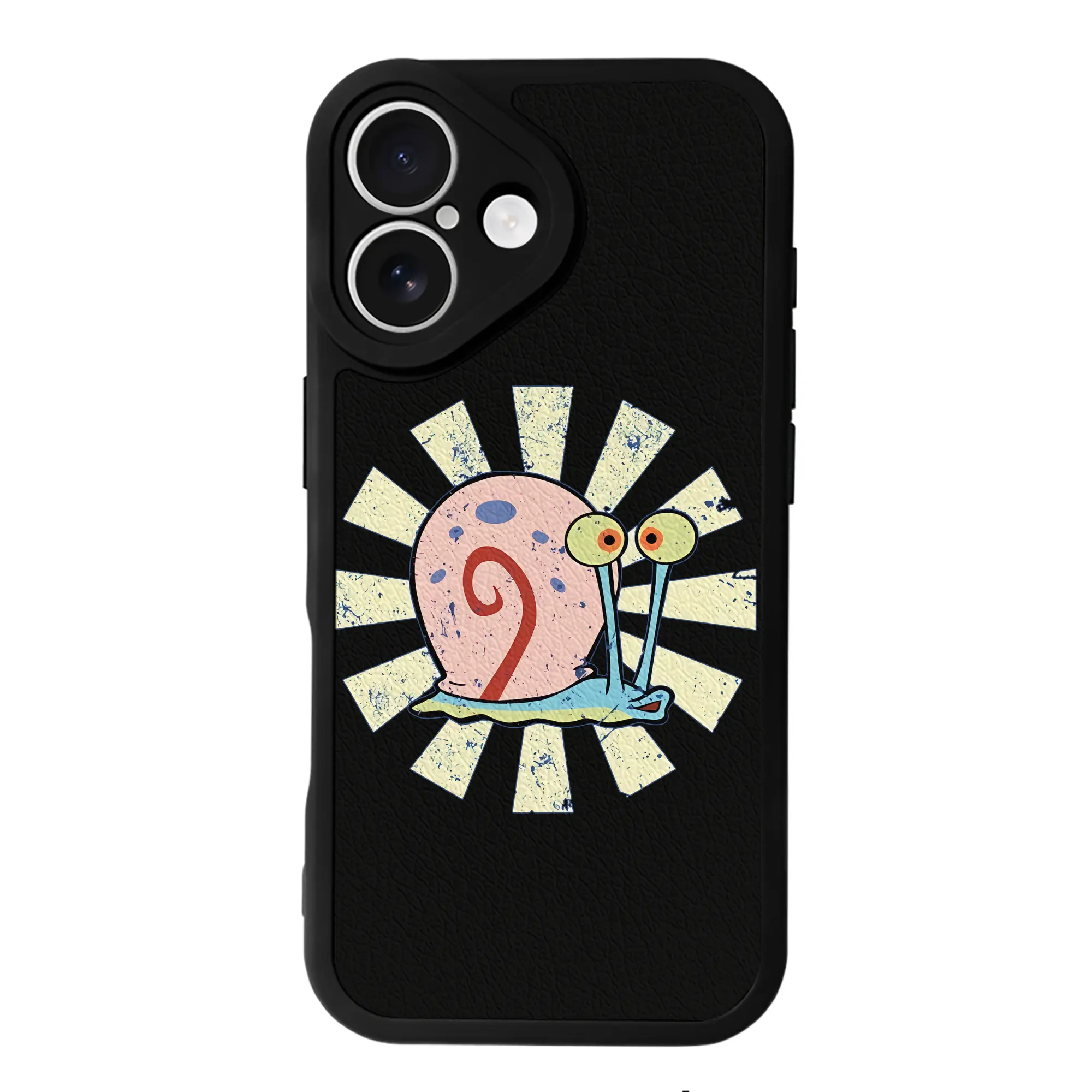 スポンジボブ グッズ カタツムリさん - IPhone 16シリーズ対応 ・ シリコンスマホケース ・ レザー調 ・ 高精度フィット ・ 耐衝撃 ・ ワイヤレス充電対応 ・ 精密カット