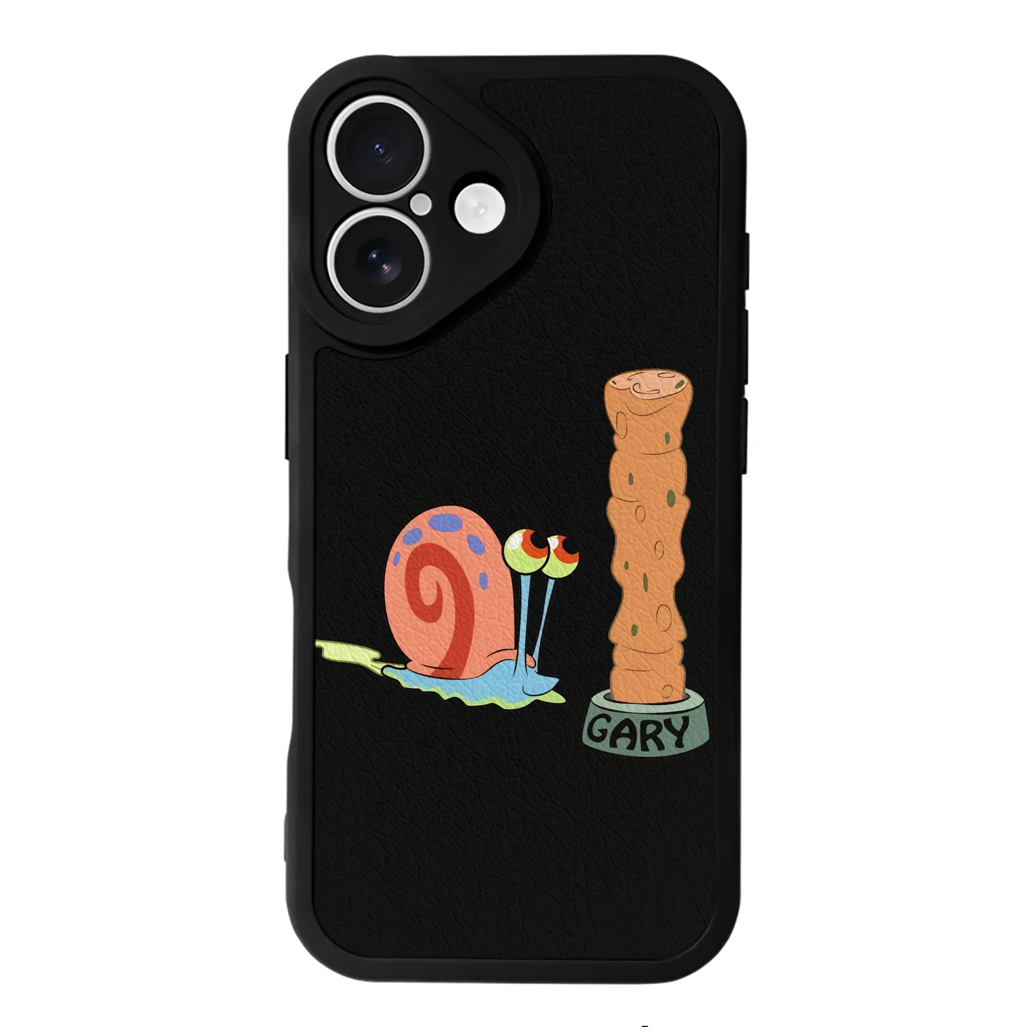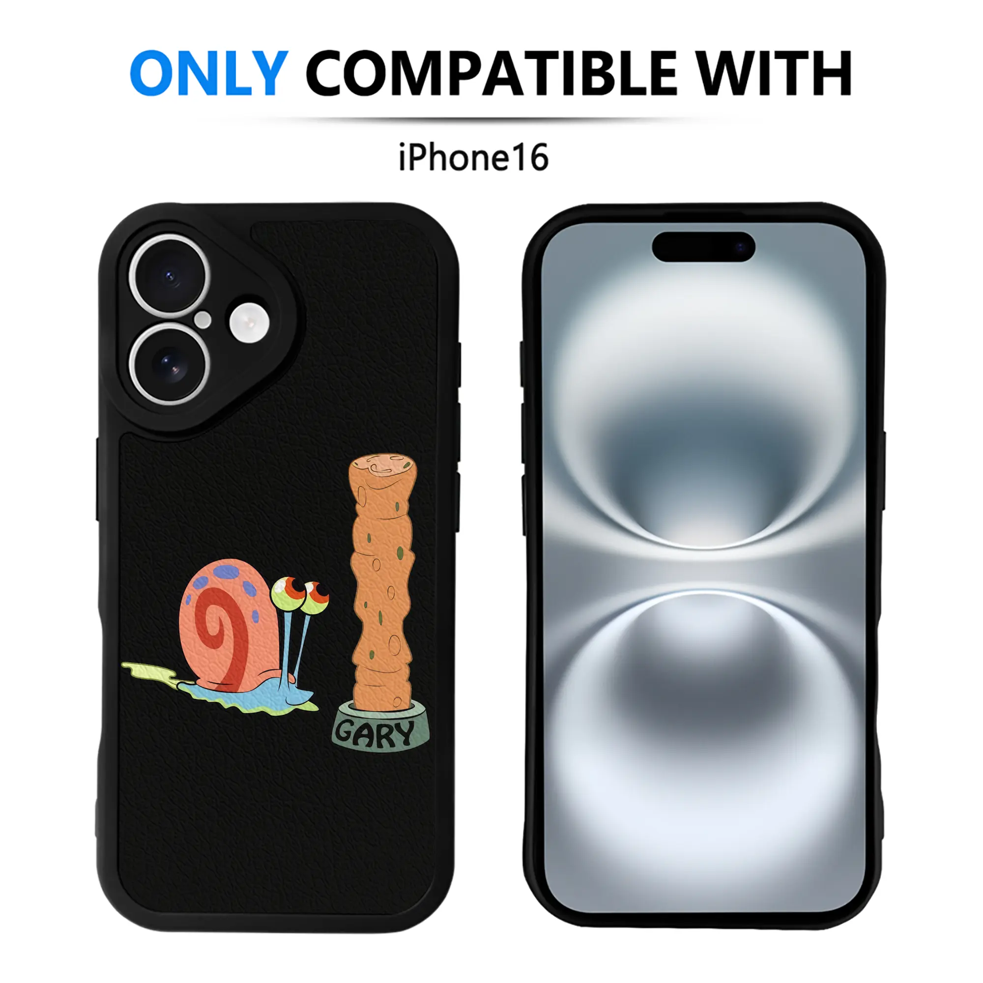 スポンジボブ グッズ カタツムリさん - IPhone 16シリーズ対応 ・ シリコンスマホケース ・ レザー調 ・ 高精度フィット ・ 耐衝撃 ・ ワイヤレス充電対応 ・ 精密カット