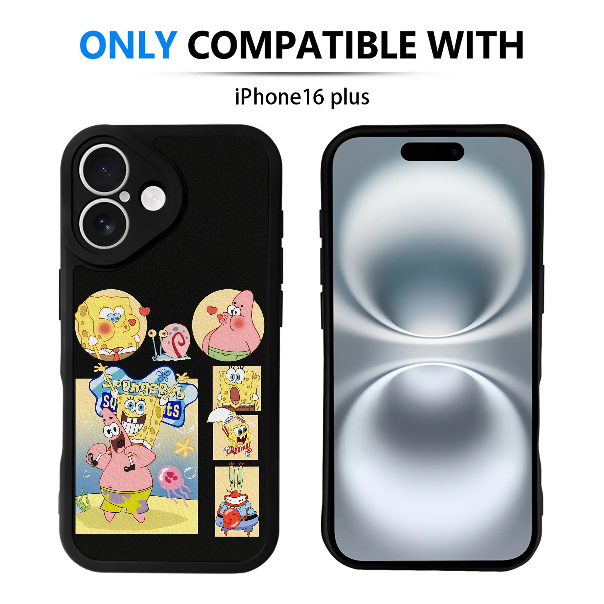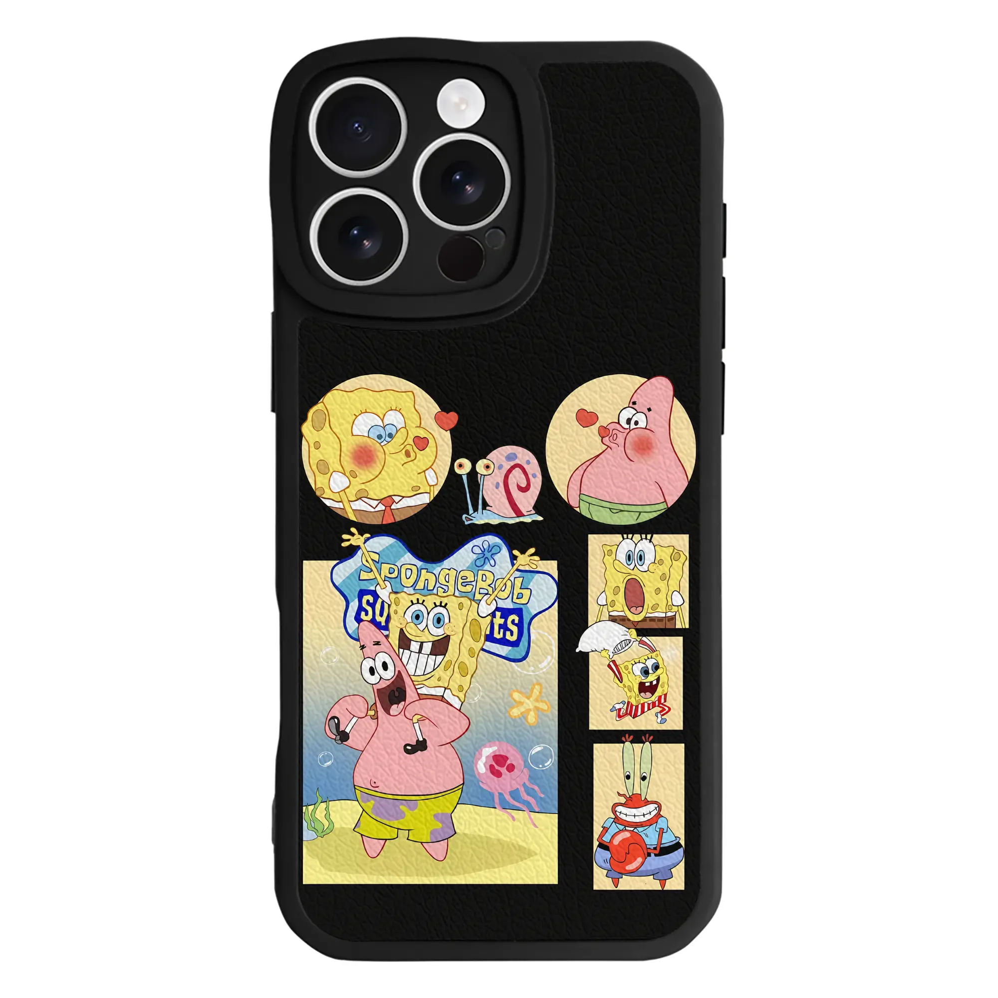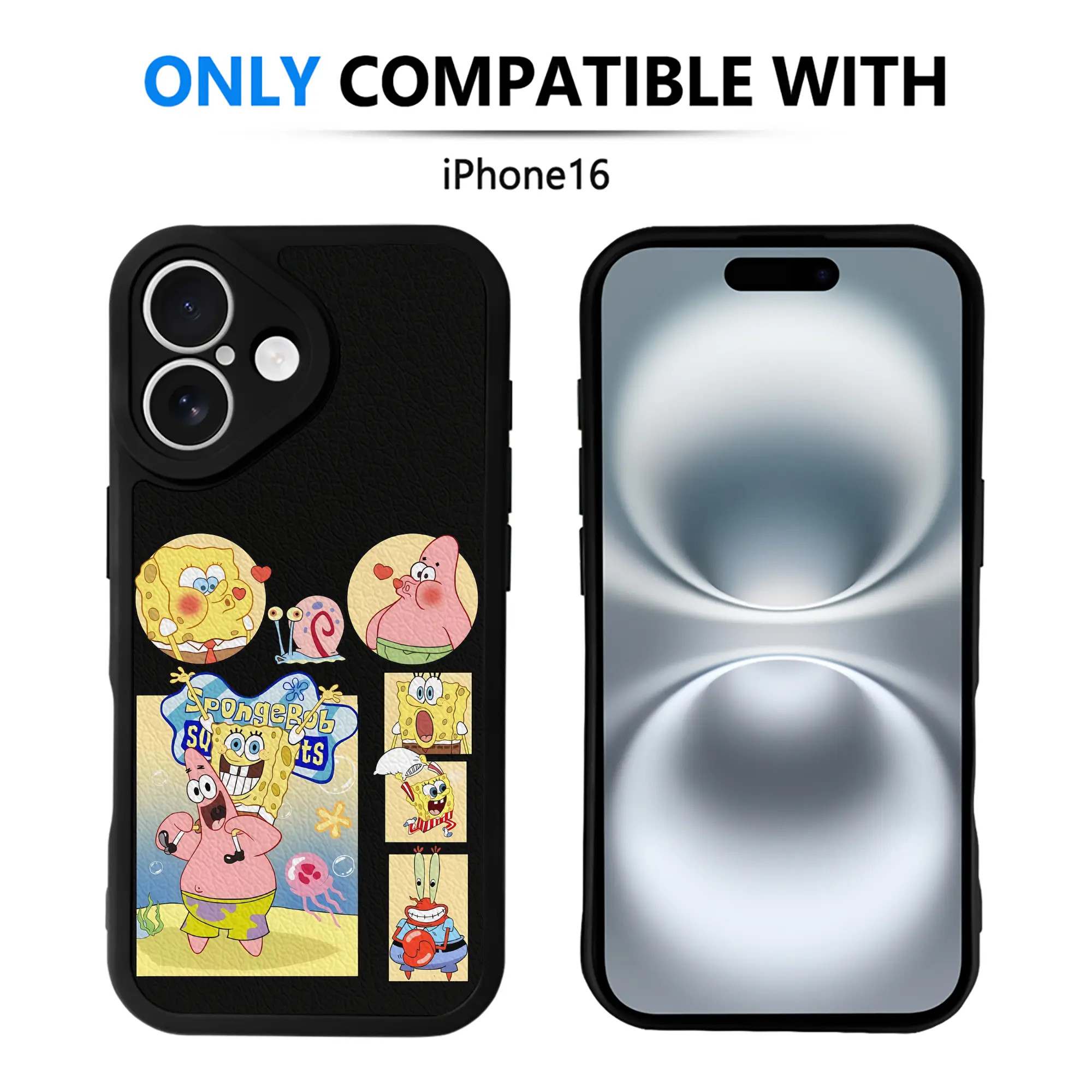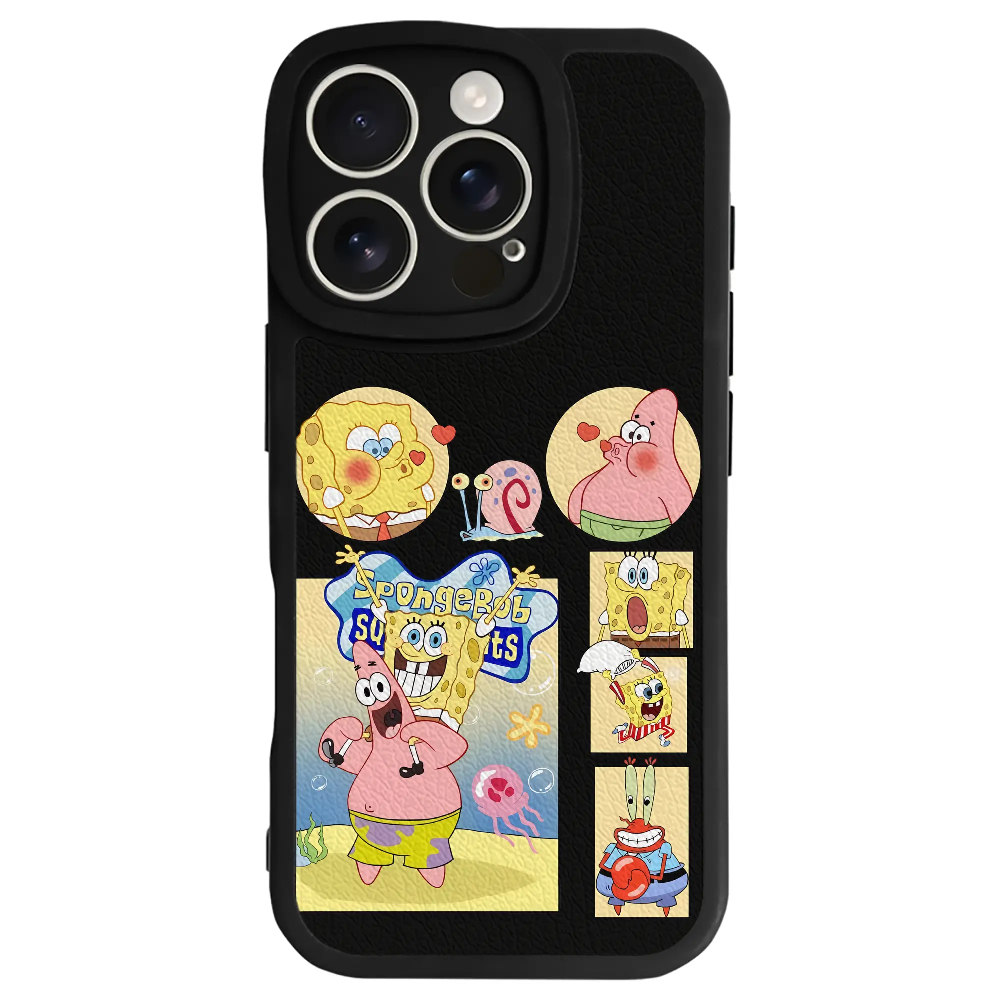 スポンジボブ グッズ パトリック・スター - IPhone 16シリーズ対応 ・ シリコンスマホケース ・ レザー調 ・ 高精度フィット ・ 耐衝撃 ・ ワイヤレス充電対応 ・ 精密カット