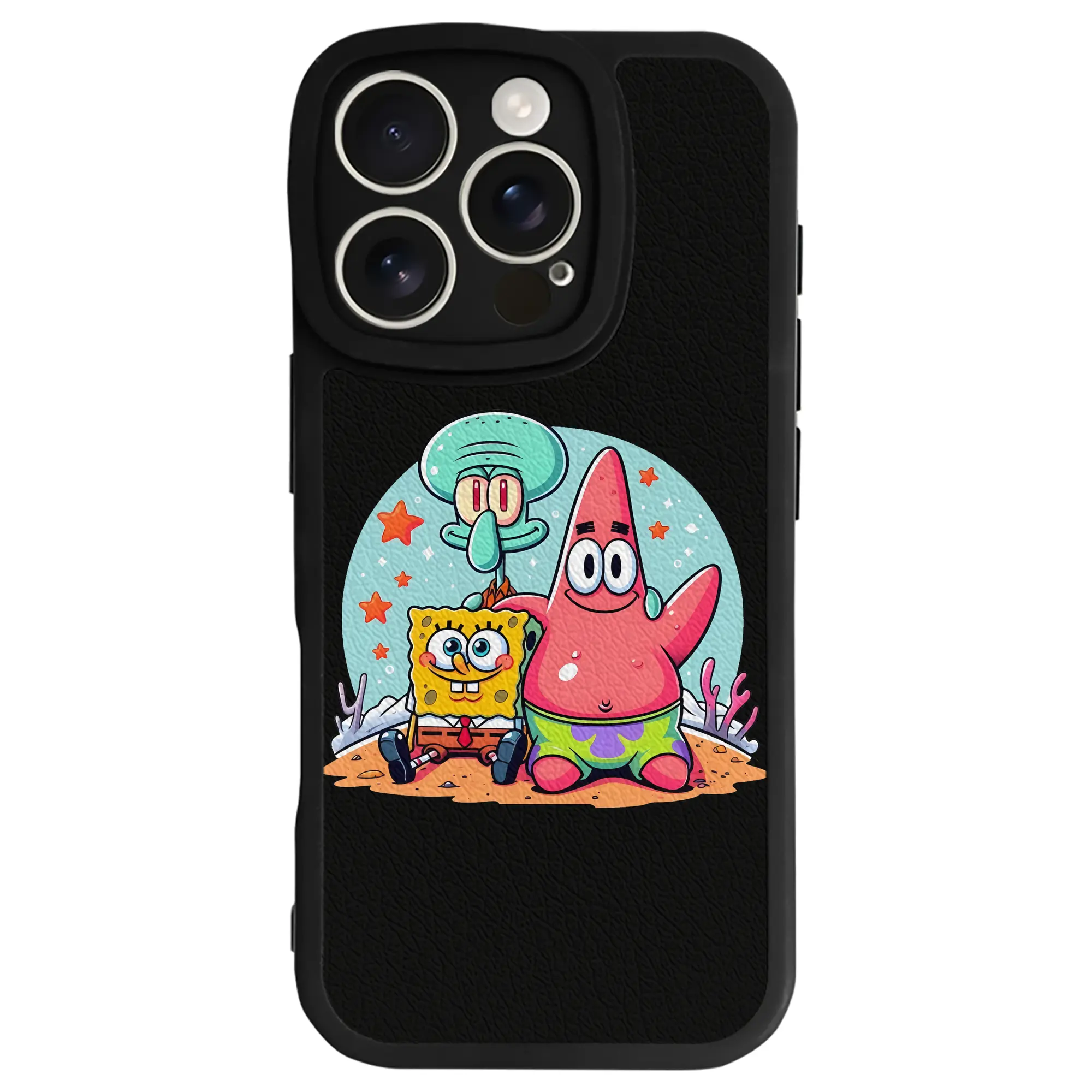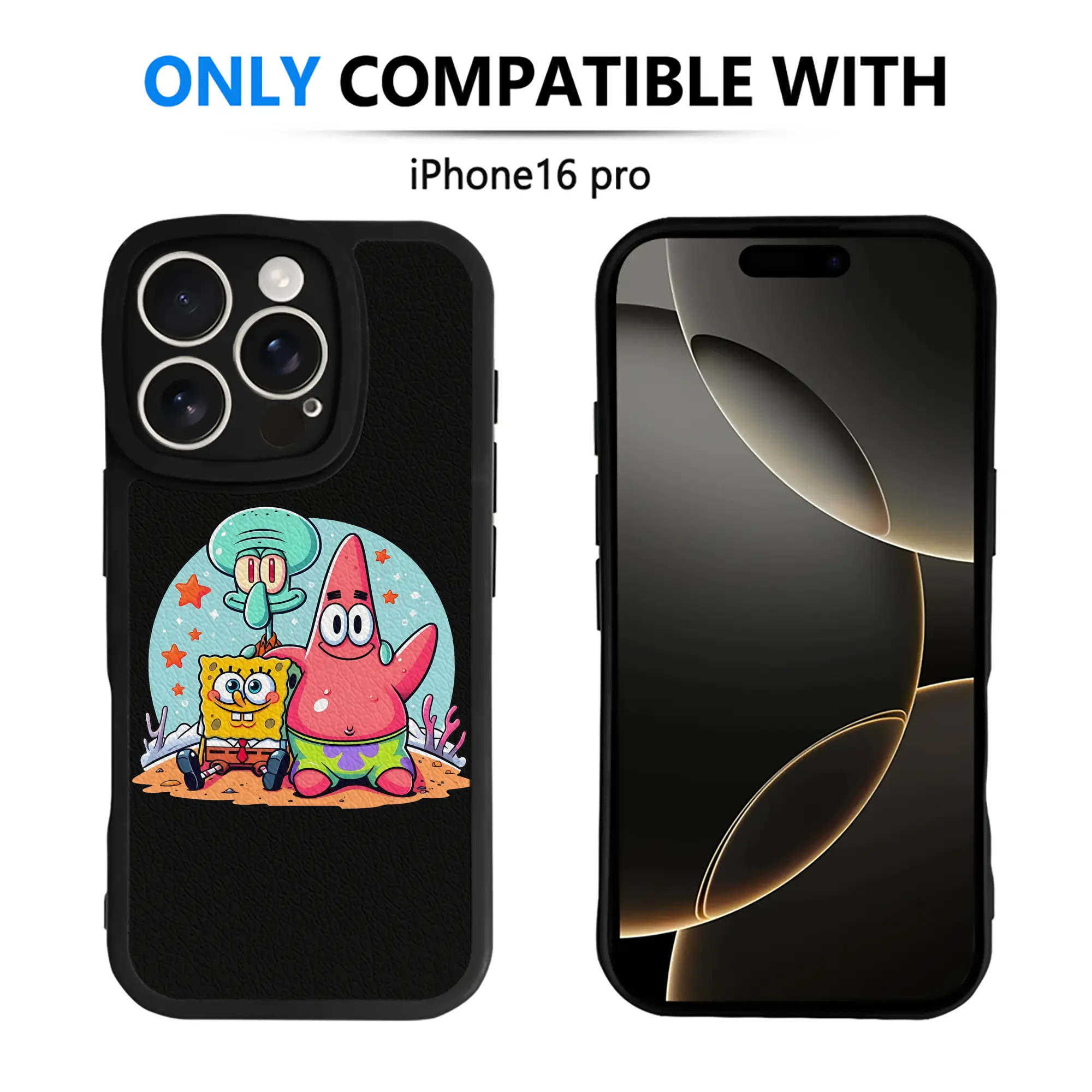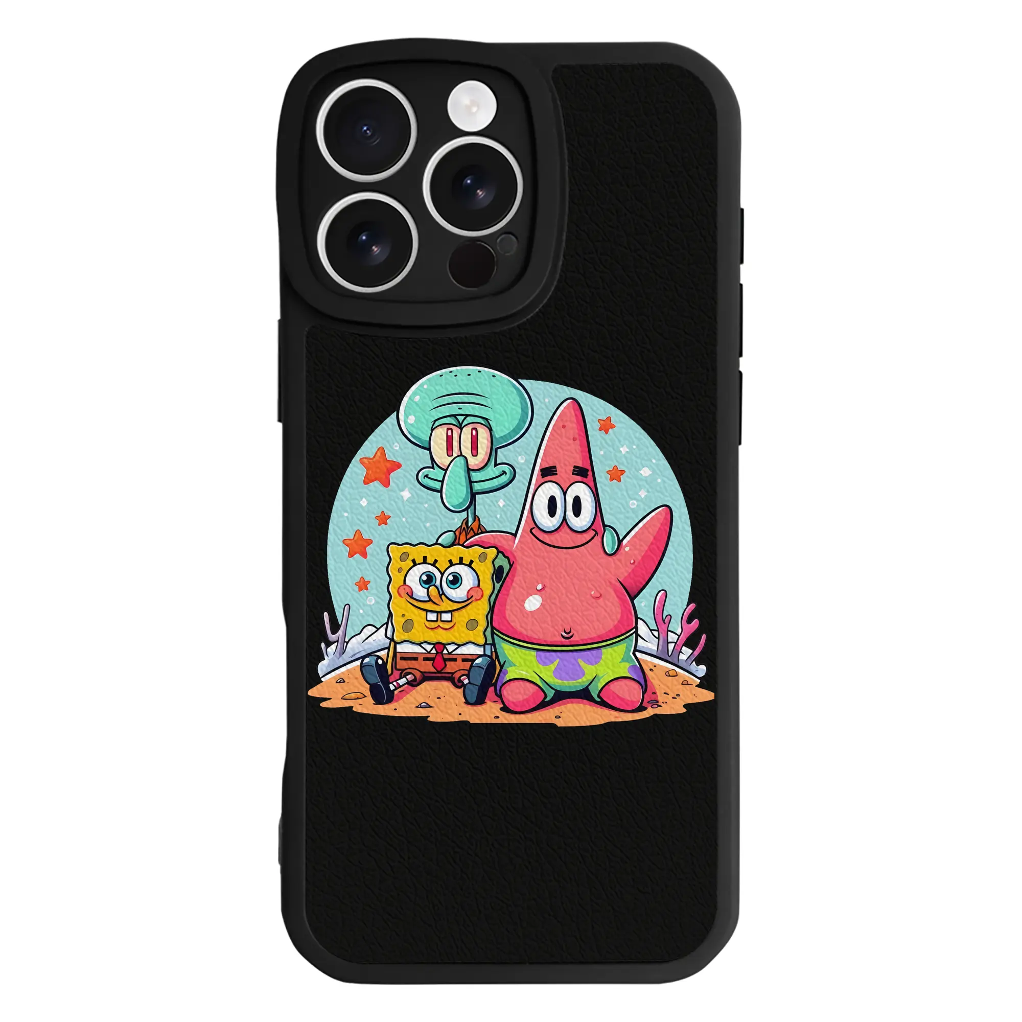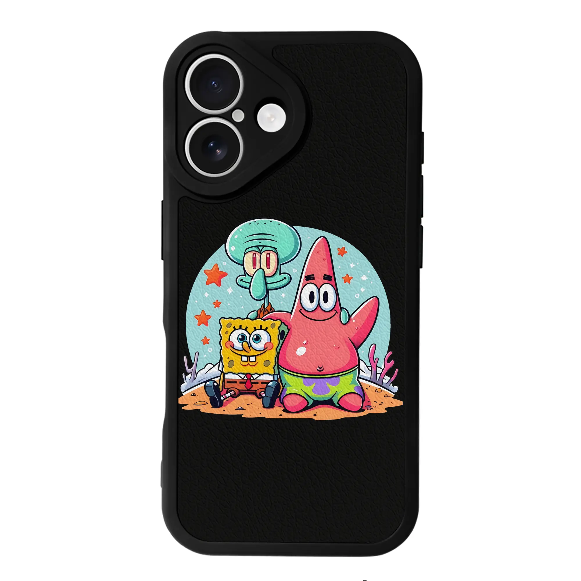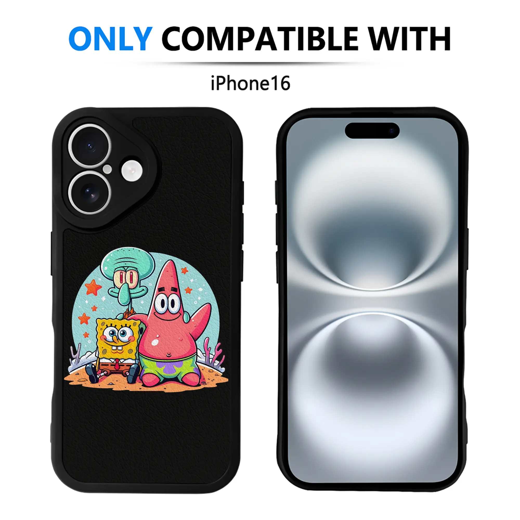 スポンジボブ グッズ パトリック・スター - IPhone 16シリーズ対応 ・ シリコンスマホケース ・ レザー調 ・ 高精度フィット ・ 耐衝撃 ・ ワイヤレス充電対応 ・ 精密カット