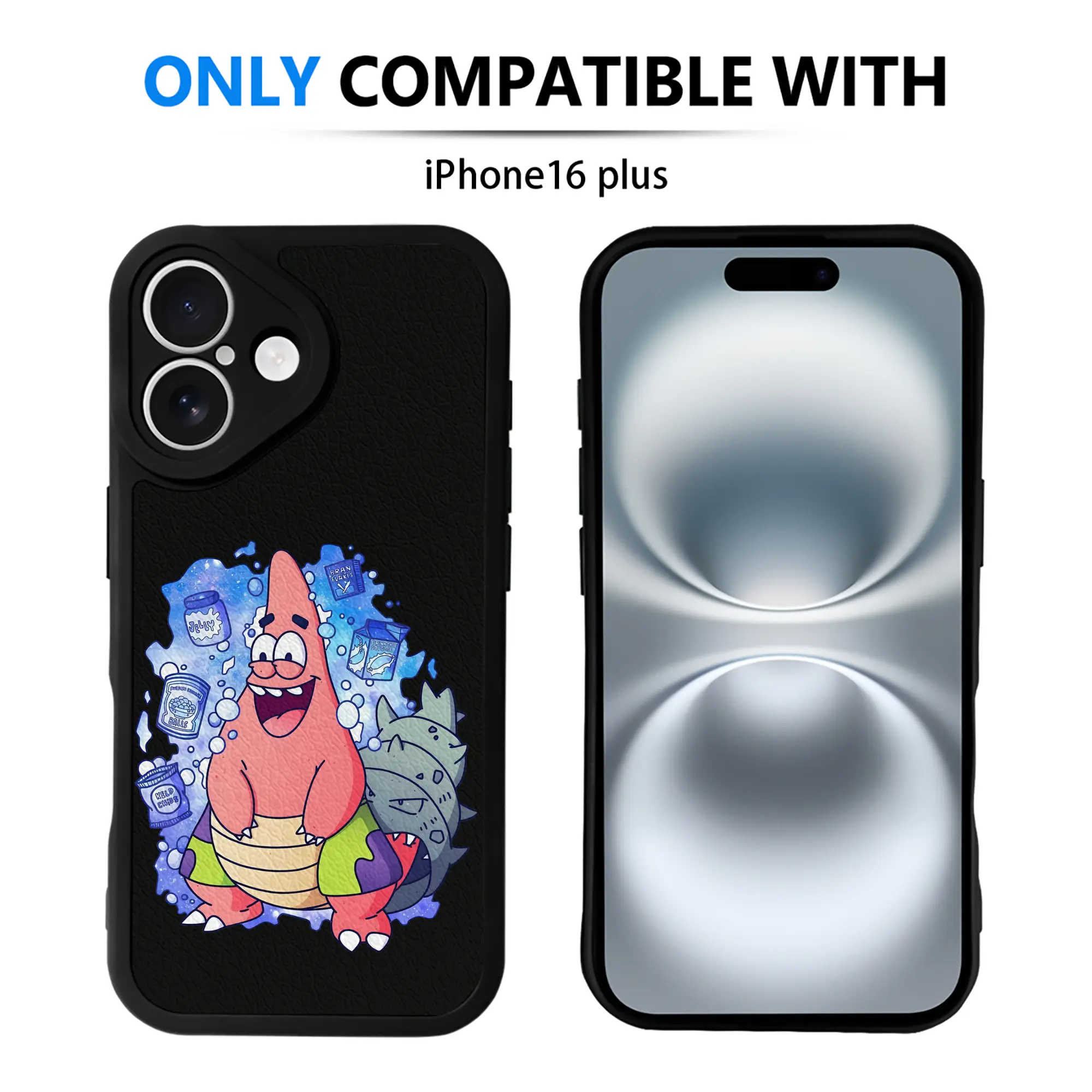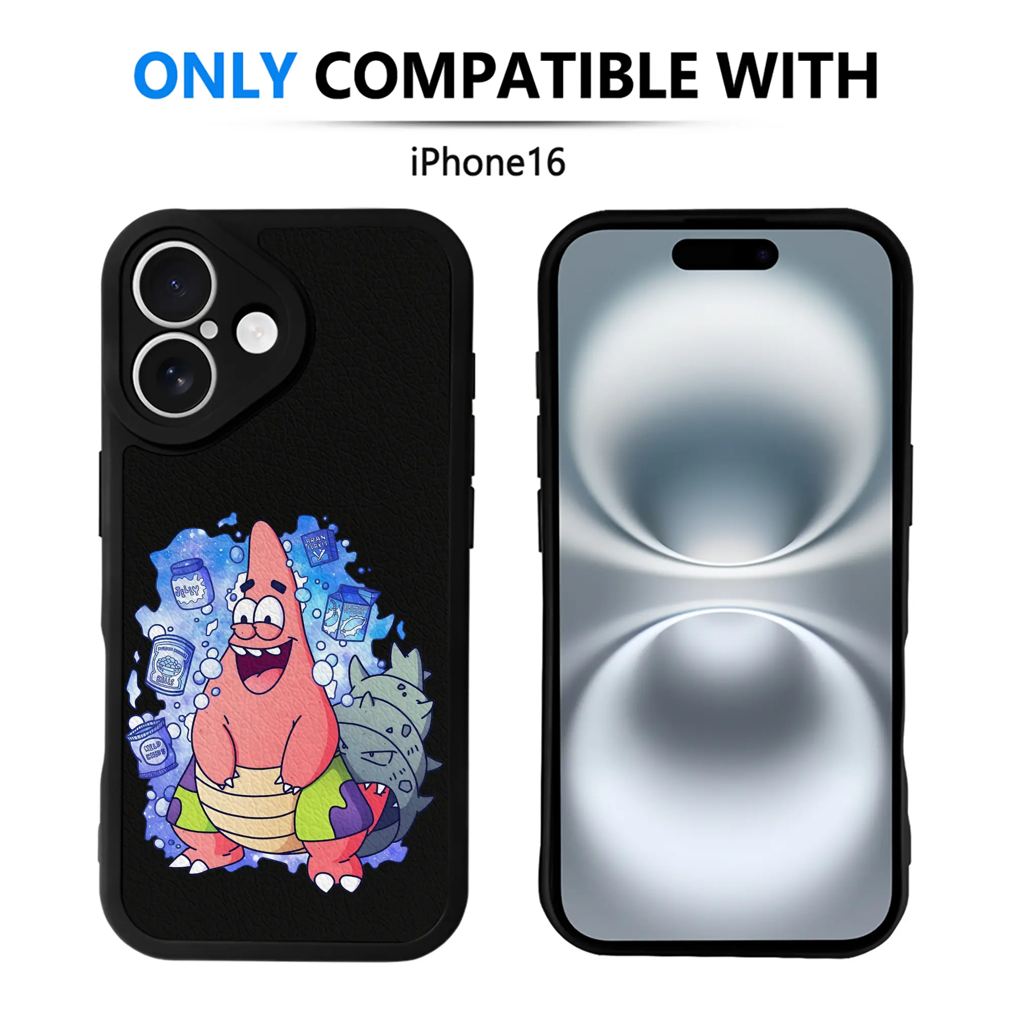スポンジボブ グッズ パトリック・スター - IPhone 16シリーズ対応 ・ シリコンスマホケース ・ レザー調 ・ 高精度フィット ・ 耐衝撃 ・ ワイヤレス充電対応 ・ 精密カット