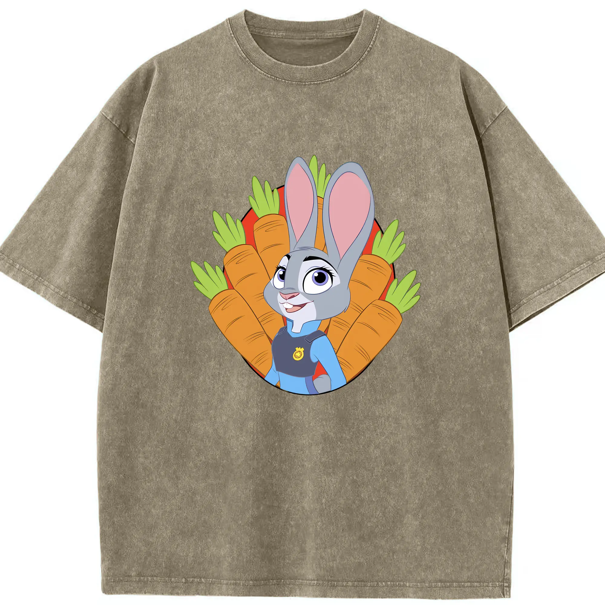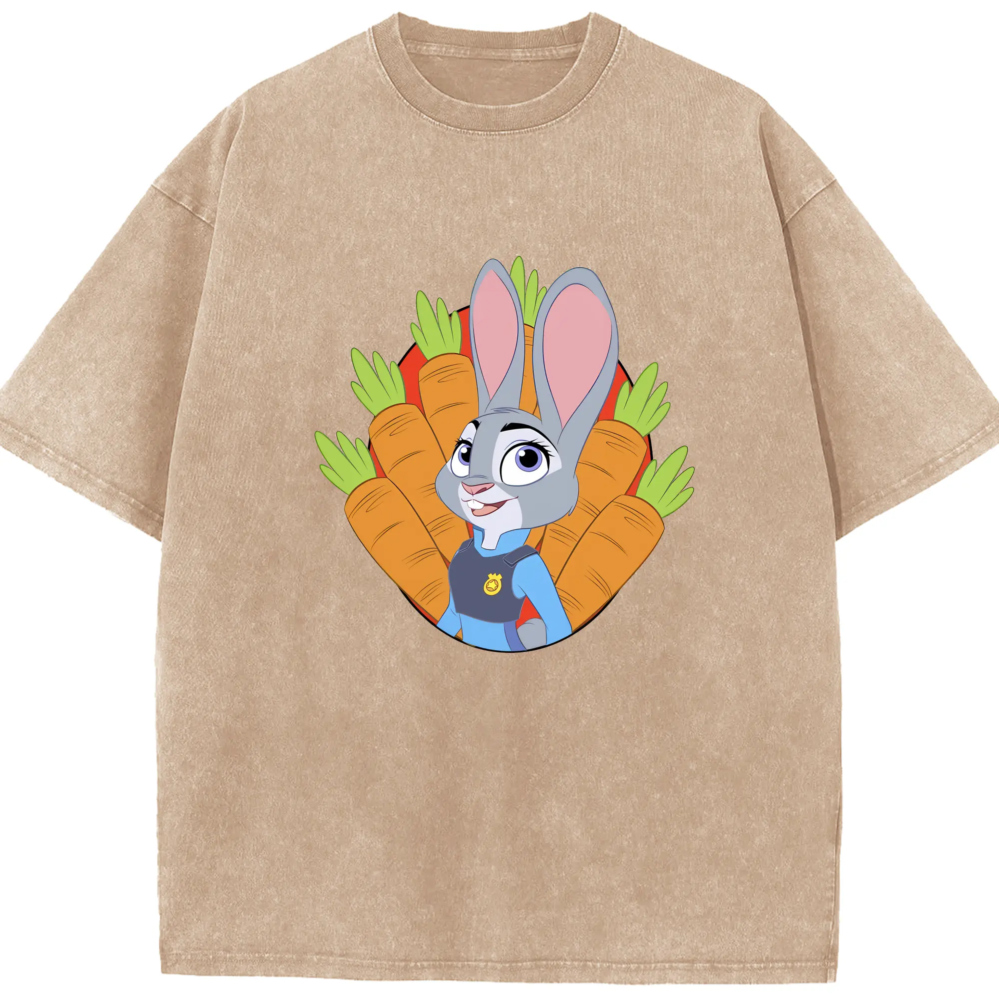 ズートピア グッズ,ジュディ・ホップス - 綿100% ヴィンテージ風 半袖Tシャツ ・ 背面プリント ・ 柔らか肌触り ・ 通気性 快適 ・ スポーツ カジュアル 外出用