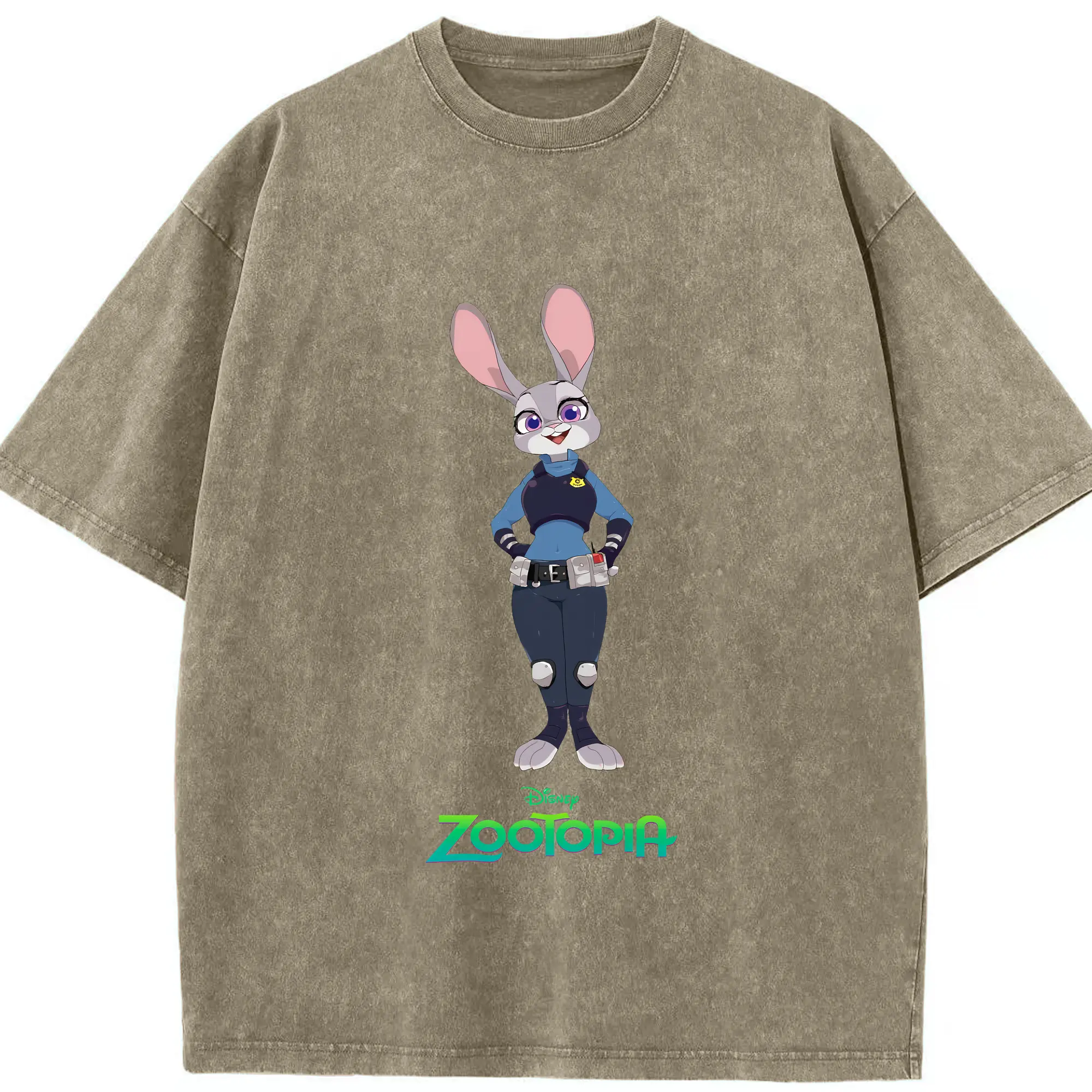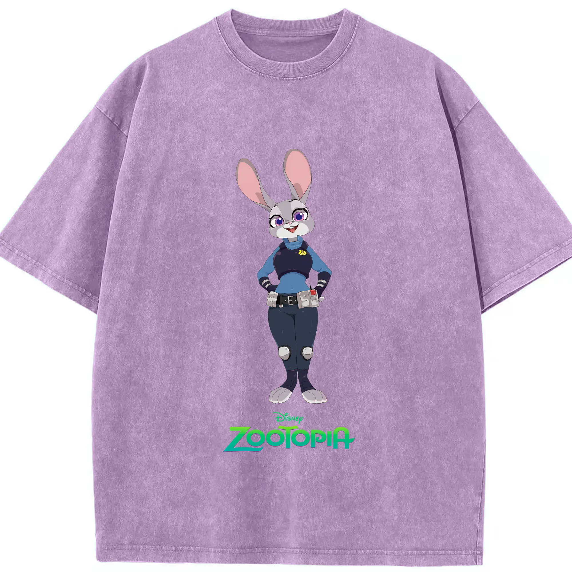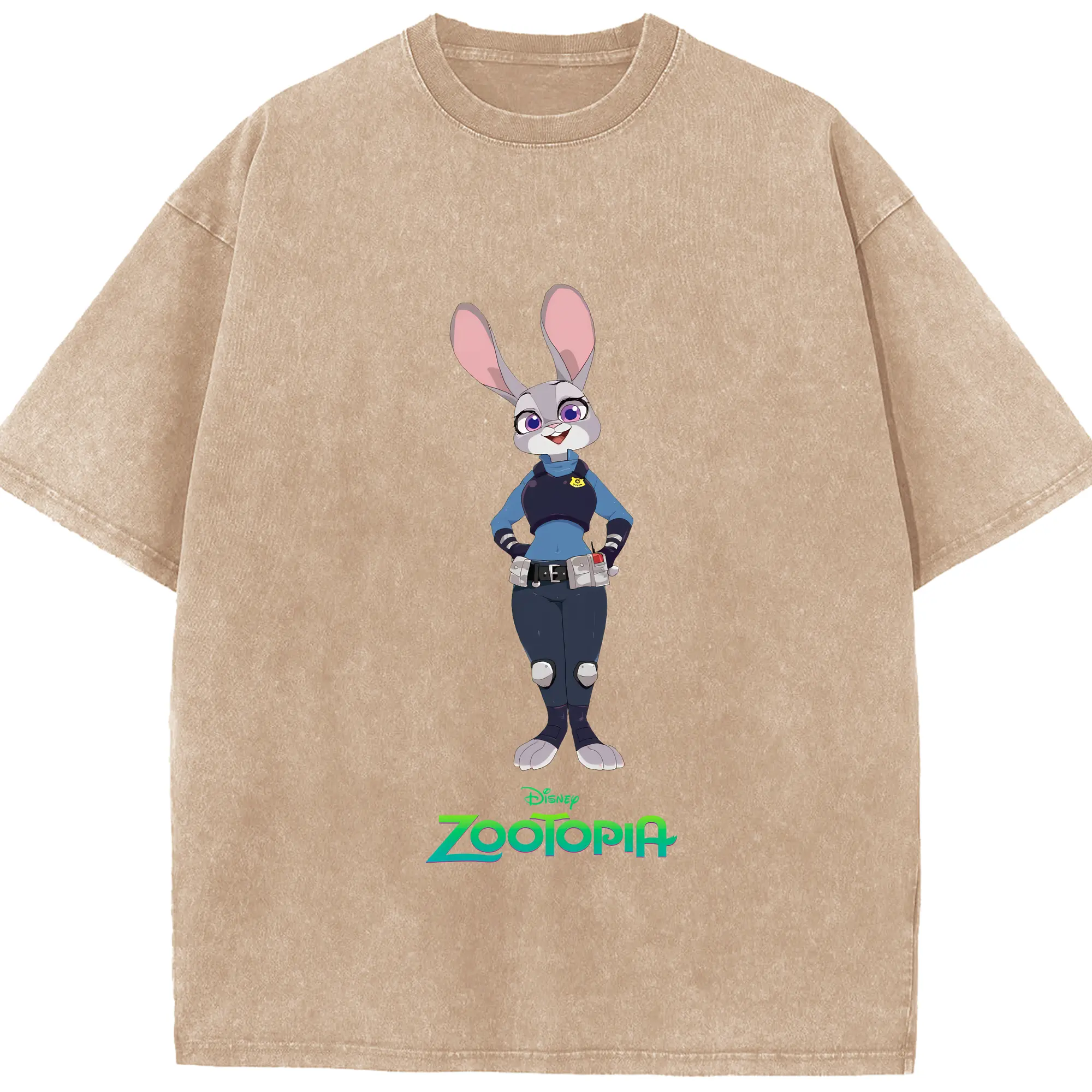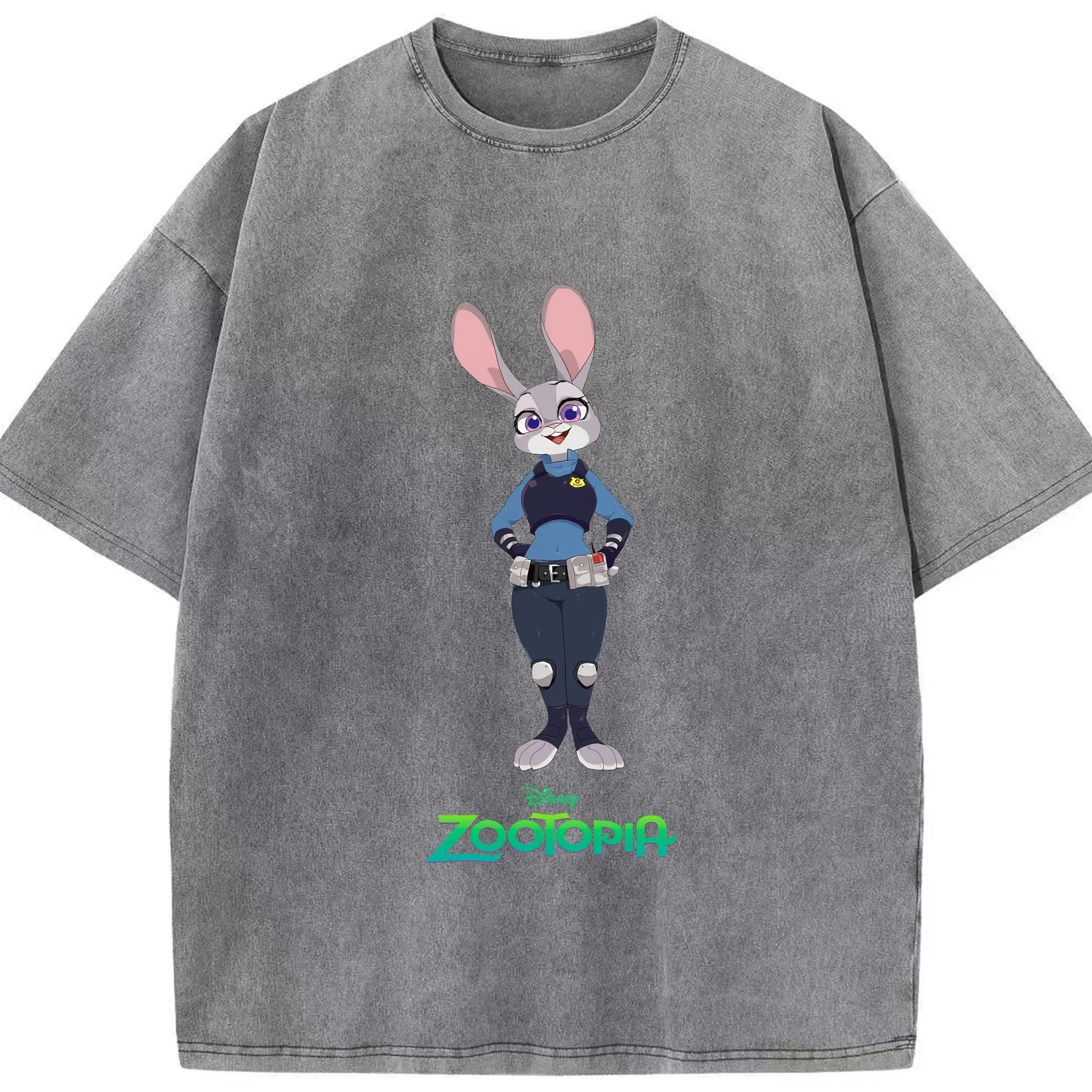 ズートピア グッズ,ジュディ・ホップス - 綿100% ヴィンテージ風 半袖Tシャツ ・ 背面プリント ・ 柔らか肌触り ・ 通気性 快適 ・ スポーツ カジュアル 外出用