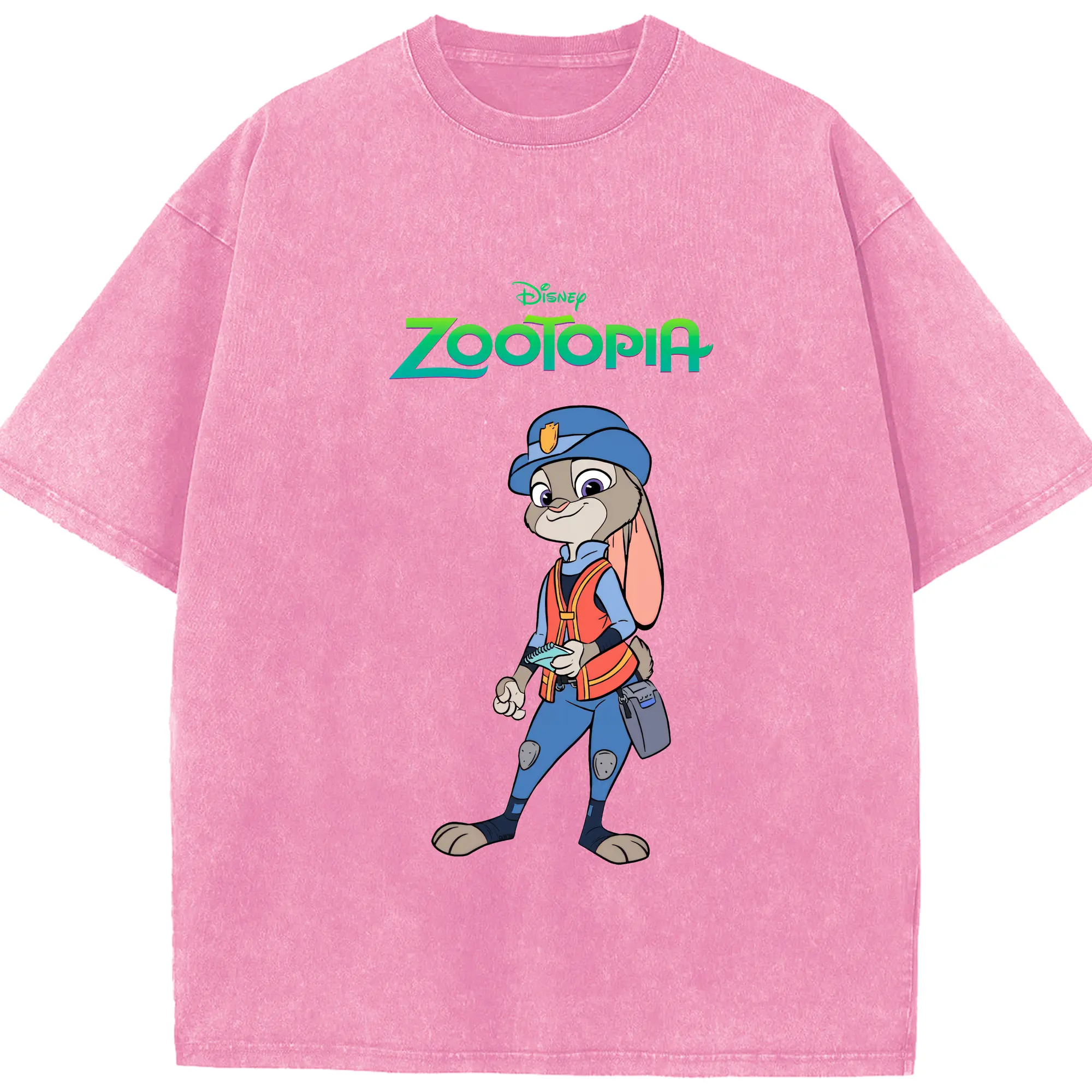 ズートピア グッズ,ジュディ・ホップス - 綿100% ヴィンテージ風 半袖Tシャツ ・ 背面プリント ・ 柔らか肌触り ・ 通気性 快適 ・ スポーツ カジュアル 外出用