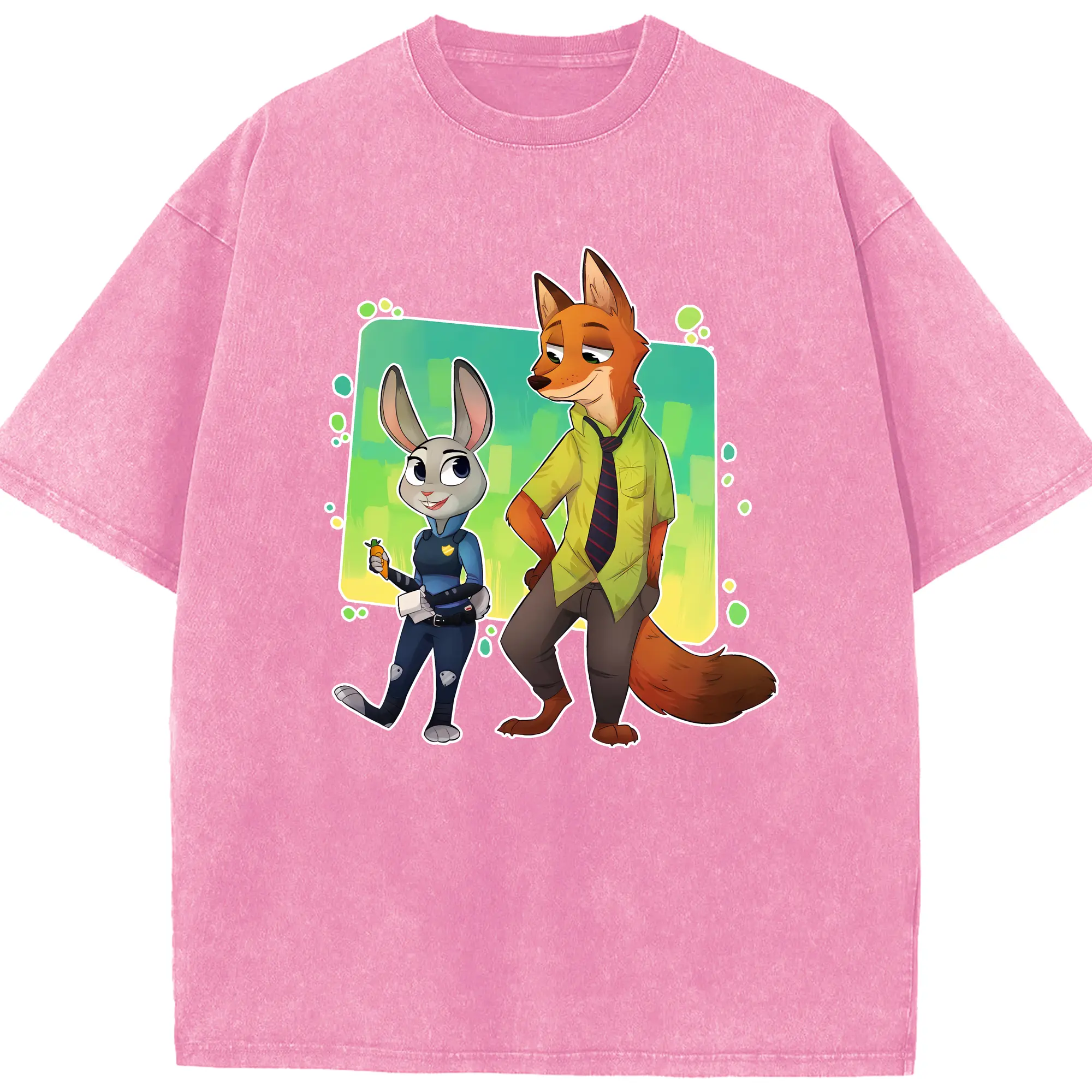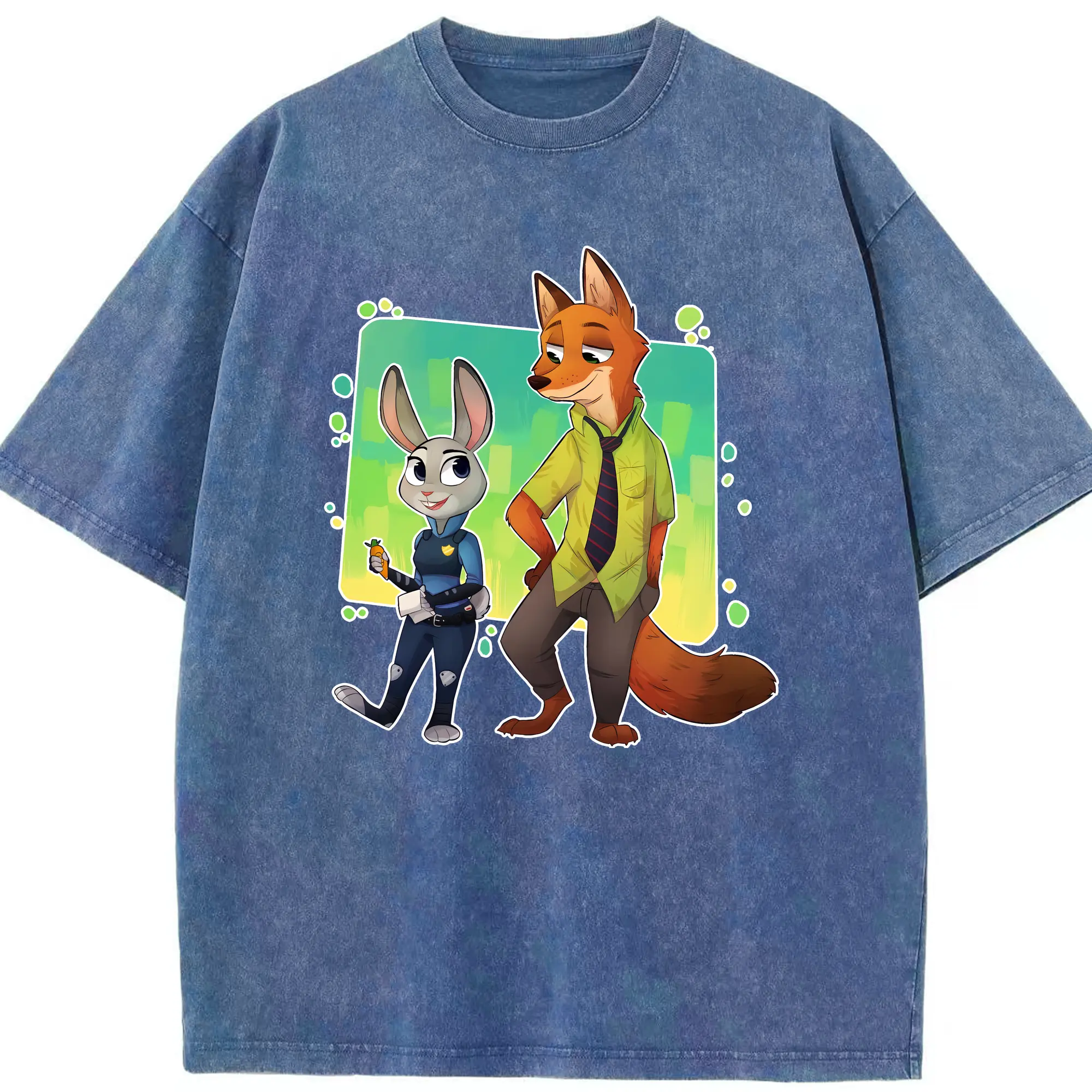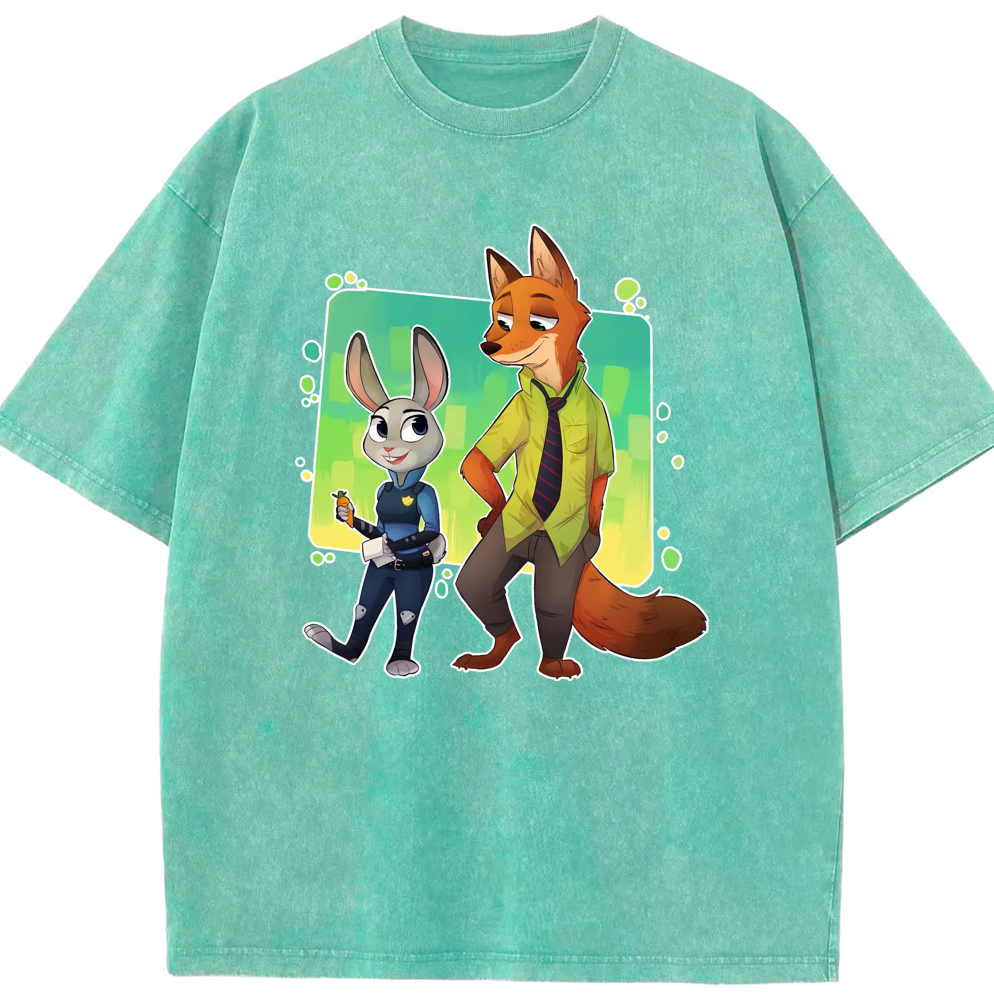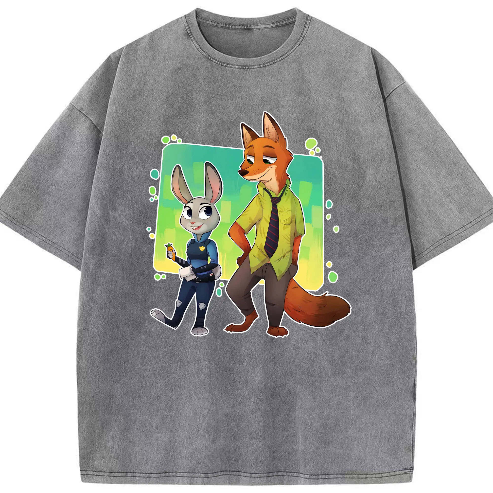 ズートピア グッズ,ジュディ・ホップス - 綿100% ヴィンテージ風 半袖Tシャツ ・ 背面プリント ・ 柔らか肌触り ・ 通気性 快適 ・ スポーツ カジュアル 外出用