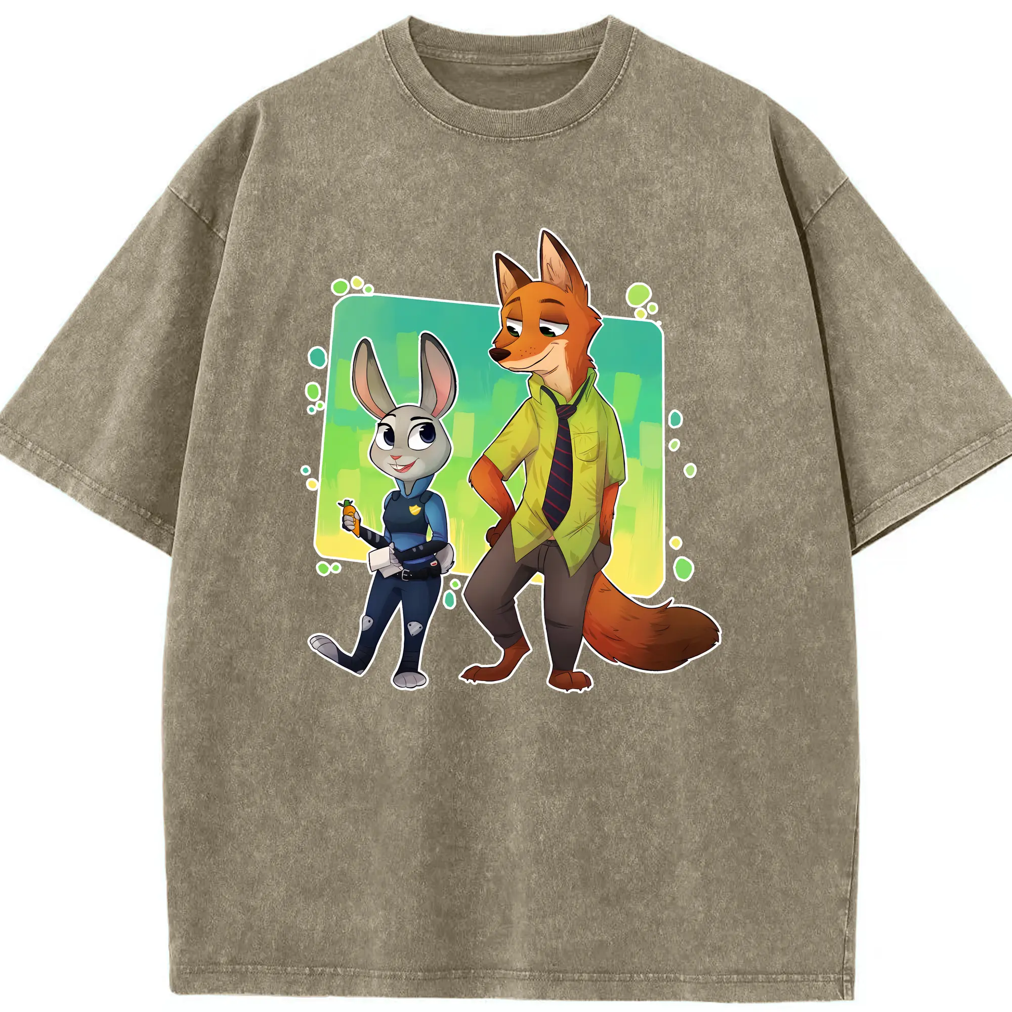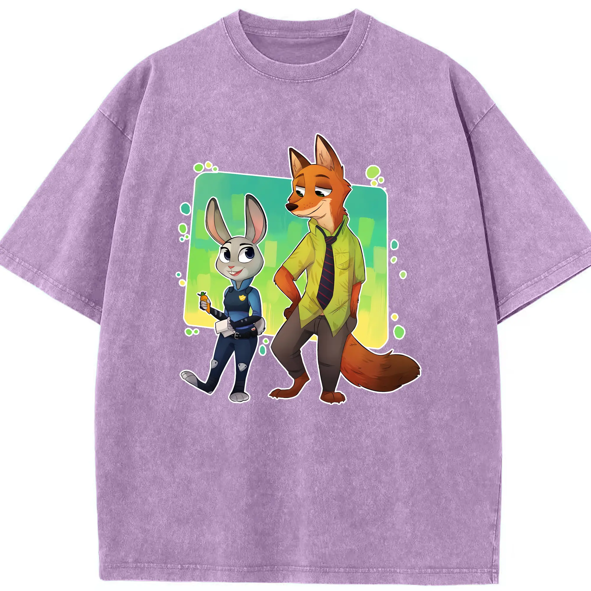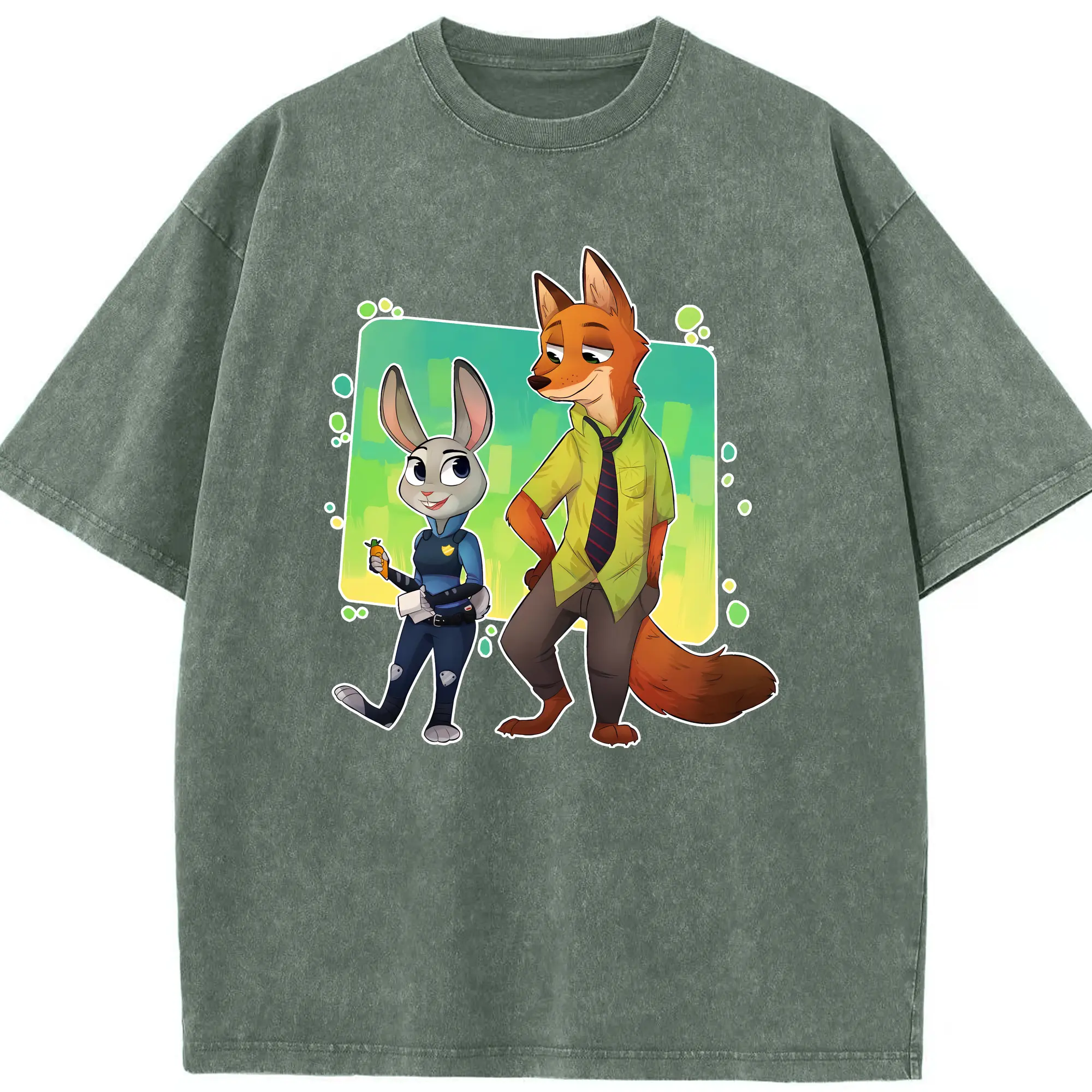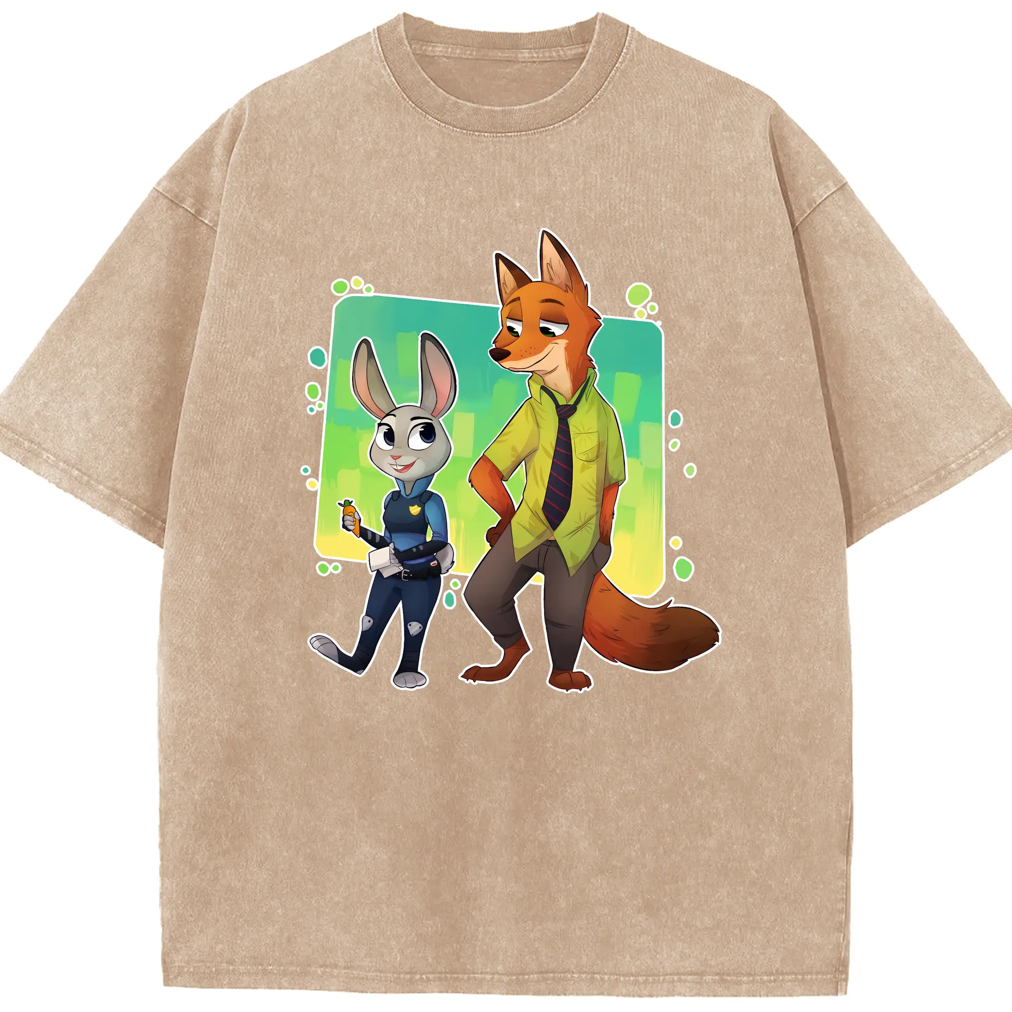 ズートピア グッズ,ジュディ・ホップス - 綿100% ヴィンテージ風 半袖Tシャツ ・ 背面プリント ・ 柔らか肌触り ・ 通気性 快適 ・ スポーツ カジュアル 外出用