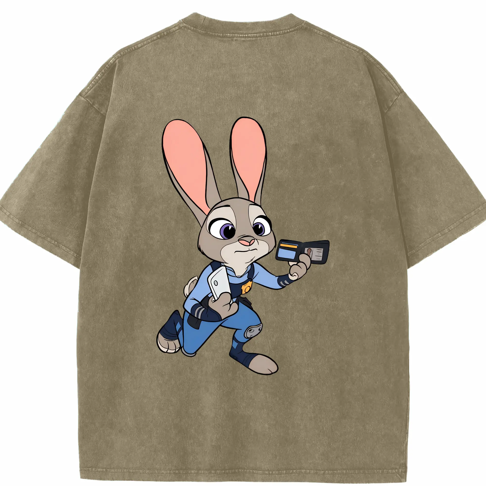 ズートピア グッズ,ジュディ・ホップス - 綿100% ヴィンテージ風 半袖Tシャツ ・ フロントプリント ・ 柔らか肌触り ・ 通気性 快適 ・ スポーツ カジュアル 外出用