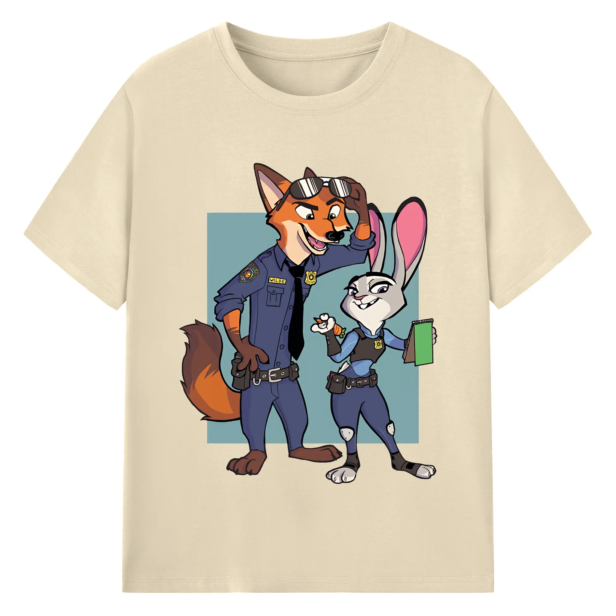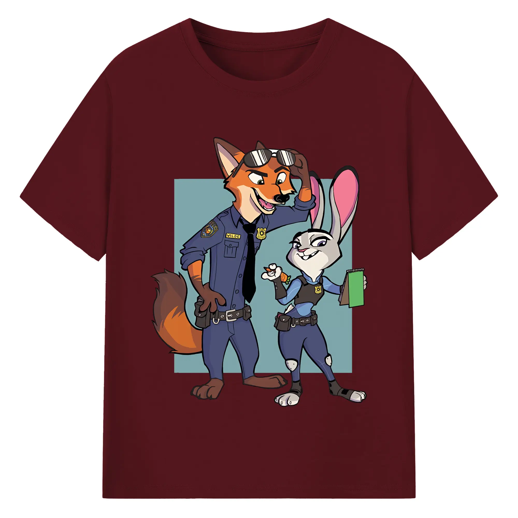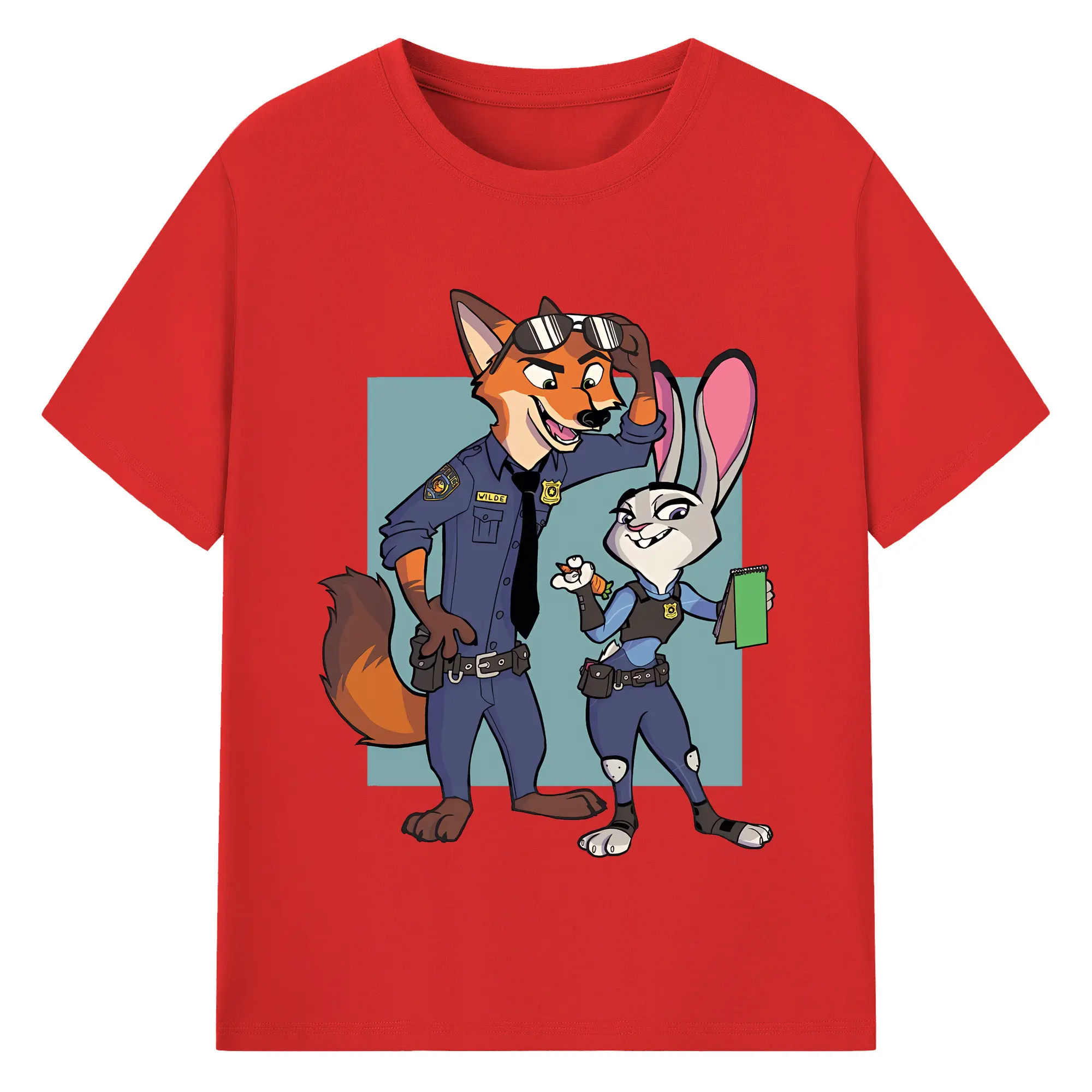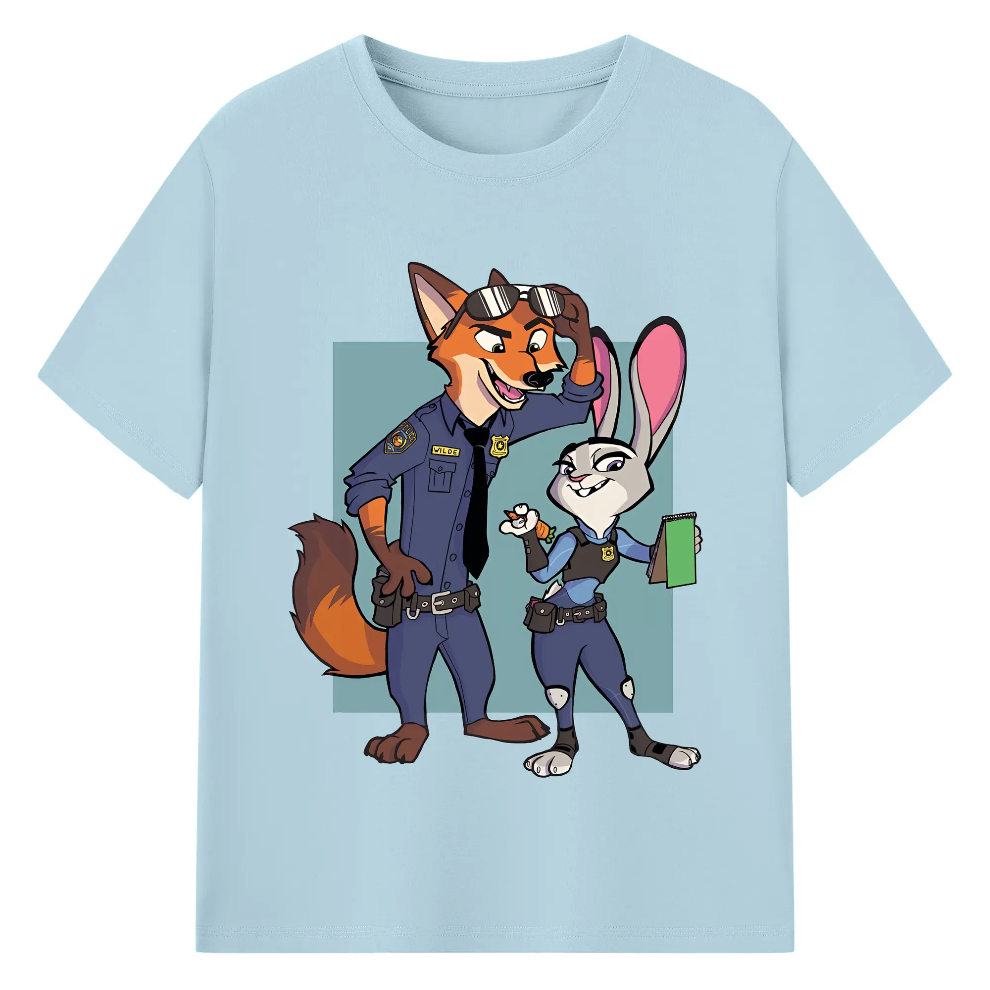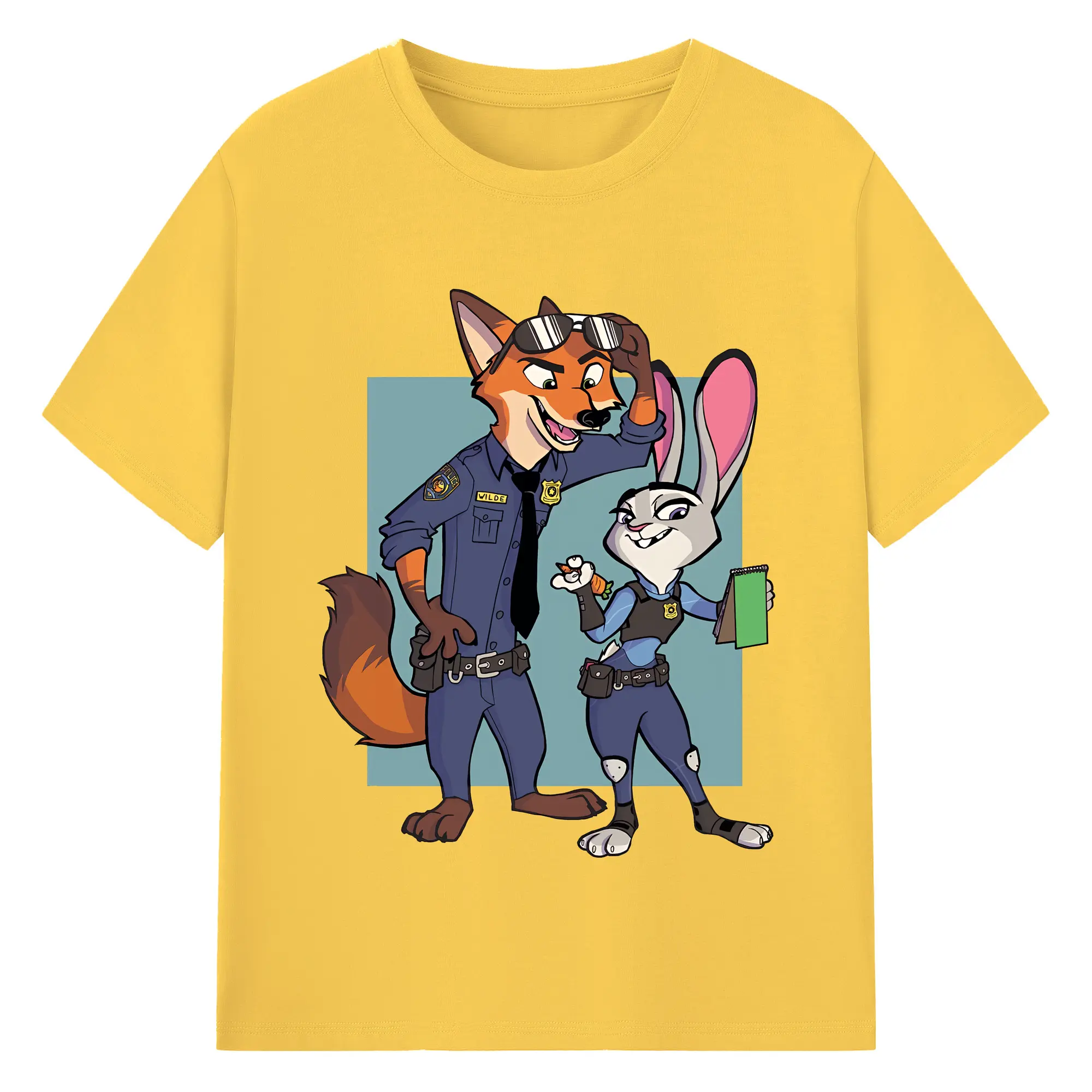 ズートピア グッズ,ニック・ワイルド - 綿100% 半袖Tシャツ ・ バックプリント ・ 快適 通気性 ・ 日常使い 散歩 スポーツ用