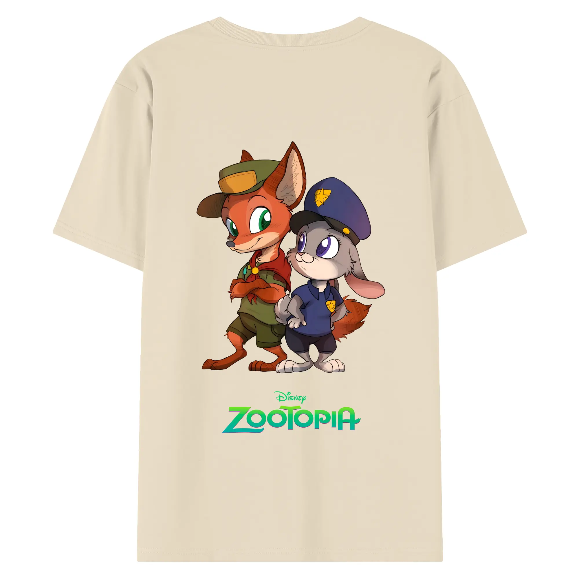 ズートピア グッズ,ニック・ワイルド - 綿100% ヴィンテージ風 半袖Tシャツ ・ 背面プリント ・ 柔らか肌触り ・ 通気性 快適 ・ スポーツ カジュアル 外出用
