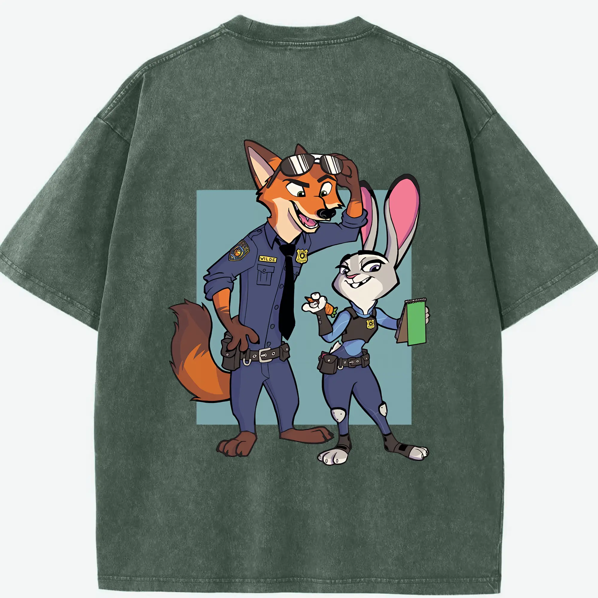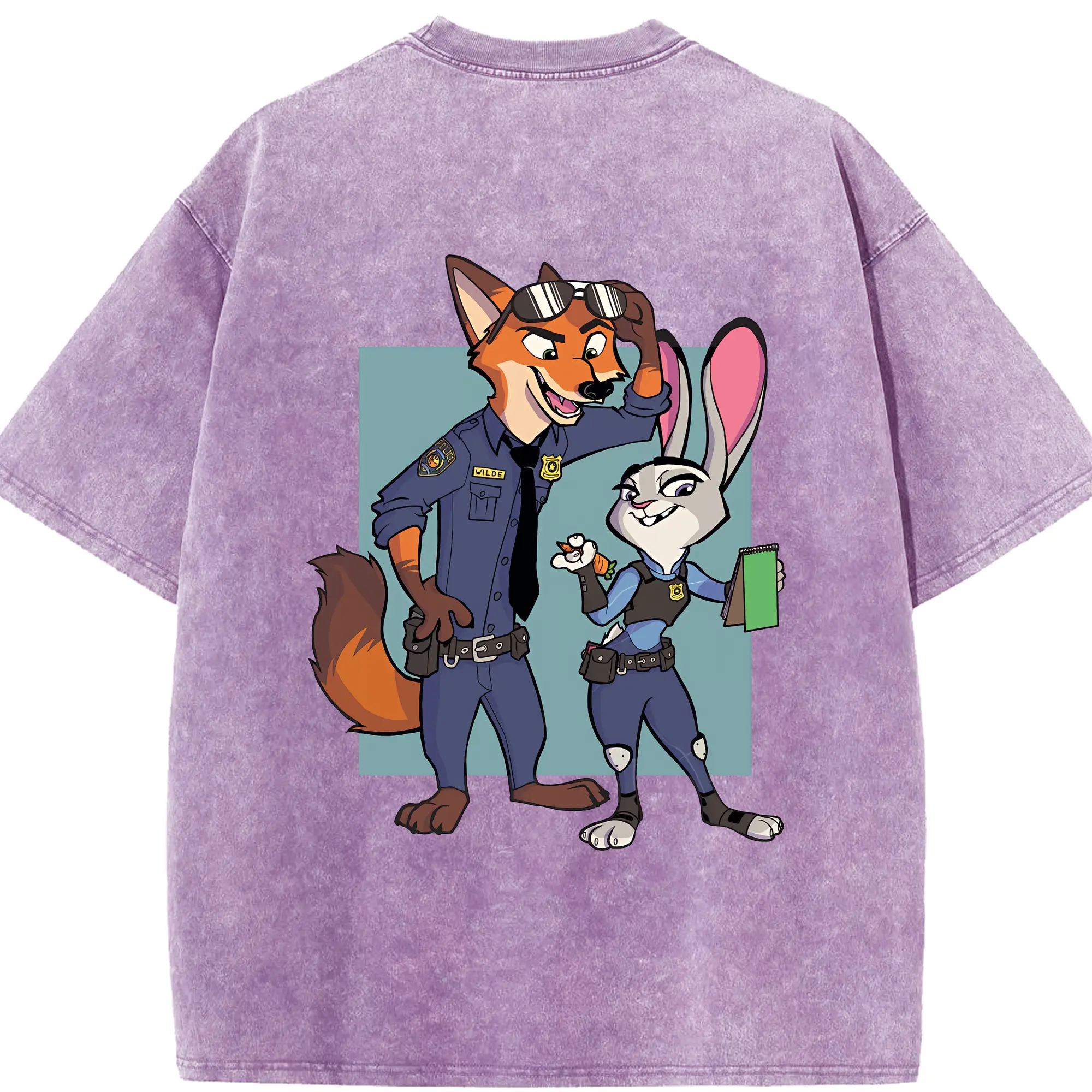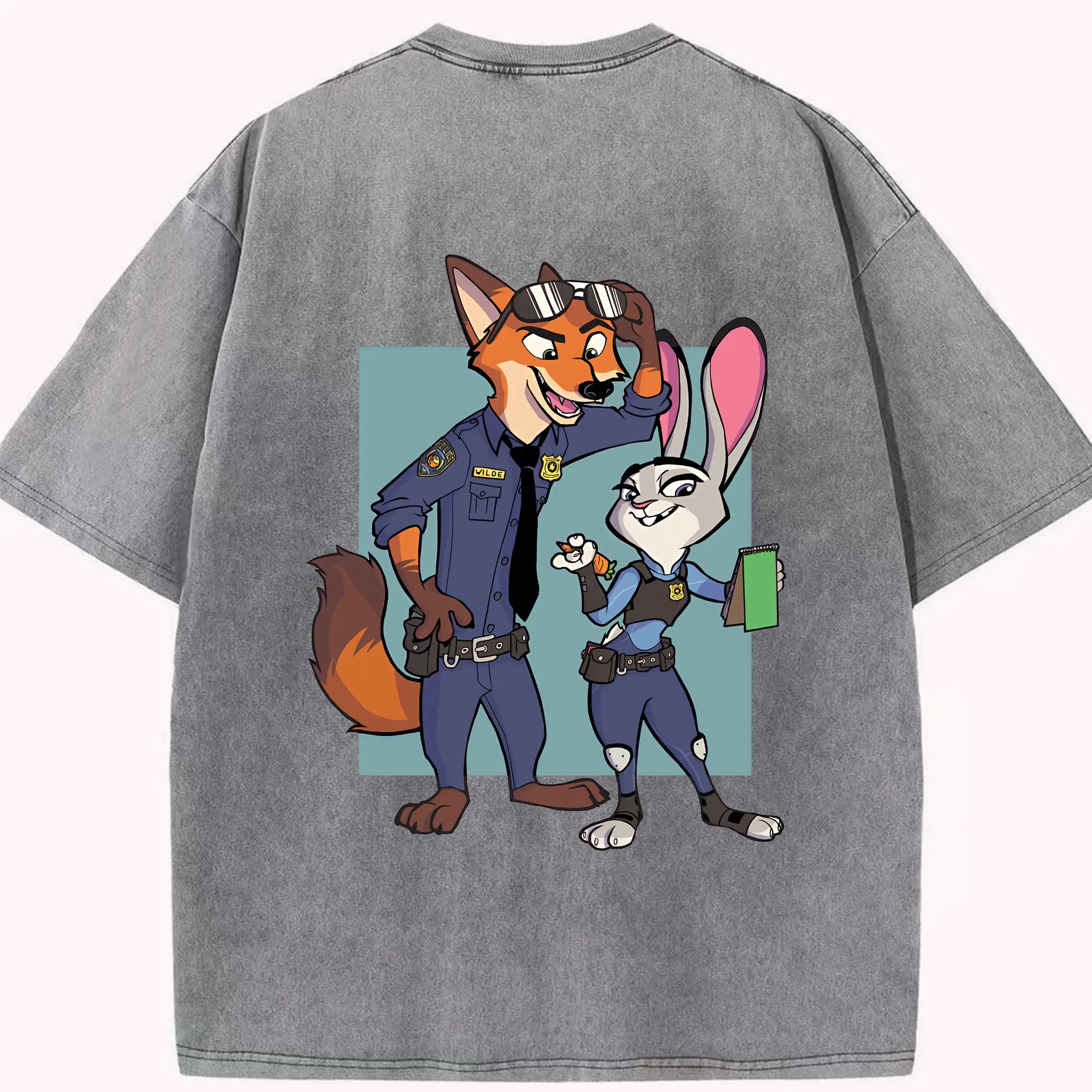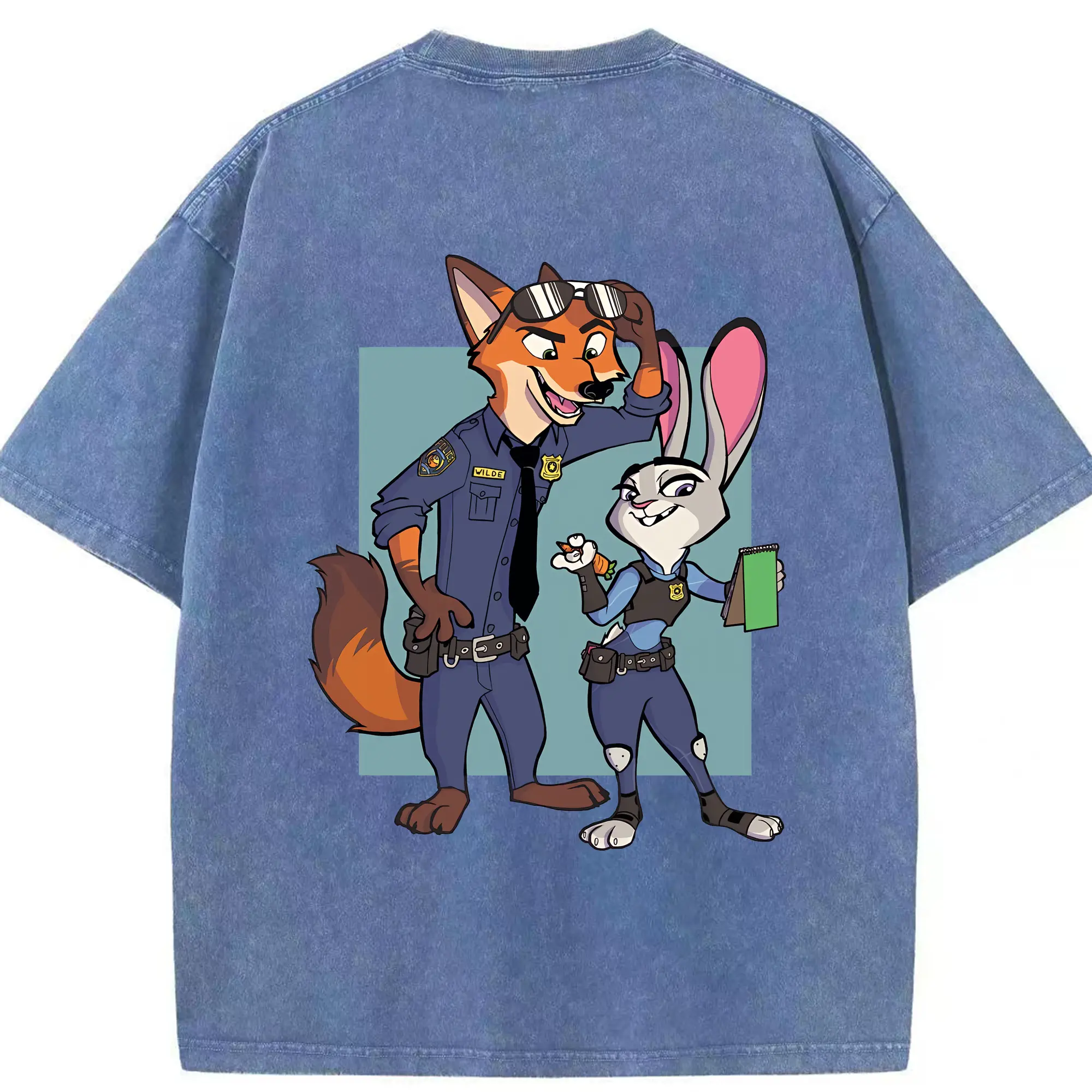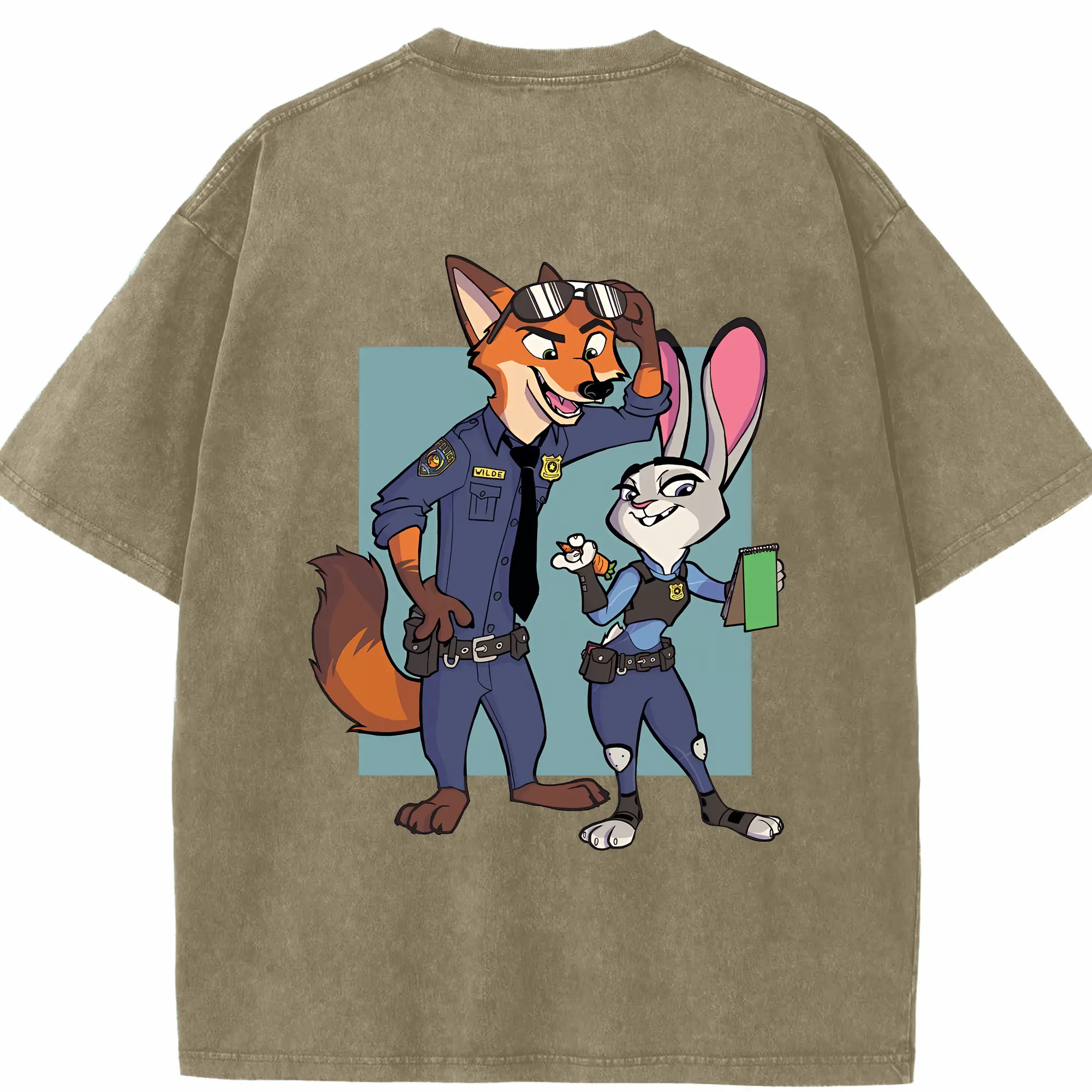 ズートピア グッズ,ニック・ワイルド - 綿100% ヴィンテージ風 半袖Tシャツ ・ フロントプリント ・ 柔らか肌触り ・ 通気性 快適 ・ スポーツ カジュアル 外出用