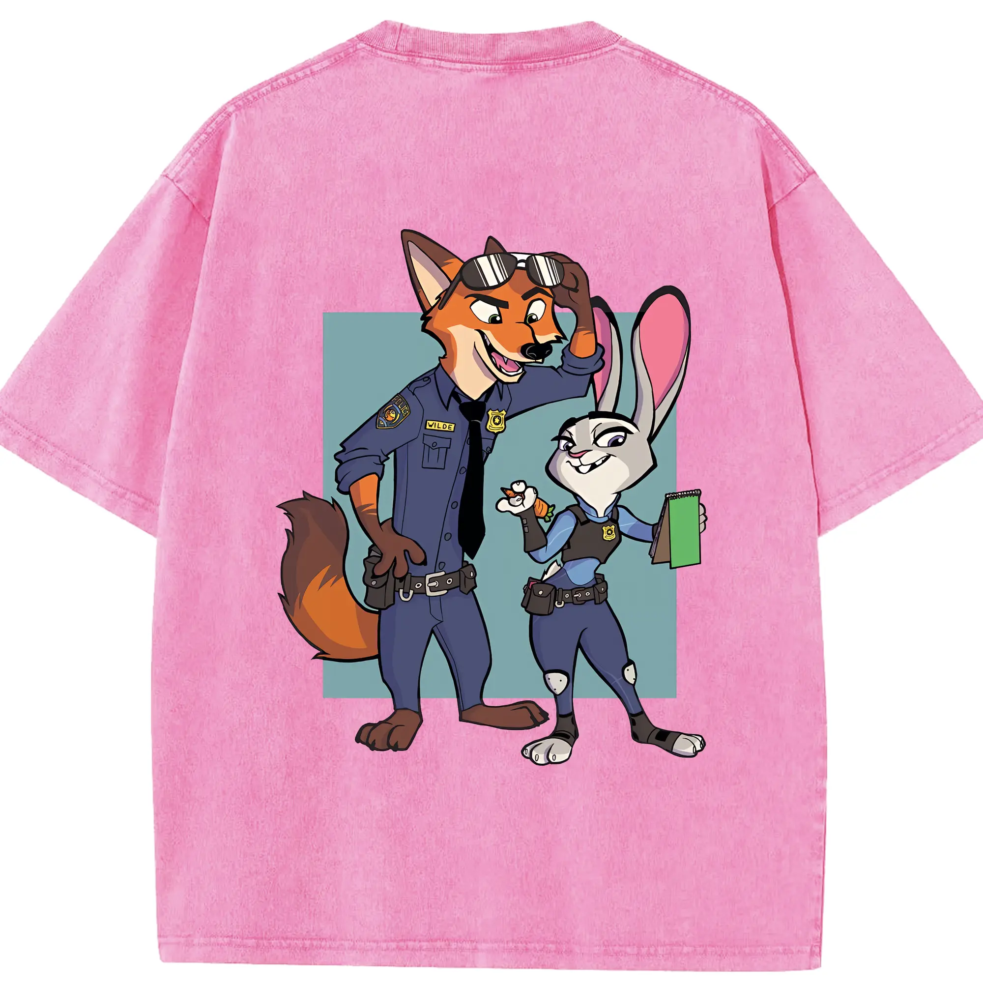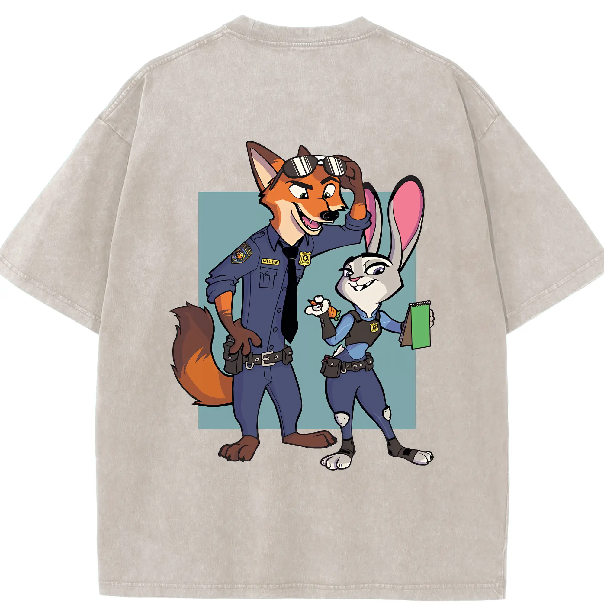 ズートピア グッズ,ニック・ワイルド - 綿100% 半袖Tシャツ ・ バックプリント ・ 快適 通気性 ・ 日常使い 散歩 スポーツ用
