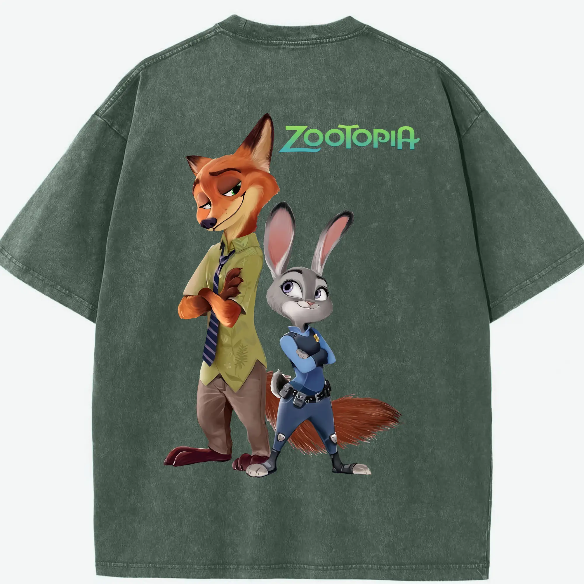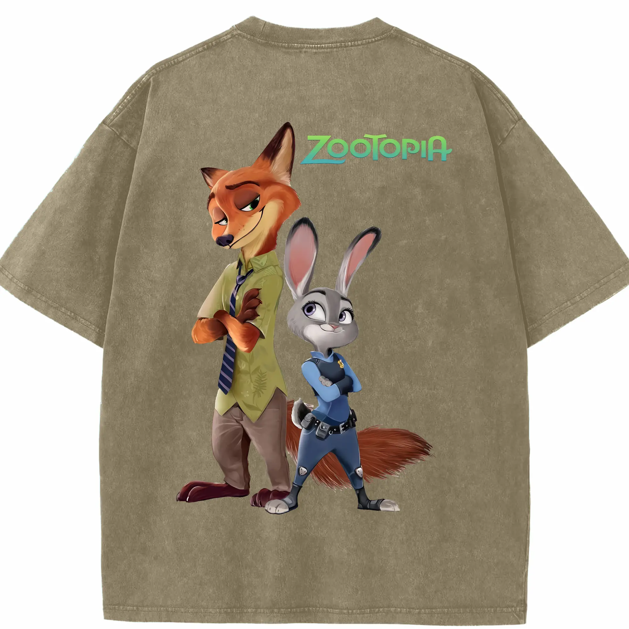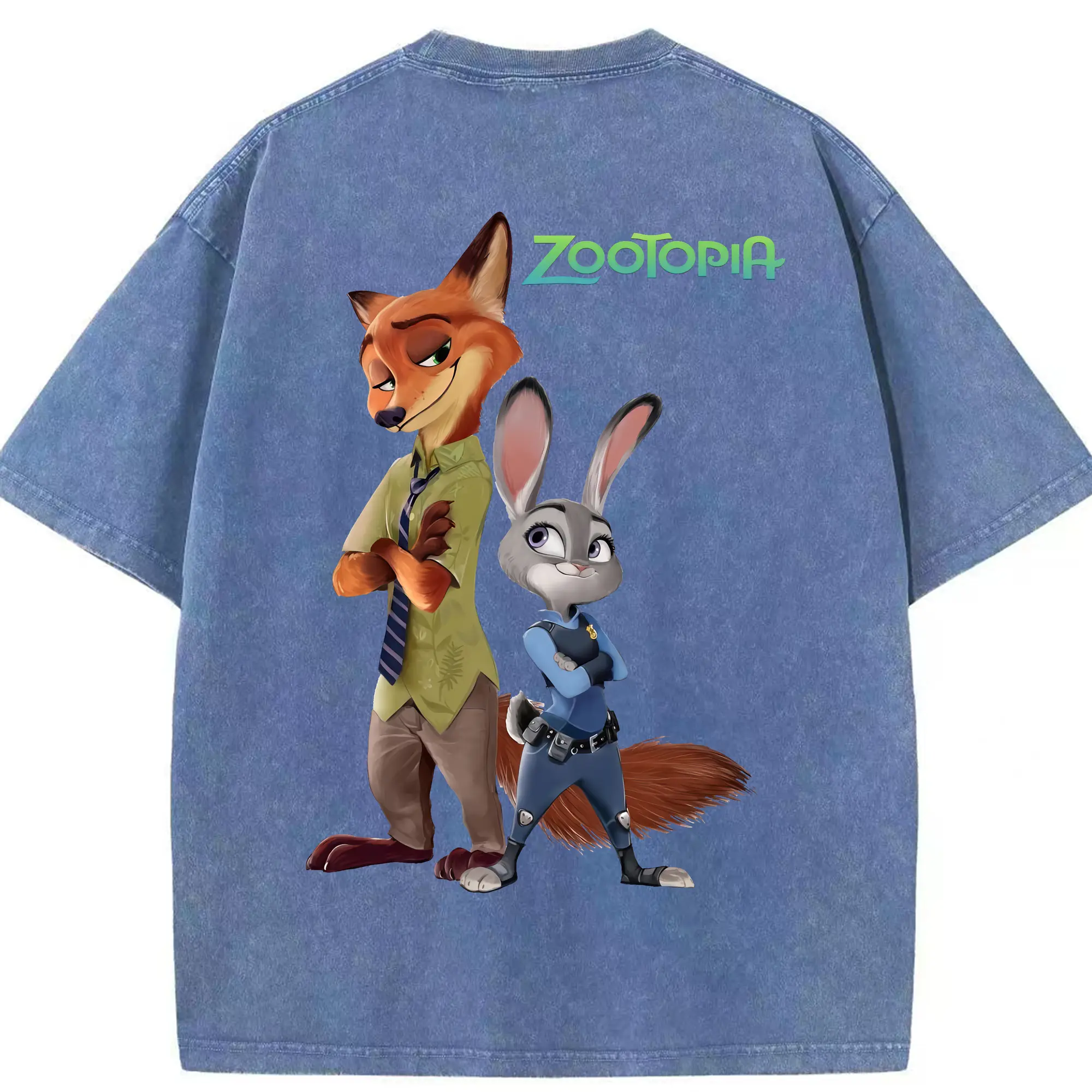 ズートピア グッズ,ニック・ワイルド - 綿100% ヴィンテージ風 半袖Tシャツ ・ フロントプリント ・ 柔らか肌触り ・ 通気性 快適 ・ スポーツ カジュアル 外出用