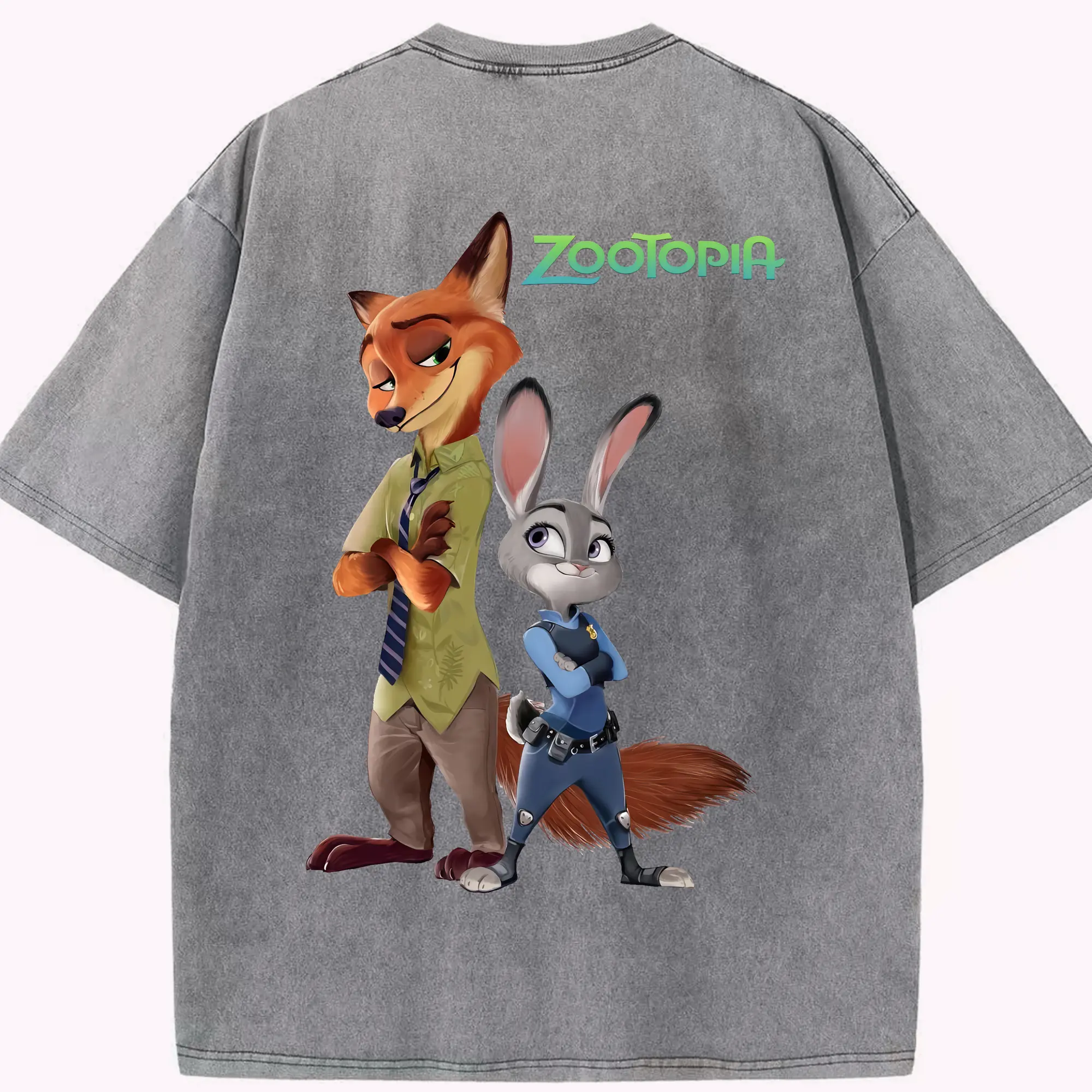 ズートピア グッズ,ニック・ワイルド - 綿100% 半袖Tシャツ ・ バックプリント ・ 快適 通気性 ・ 日常使い 散歩 スポーツ用