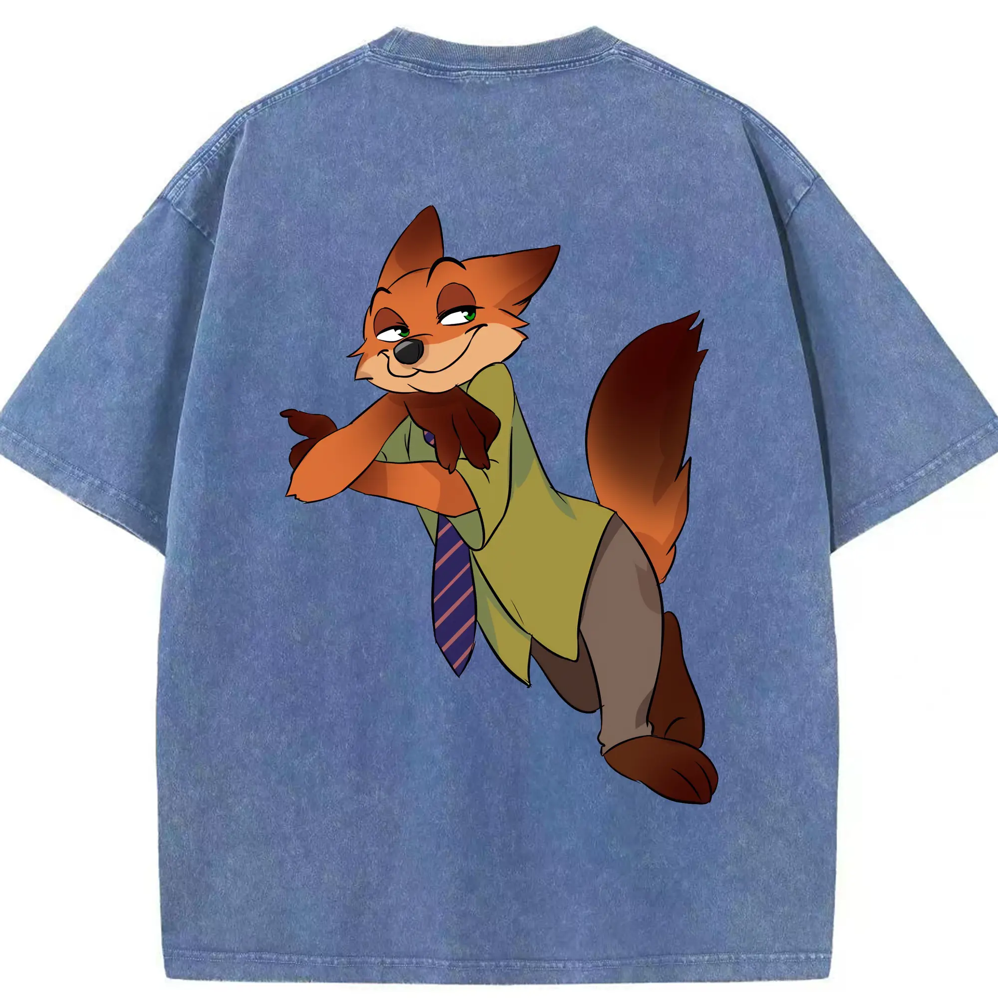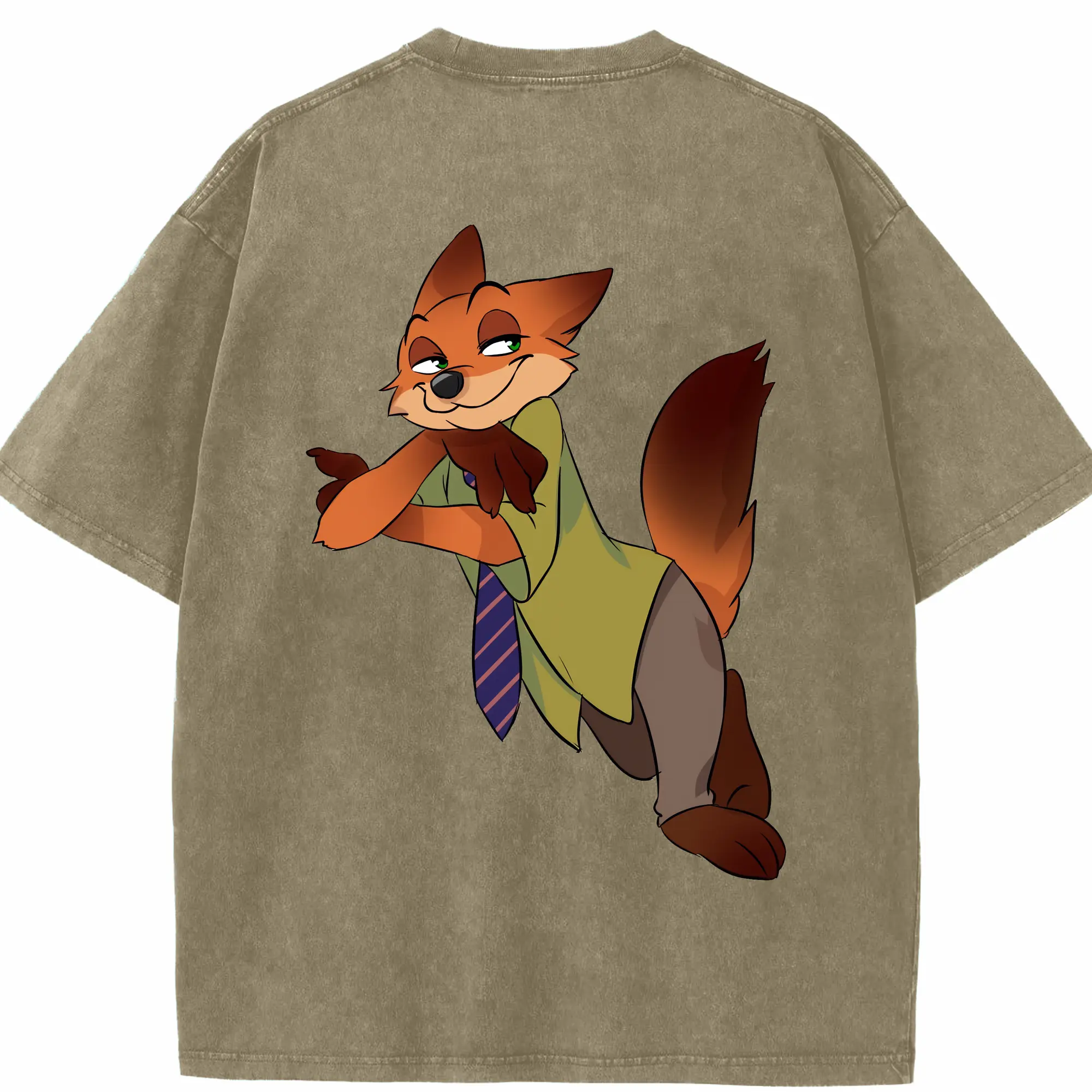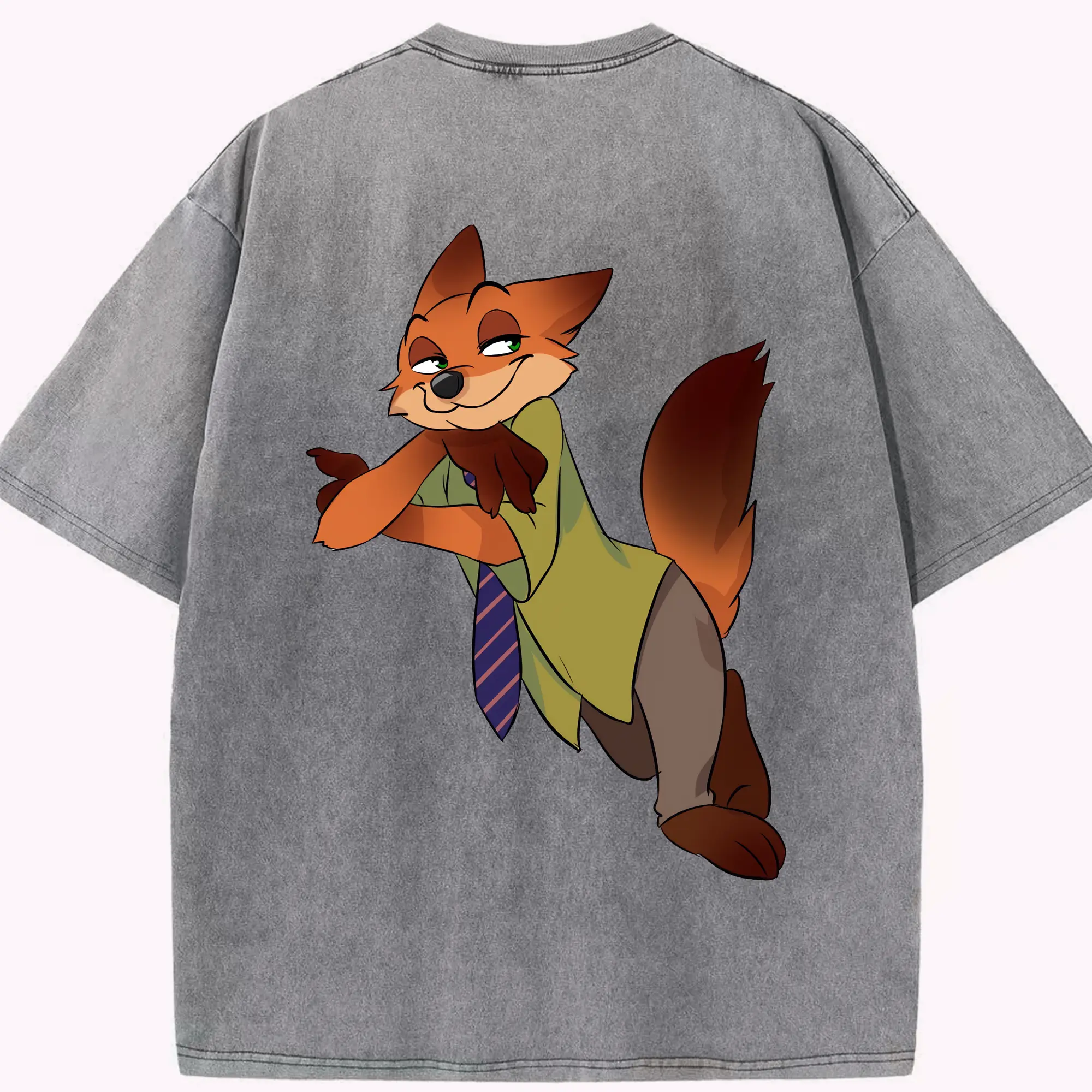 ズートピア グッズ,ニック・ワイルド - 綿100% ヴィンテージ風 半袖Tシャツ ・ フロントプリント ・ 柔らか肌触り ・ 通気性 快適 ・ スポーツ カジュアル 外出用