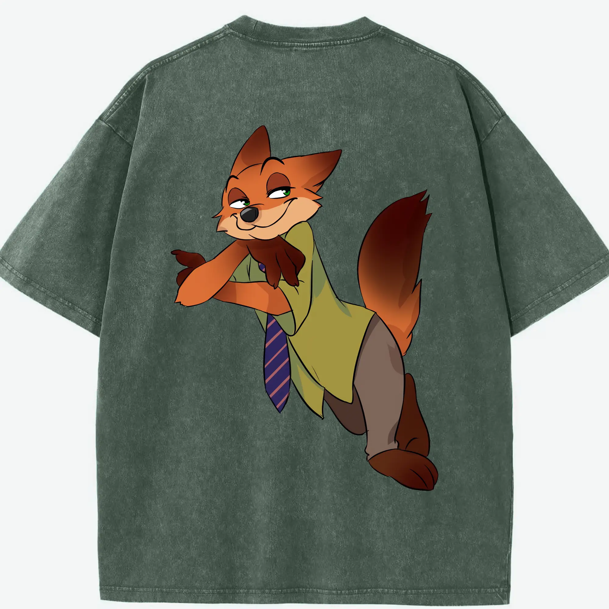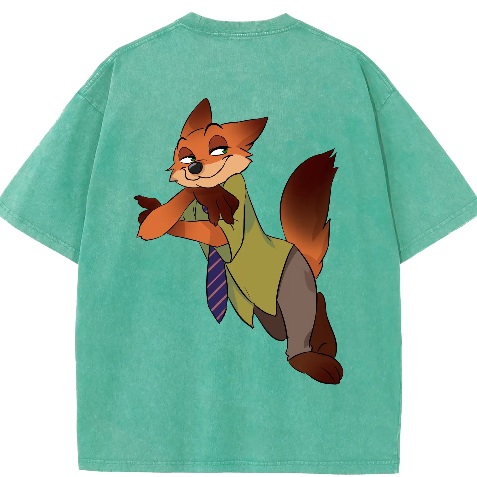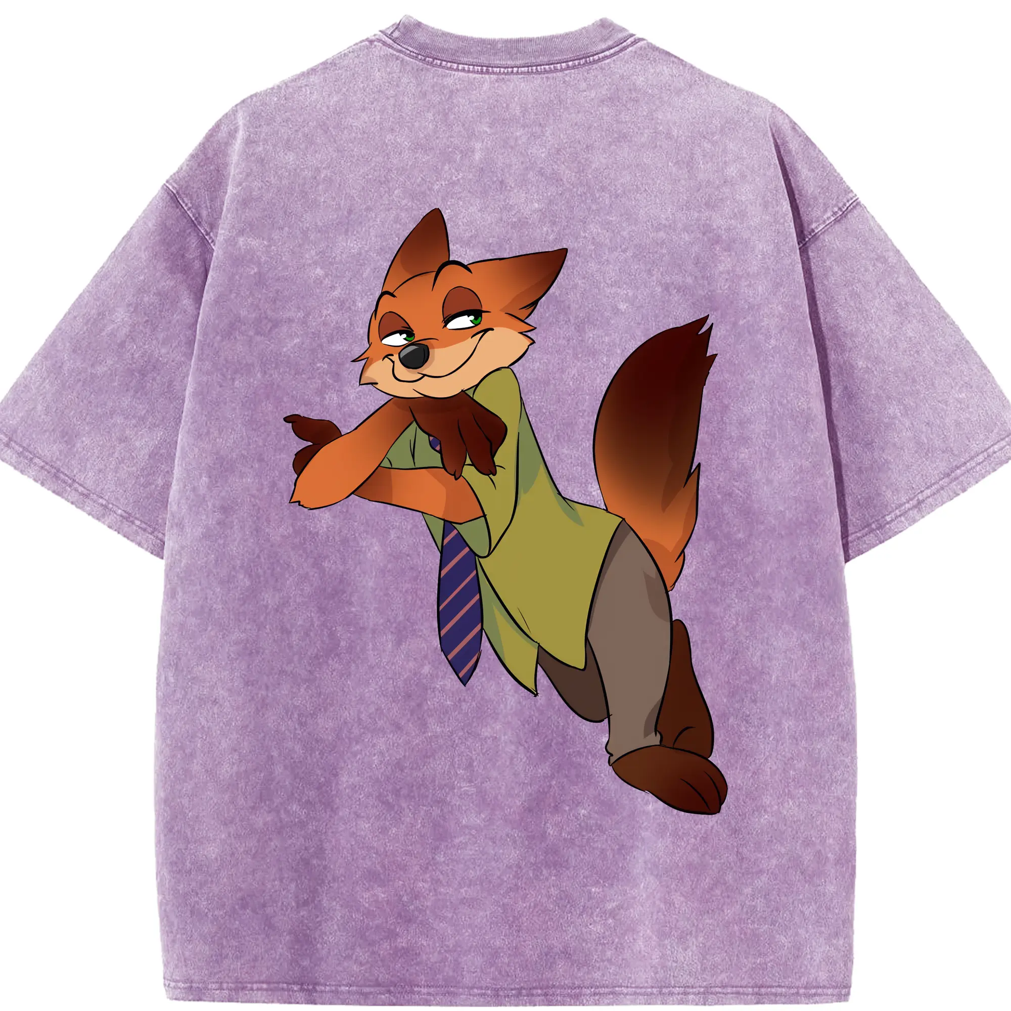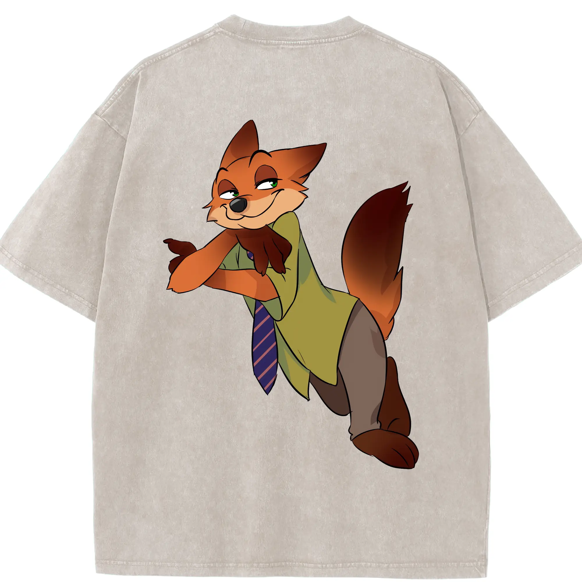 ズートピア グッズ,ニック・ワイルド - 綿100% ヴィンテージ風 半袖Tシャツ ・ フロントプリント ・ 柔らか肌触り ・ 通気性 快適 ・ スポーツ カジュアル 外出用