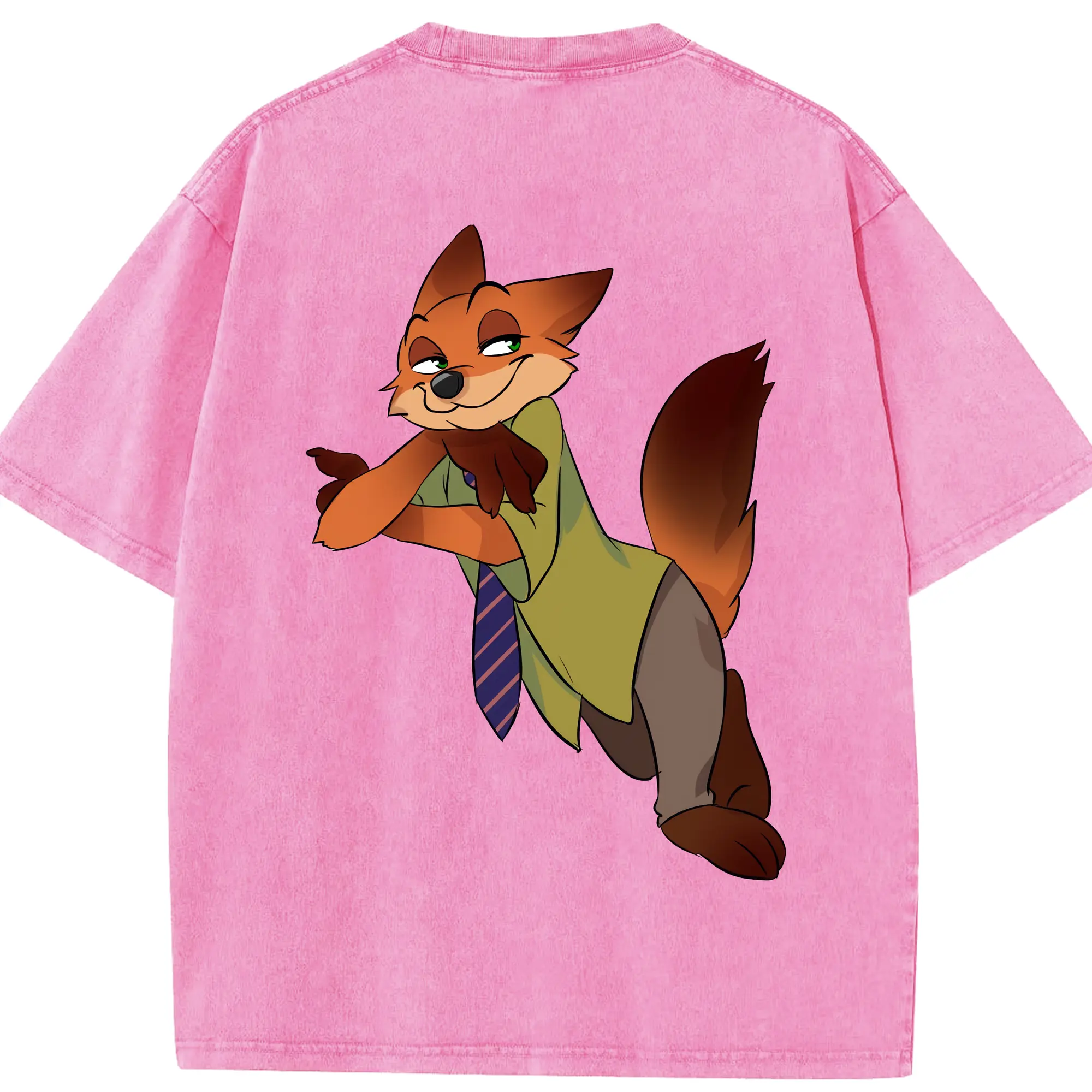 ズートピア グッズ,ニック・ワイルド - 綿100% 半袖Tシャツ ・ バックプリント ・ 快適 通気性 ・ 日常使い 散歩 スポーツ用