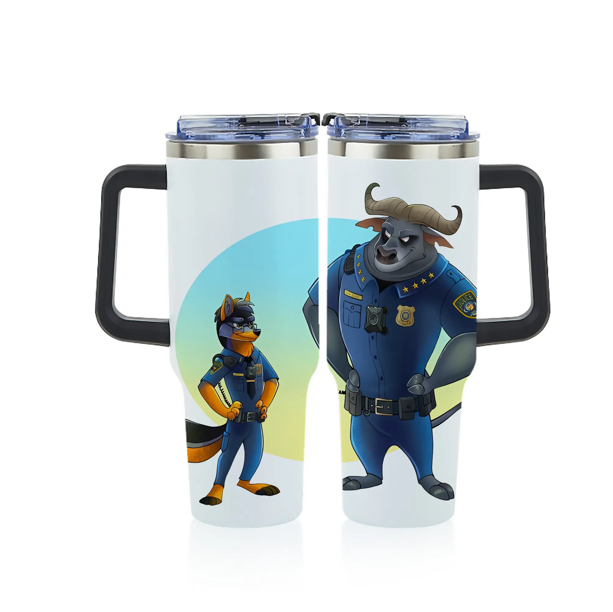 ズートピア グッズ,ボゴ署長 - 1200mL フルプリント車用タンブラー ・ 304ステンレス 内側 ・ 201ステンレス 外側 ・ 保温 保冷 ・ 通勤 ドライブ アウトドア用