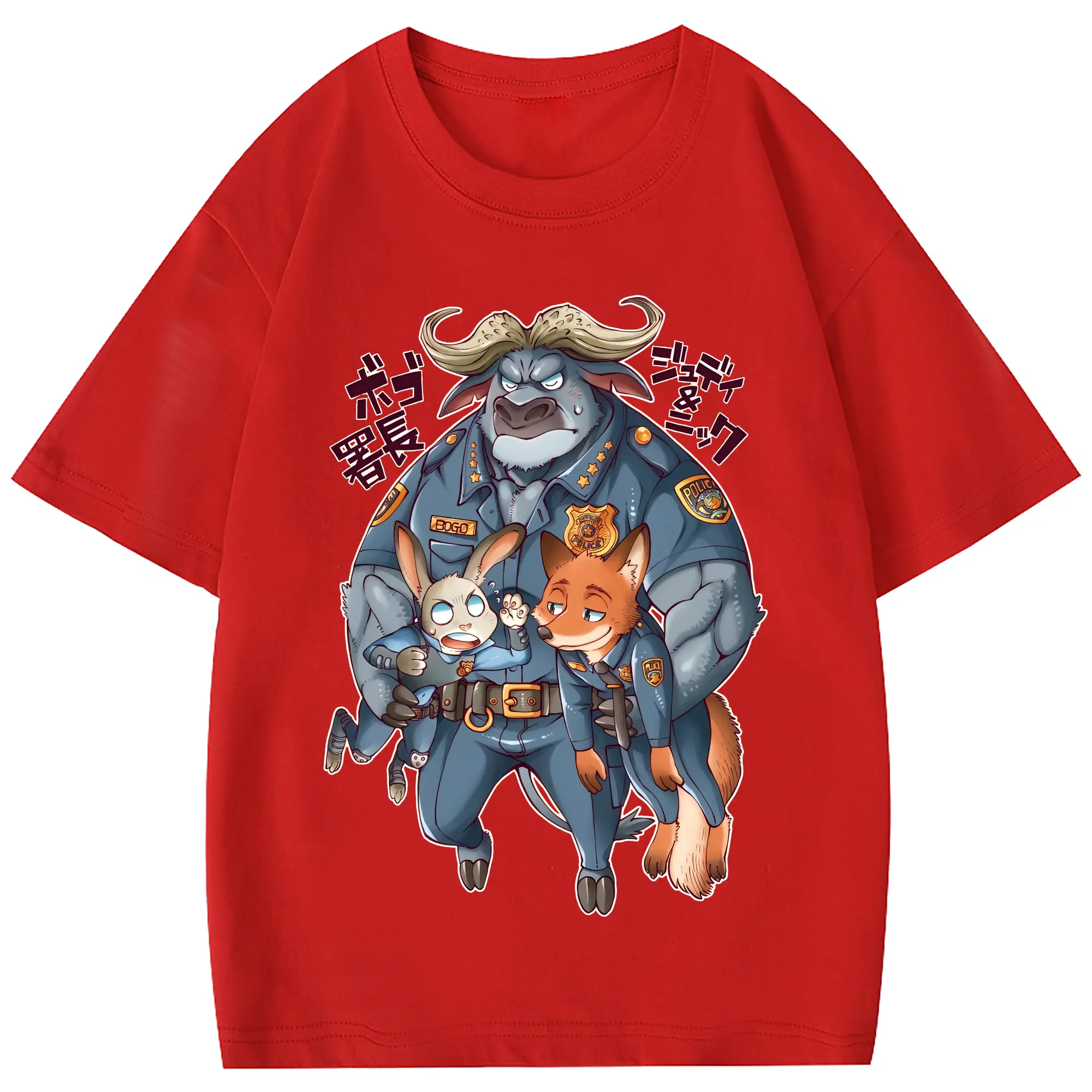 ズートピア グッズ,ボゴ署長 - 綿100% 半袖Tシャツ ・ フロントプリント ・ 快適 通気性 ・ 日常使い 散歩 スポーツ用