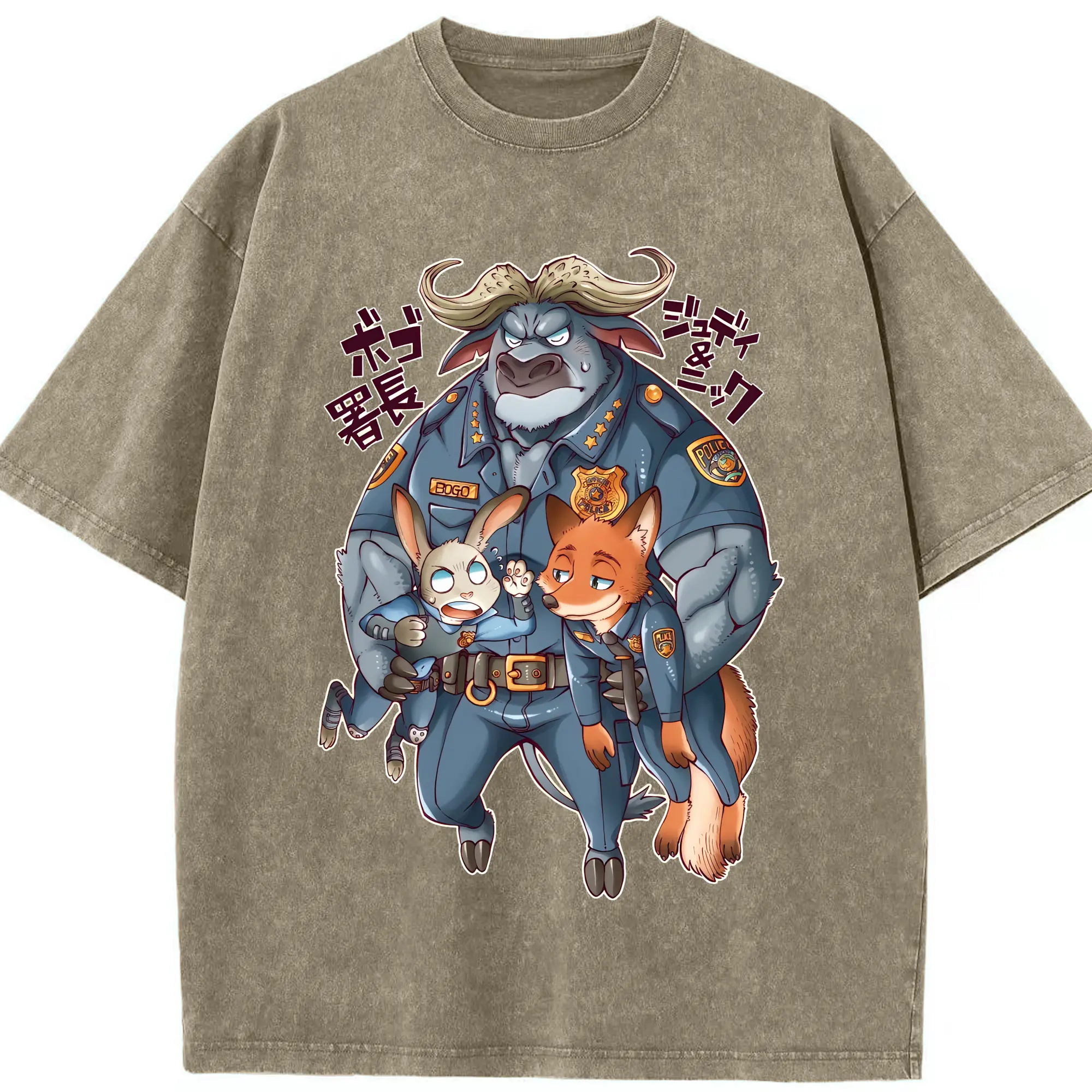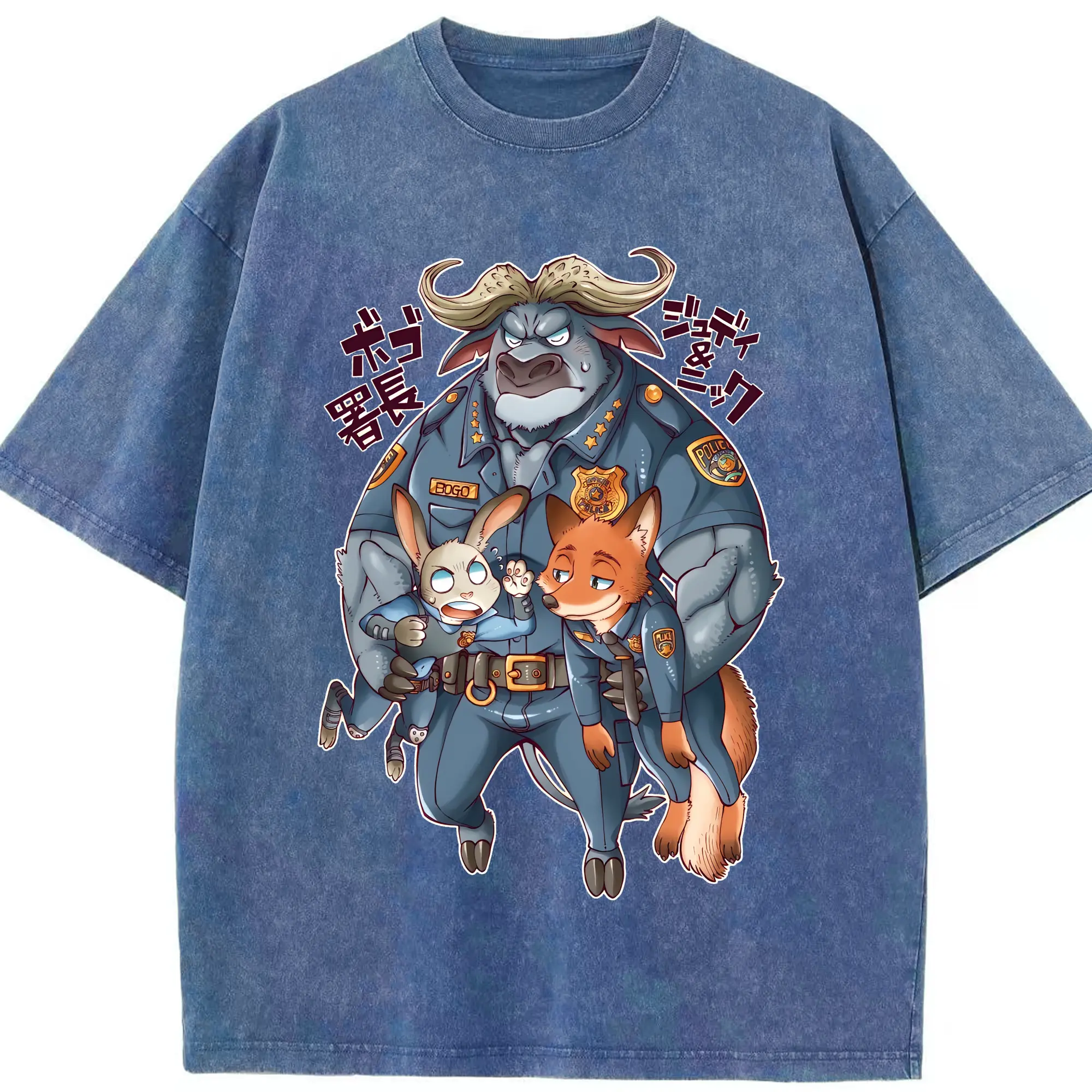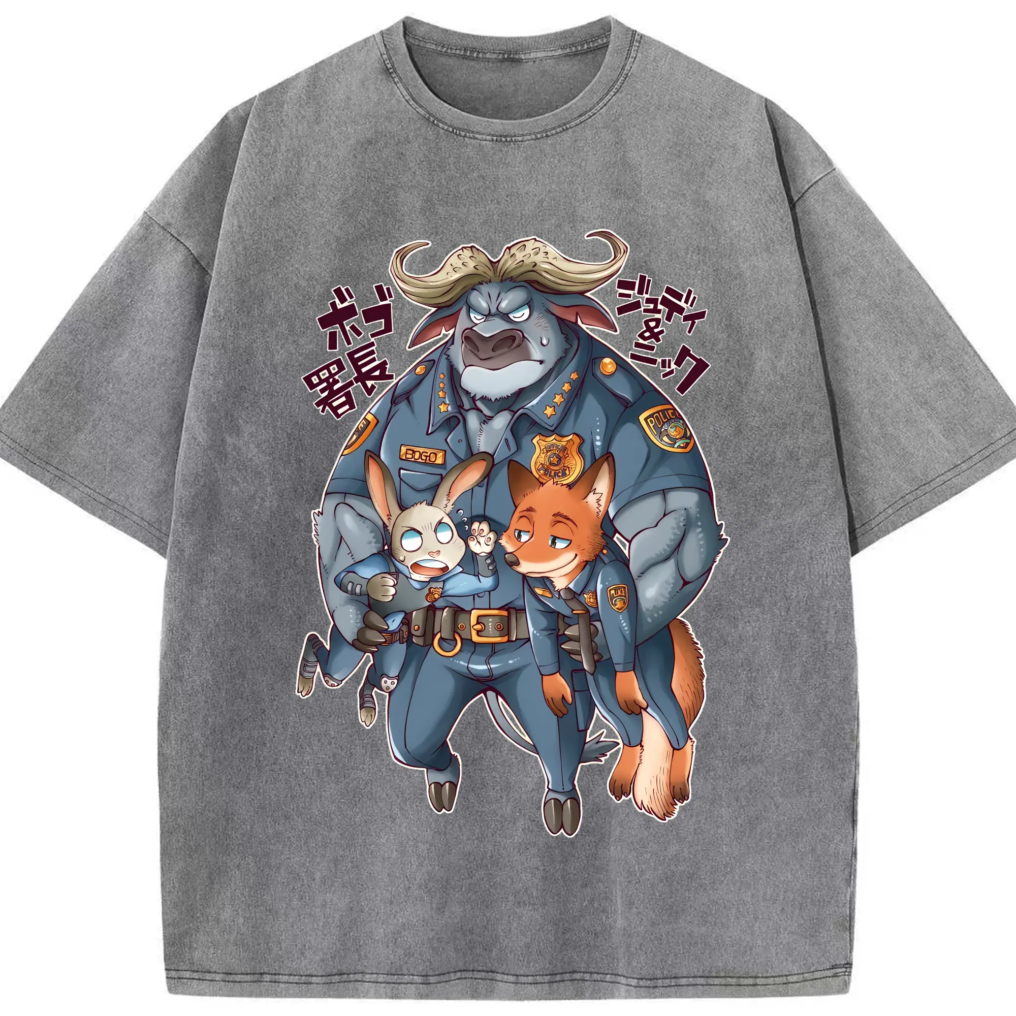 ズートピア グッズ,ボゴ署長 - 綿100% ヴィンテージ風 半袖Tシャツ ・ 背面プリント ・ 柔らか肌触り ・ 通気性 快適 ・ スポーツ カジュアル 外出用