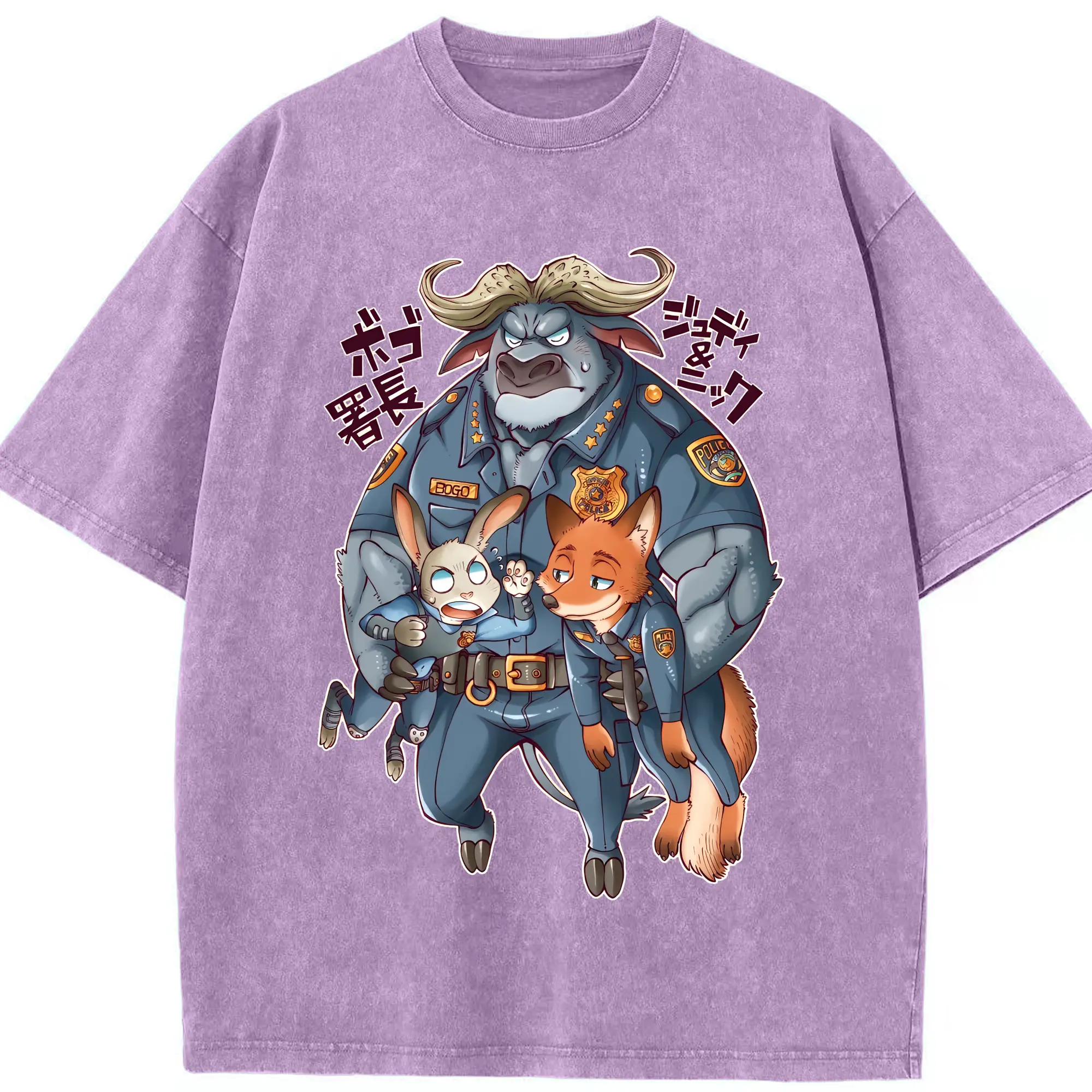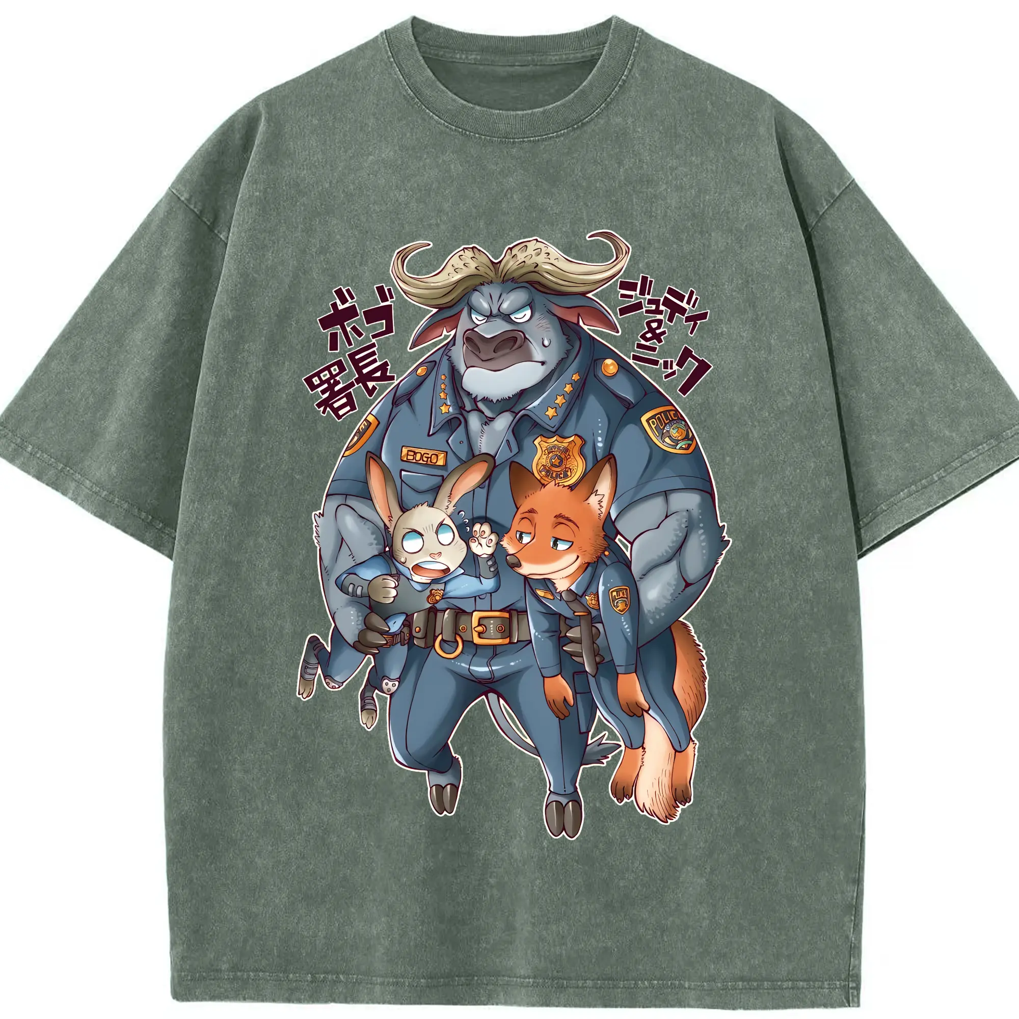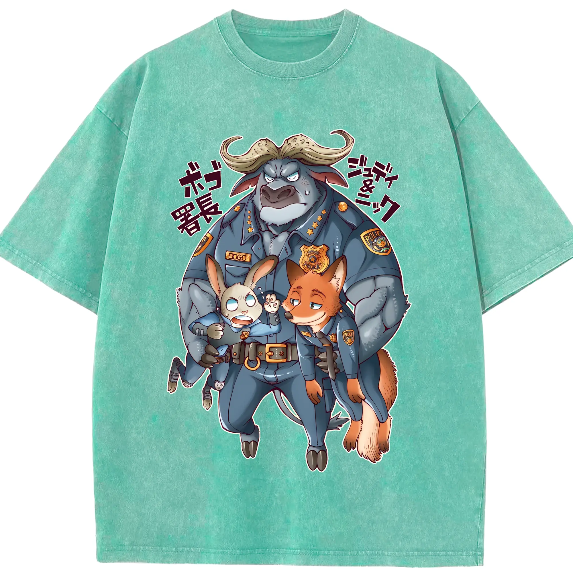 ズートピア グッズ,ボゴ署長 - 綿100% ヴィンテージ風 半袖Tシャツ ・ 背面プリント ・ 柔らか肌触り ・ 通気性 快適 ・ スポーツ カジュアル 外出用