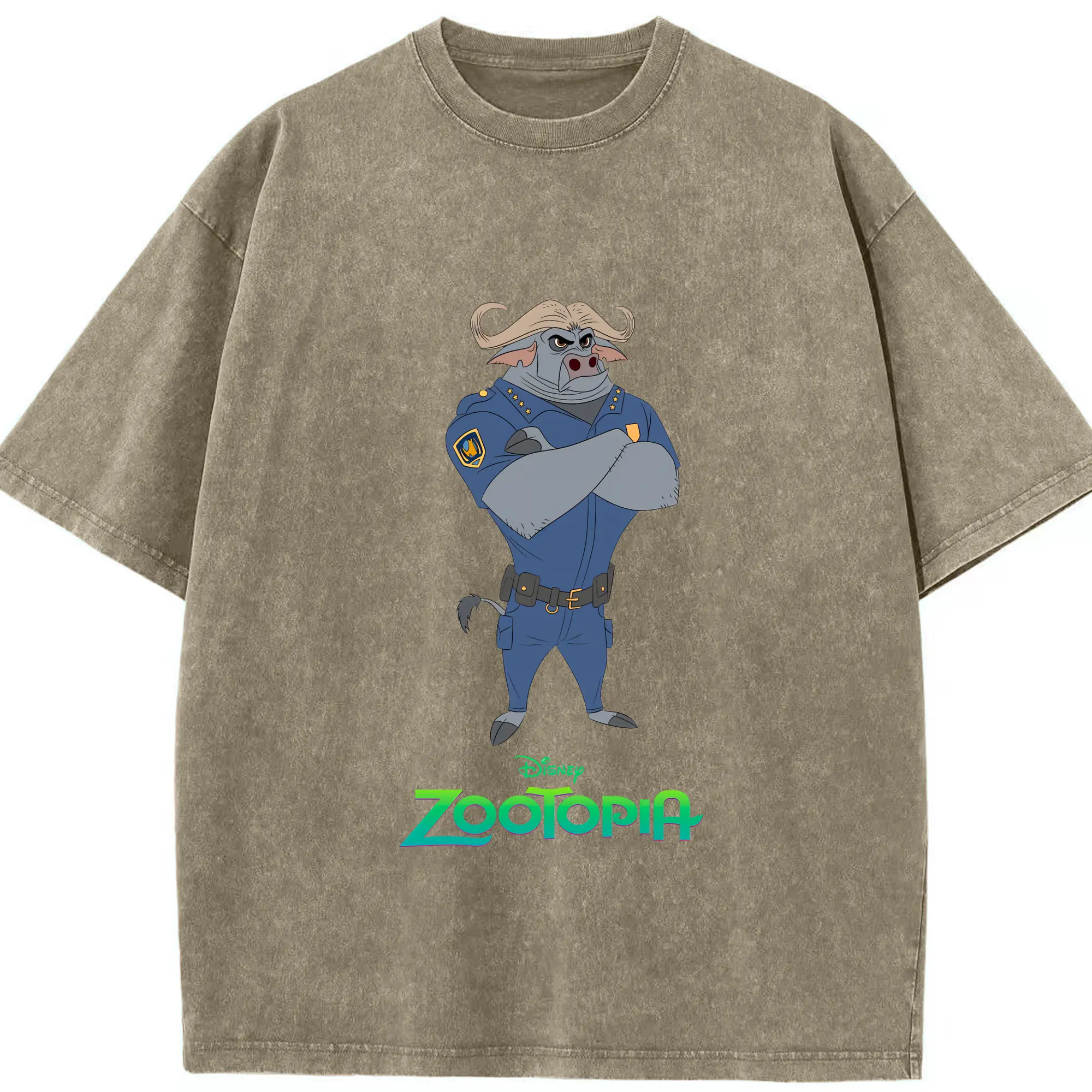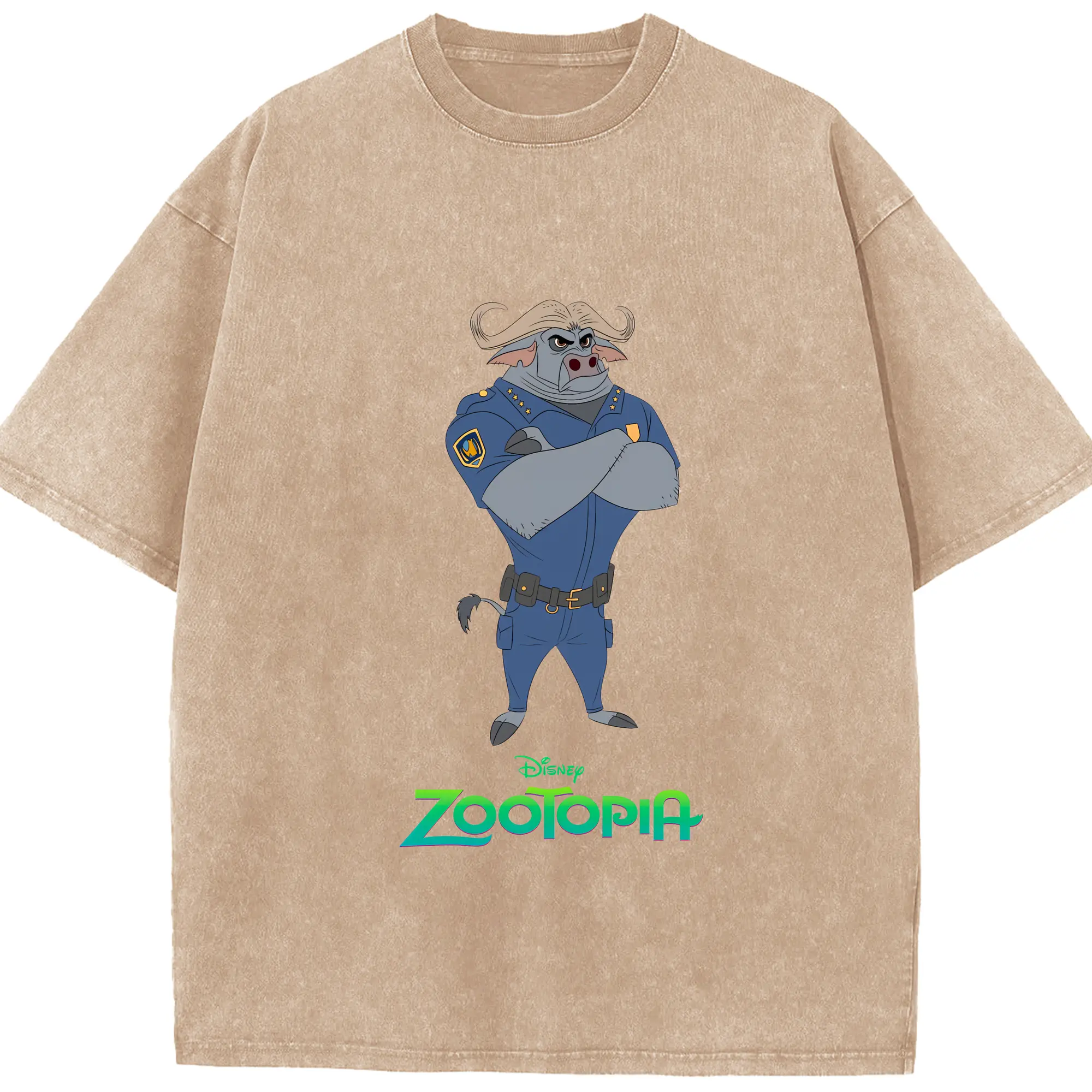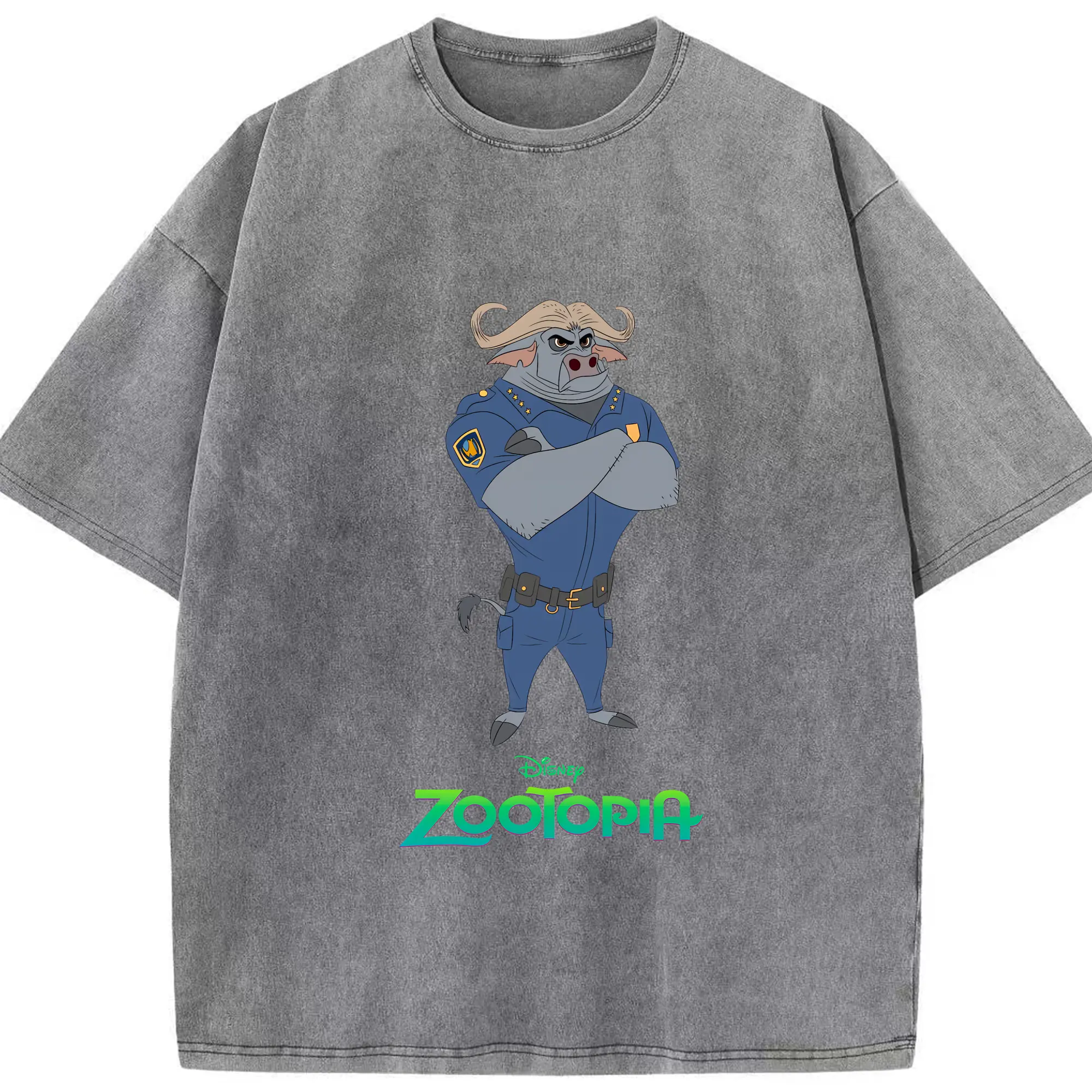 ズートピア グッズ,ボゴ署長 - 綿100% ヴィンテージ風 半袖Tシャツ ・ 背面プリント ・ 柔らか肌触り ・ 通気性 快適 ・ スポーツ カジュアル 外出用