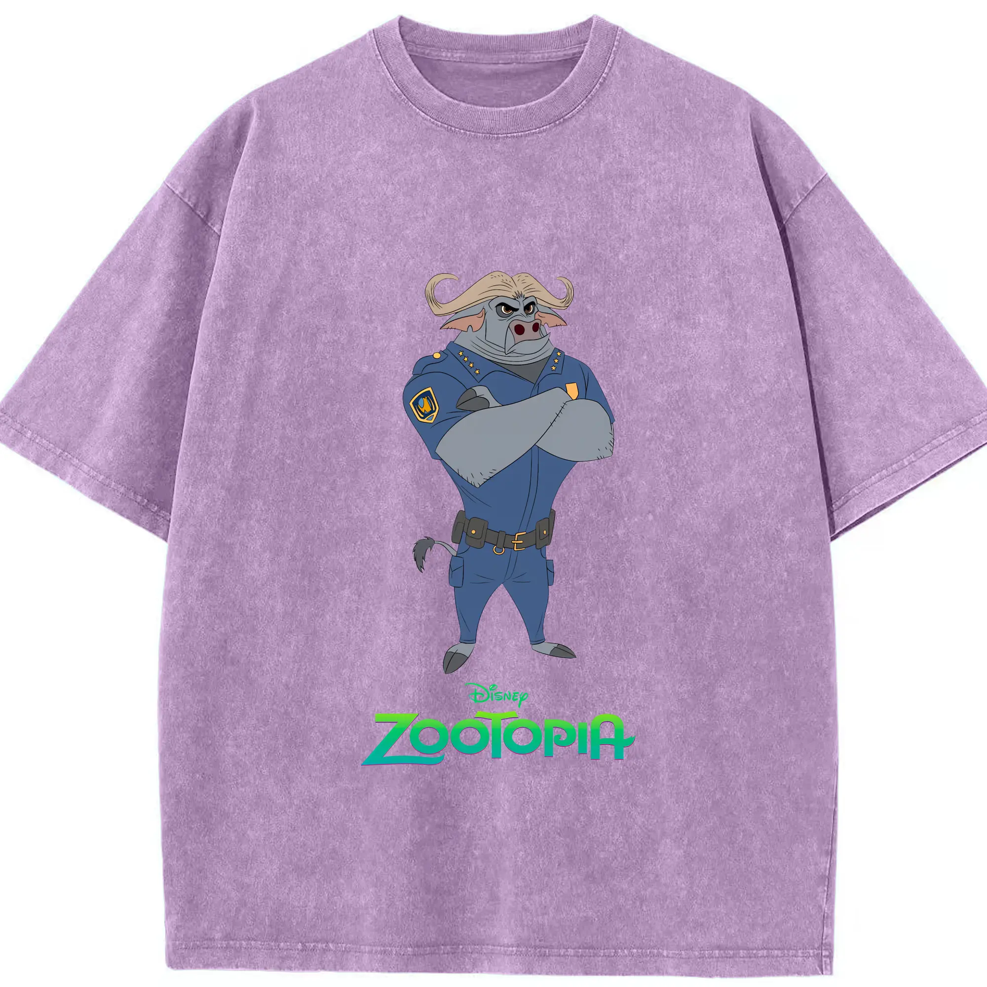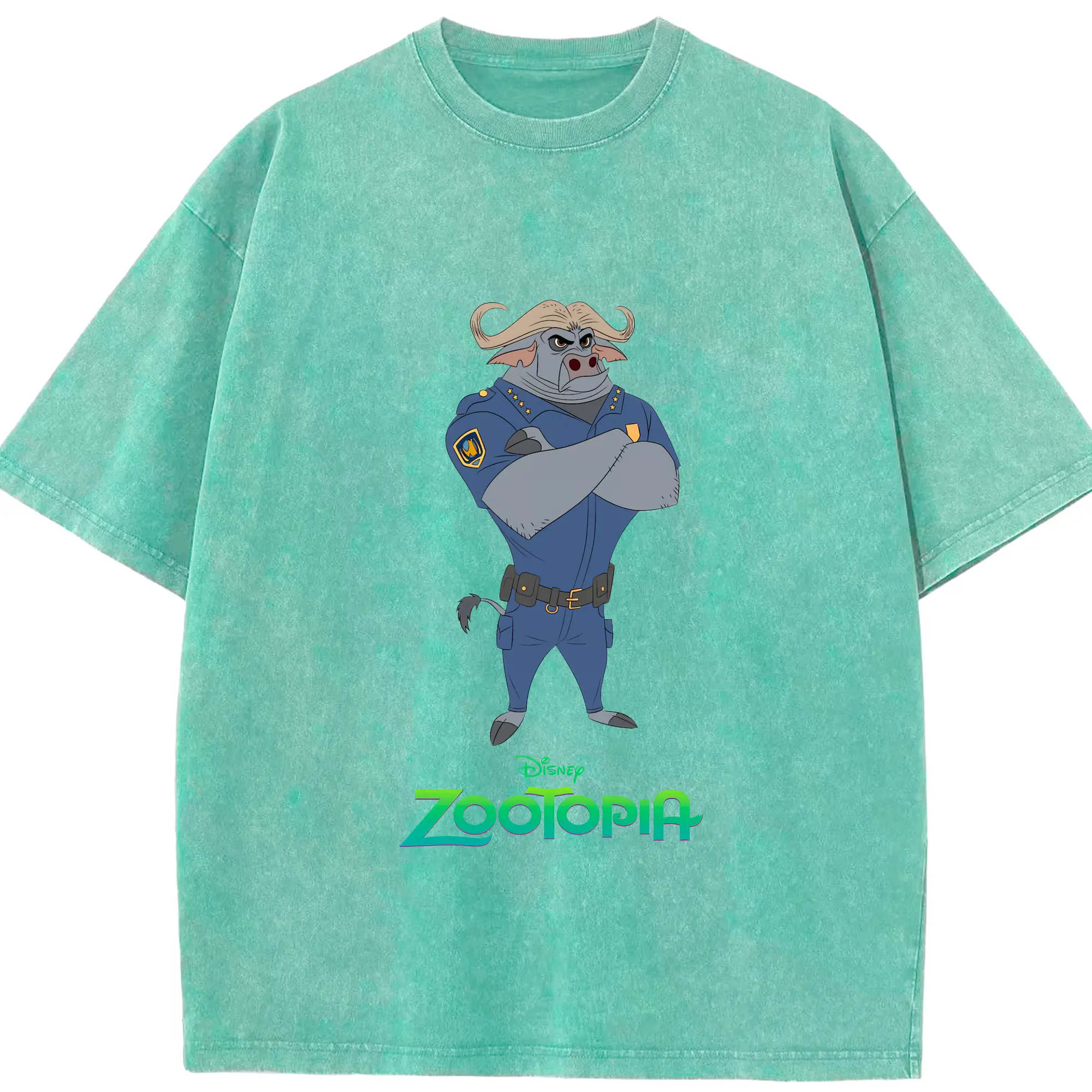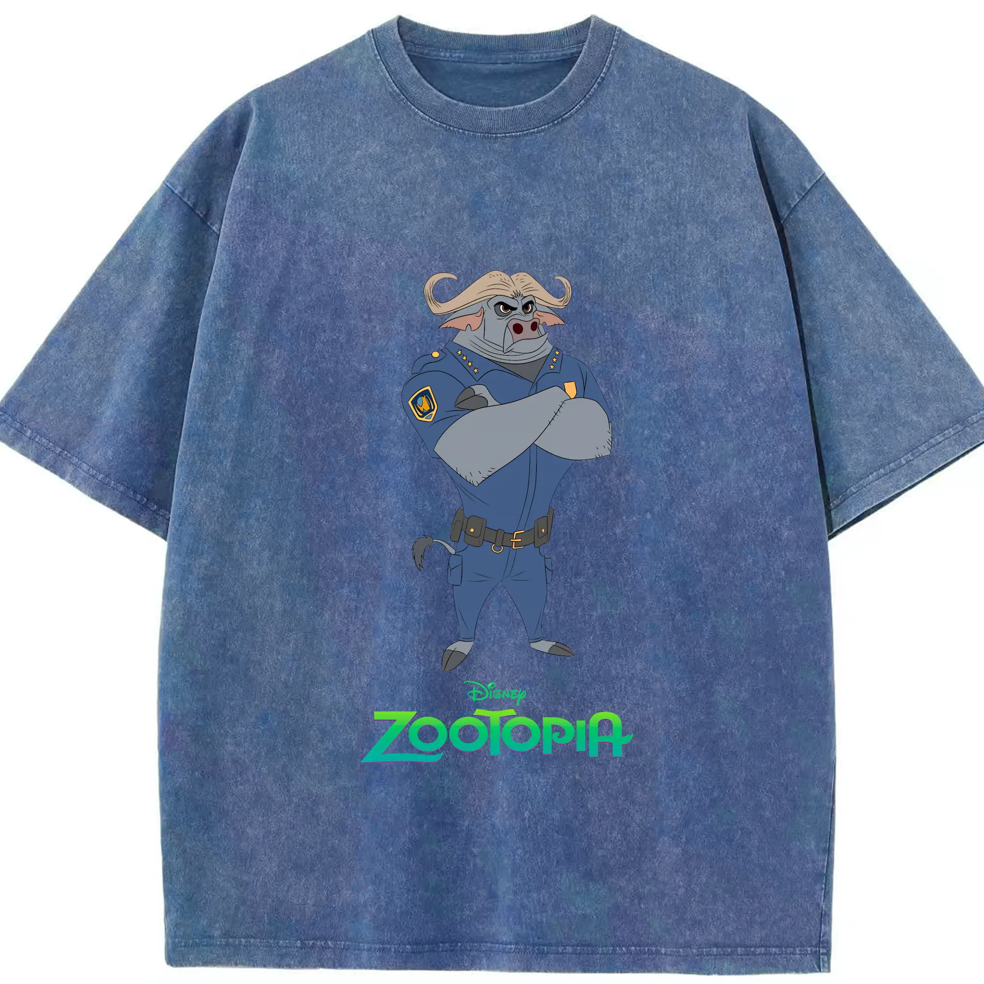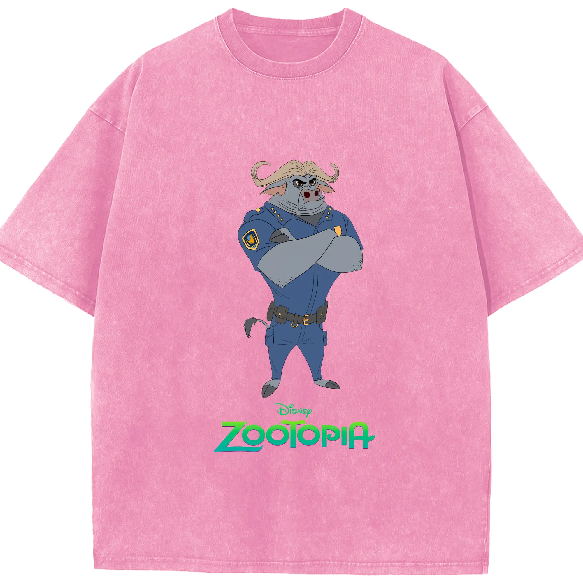 ズートピア グッズ,ボゴ署長 - 綿100% ヴィンテージ風 半袖Tシャツ ・ 背面プリント ・ 柔らか肌触り ・ 通気性 快適 ・ スポーツ カジュアル 外出用
