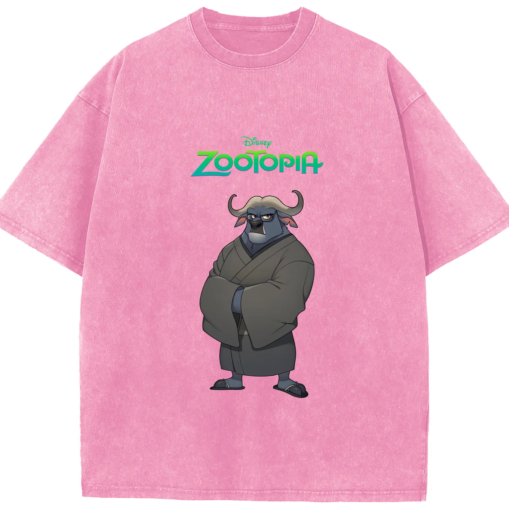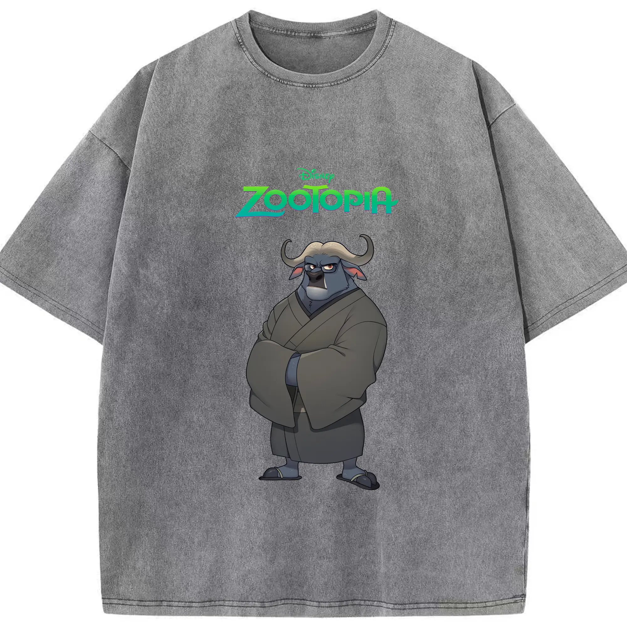 ズートピア グッズ,ボゴ署長 - 綿100% ヴィンテージ風 半袖Tシャツ ・ 背面プリント ・ 柔らか肌触り ・ 通気性 快適 ・ スポーツ カジュアル 外出用