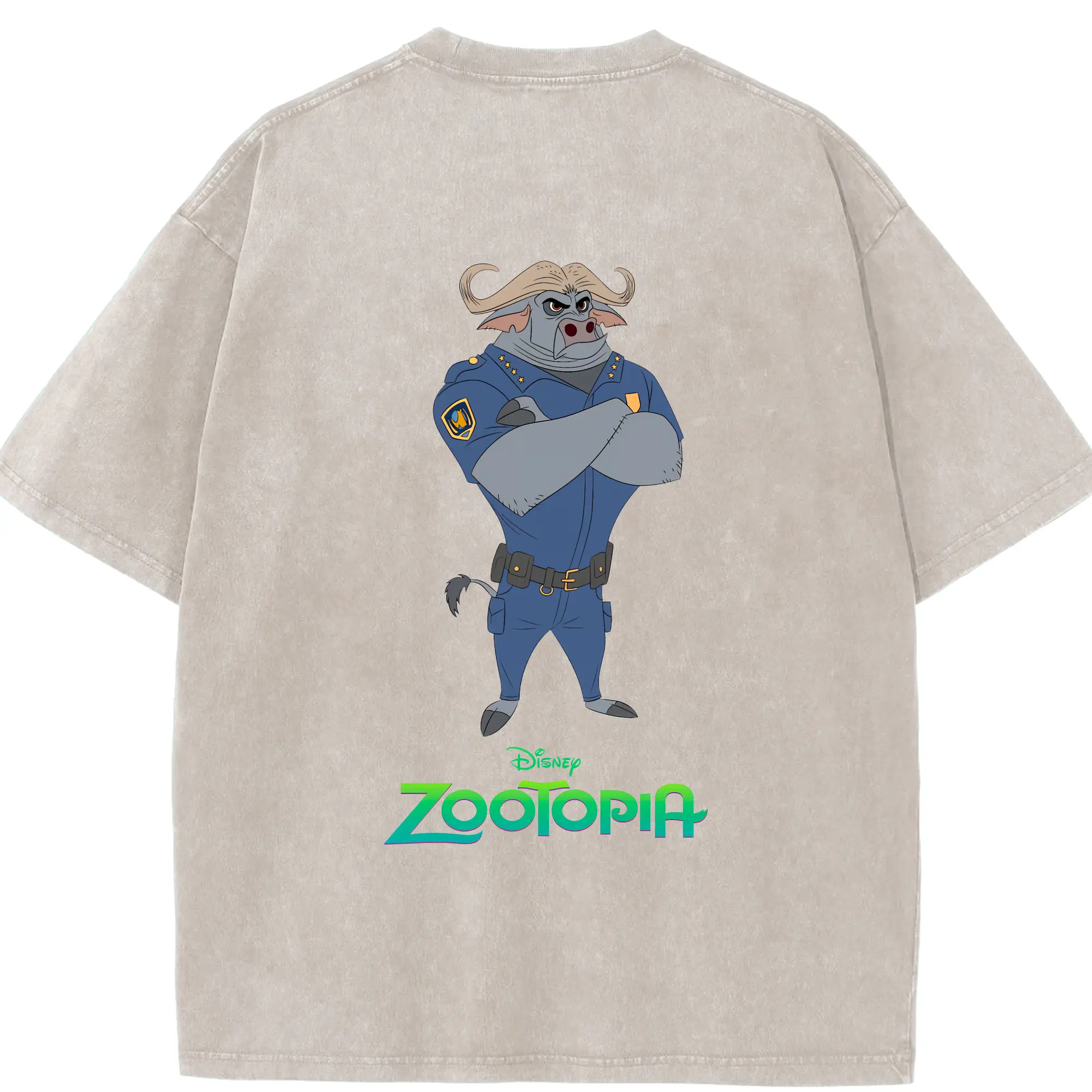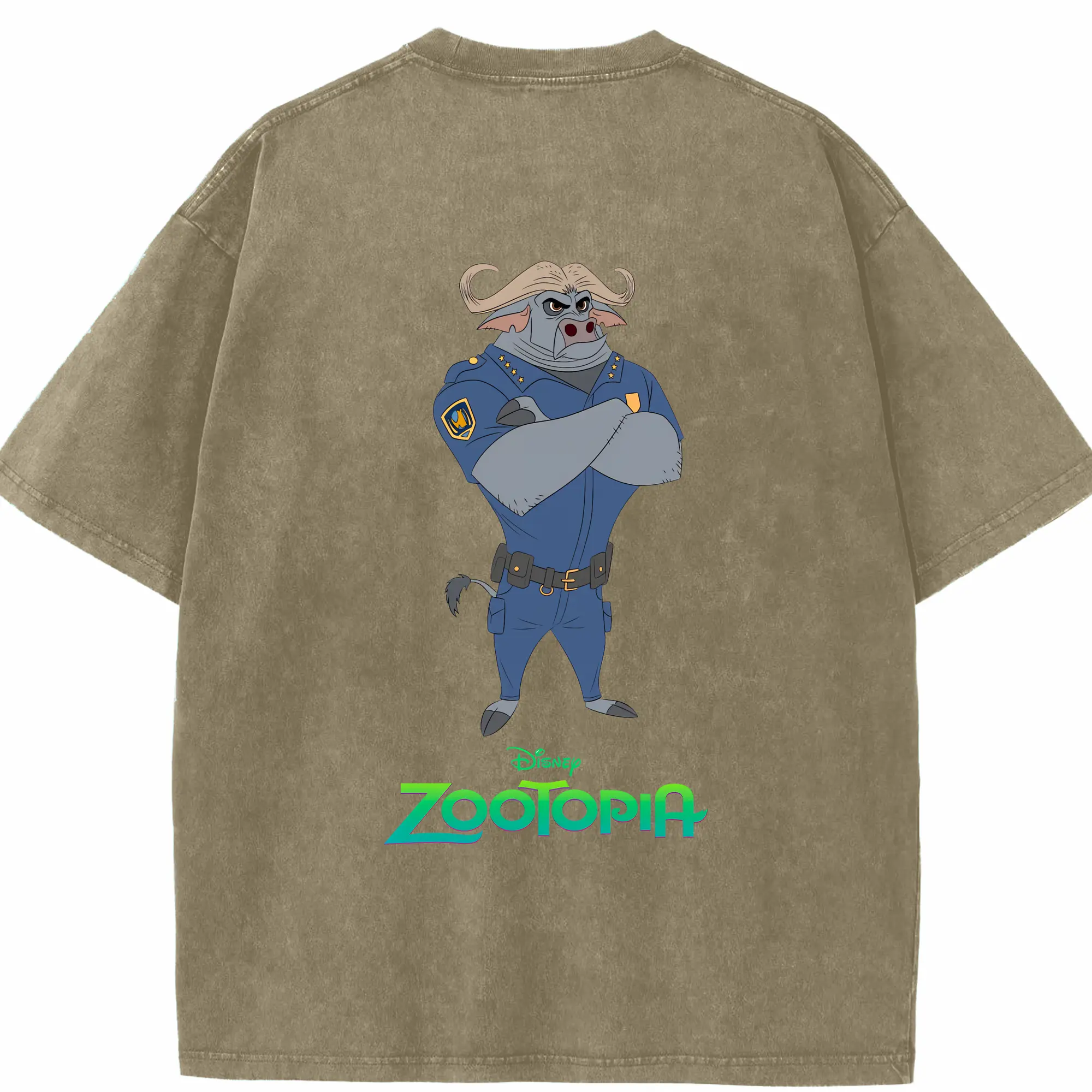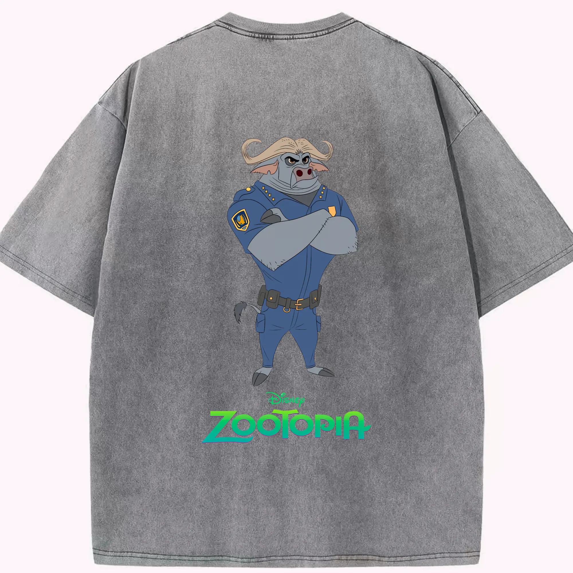ズートピア グッズ,ボゴ署長 - 綿100% ヴィンテージ風 半袖Tシャツ ・ フロントプリント ・ 柔らか肌触り ・ 通気性 快適 ・ スポーツ カジュアル 外出用